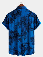 Men's Blue Vintage Floral Summer Holiday Hawaiian Breathable Button Up Short Sleeve Shirt