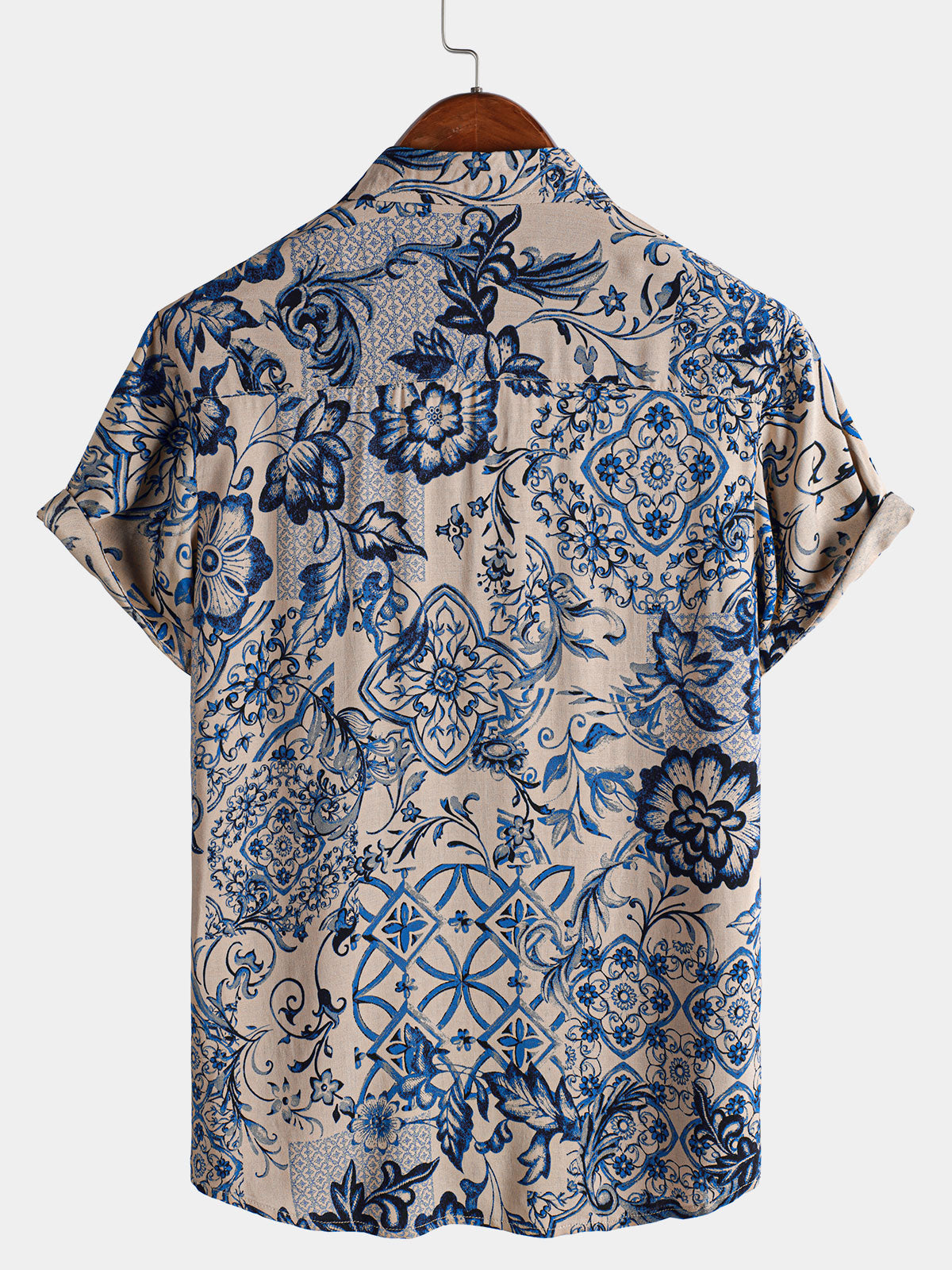Men's Hawaiian Floral Summer Beach Short Sleeve Shirt