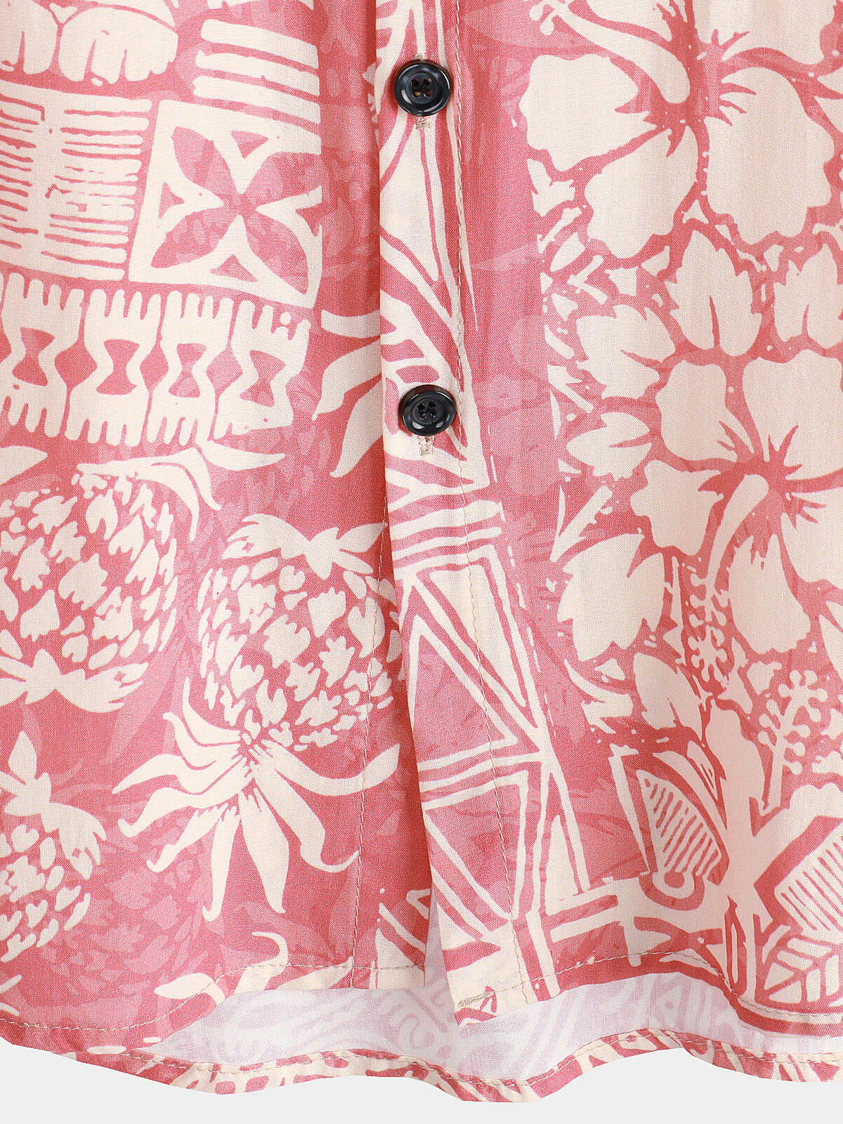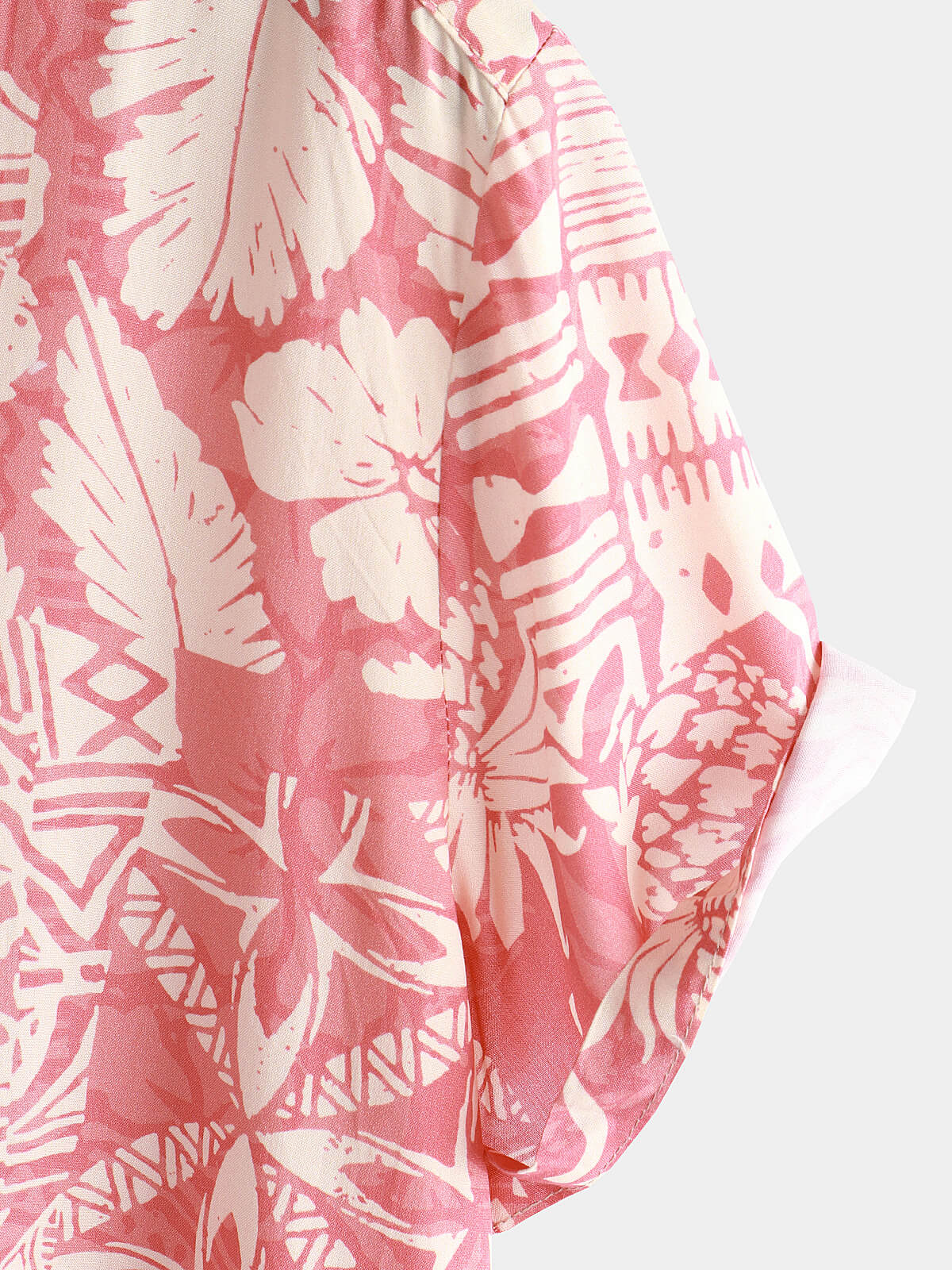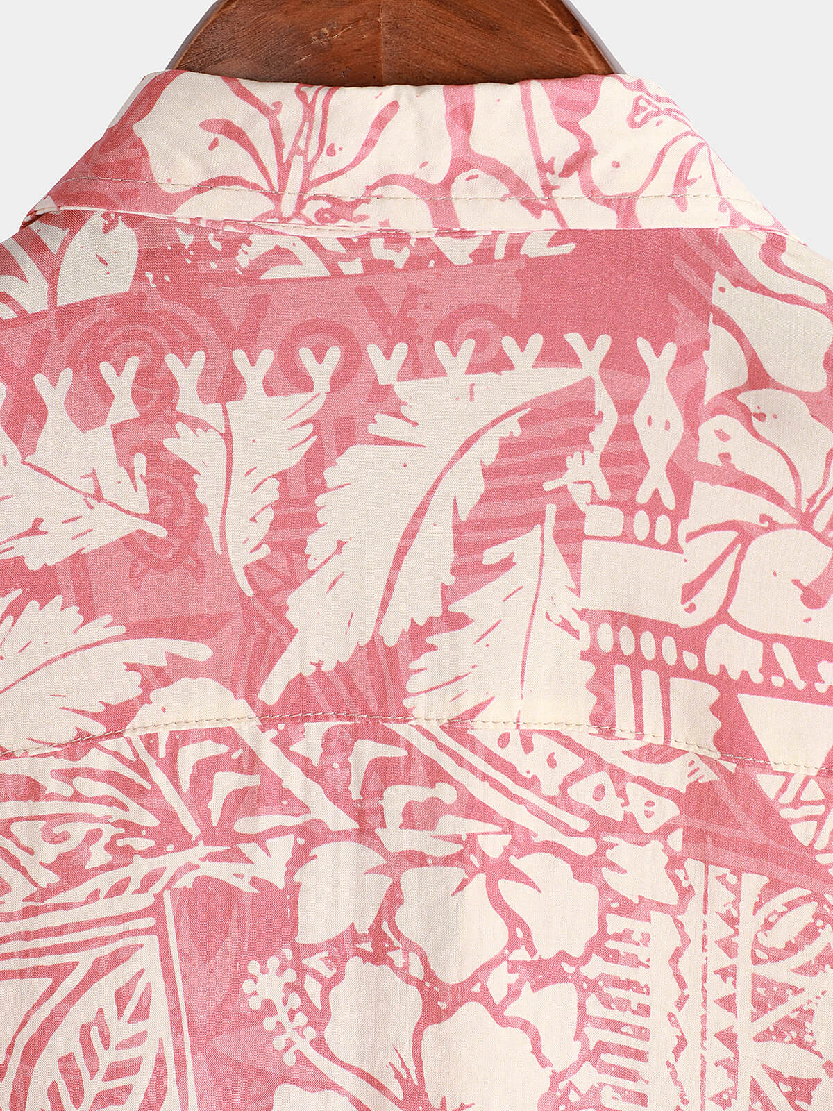 Men's Pink Tropical Floral Holiday Hawaiian Short Sleeve Button Up Shirt
