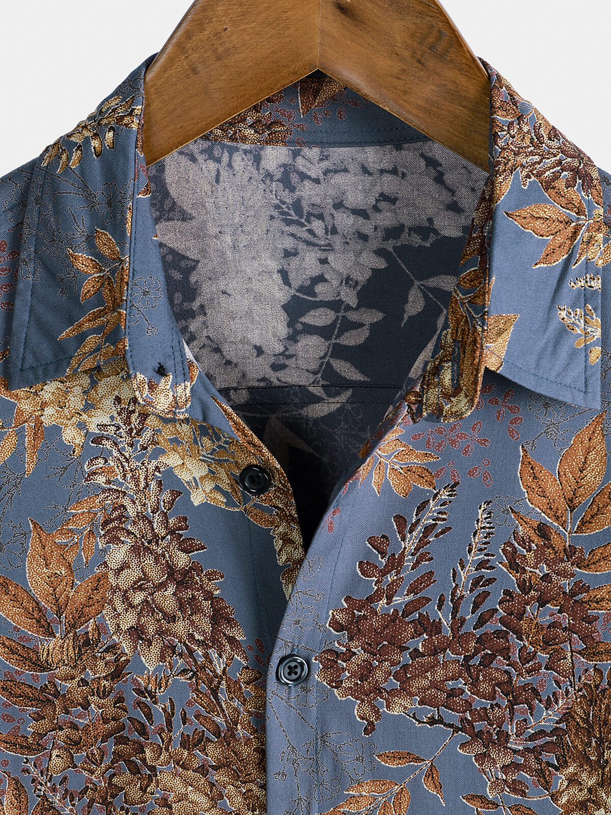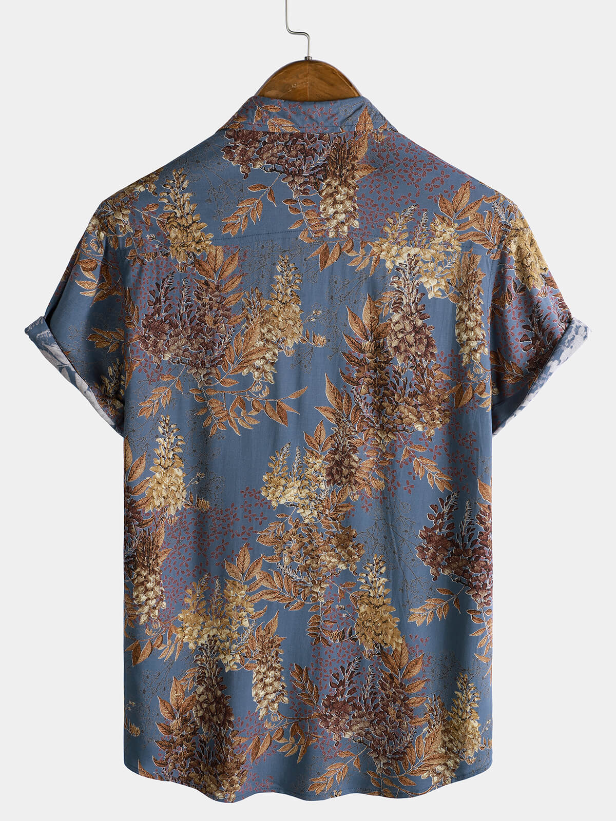 Men's Retro Print Rayon Short Sleeve Summer Shirt