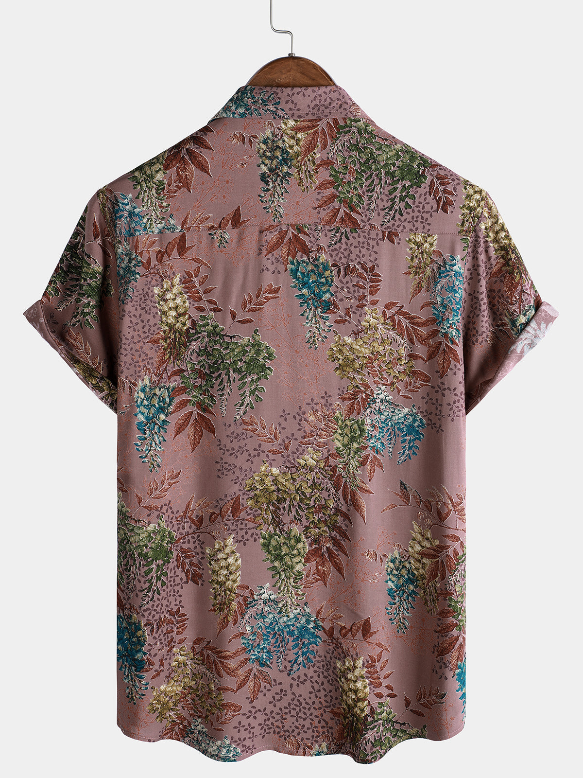 Men's Retro Print Summer Rayon Short Sleeve Shirt