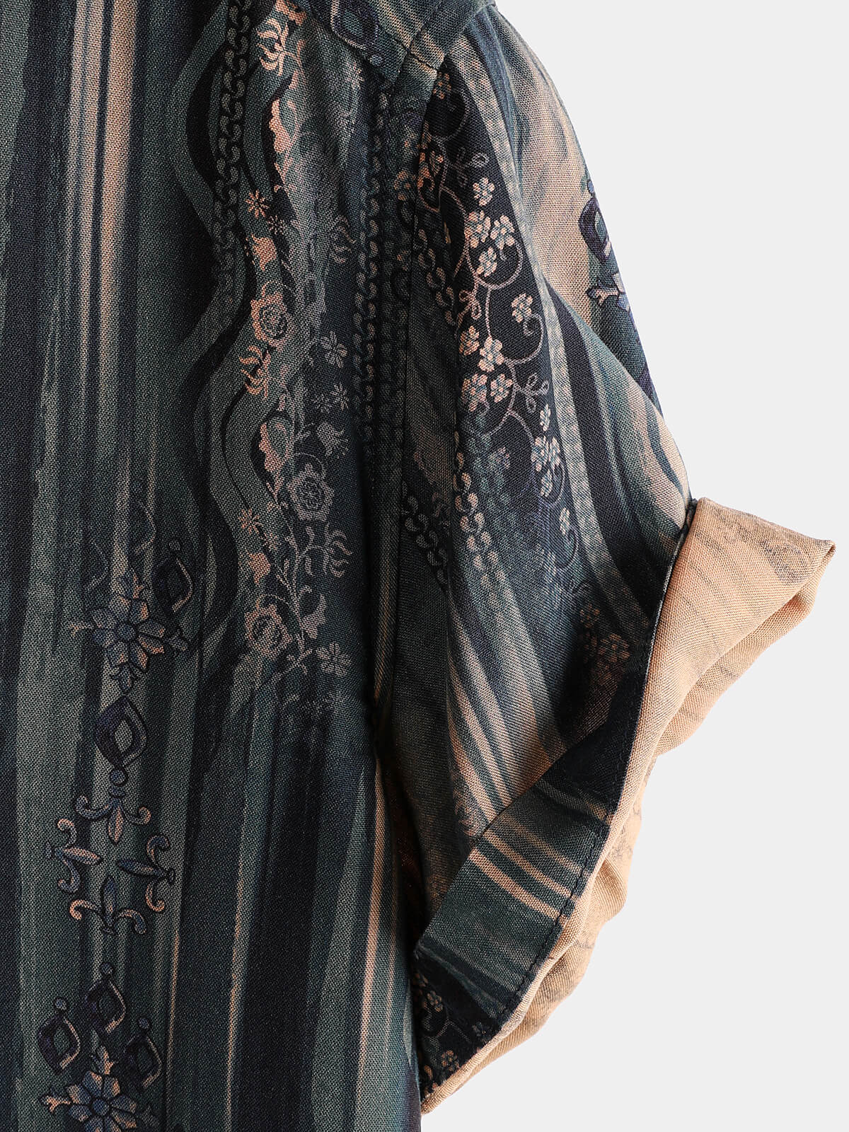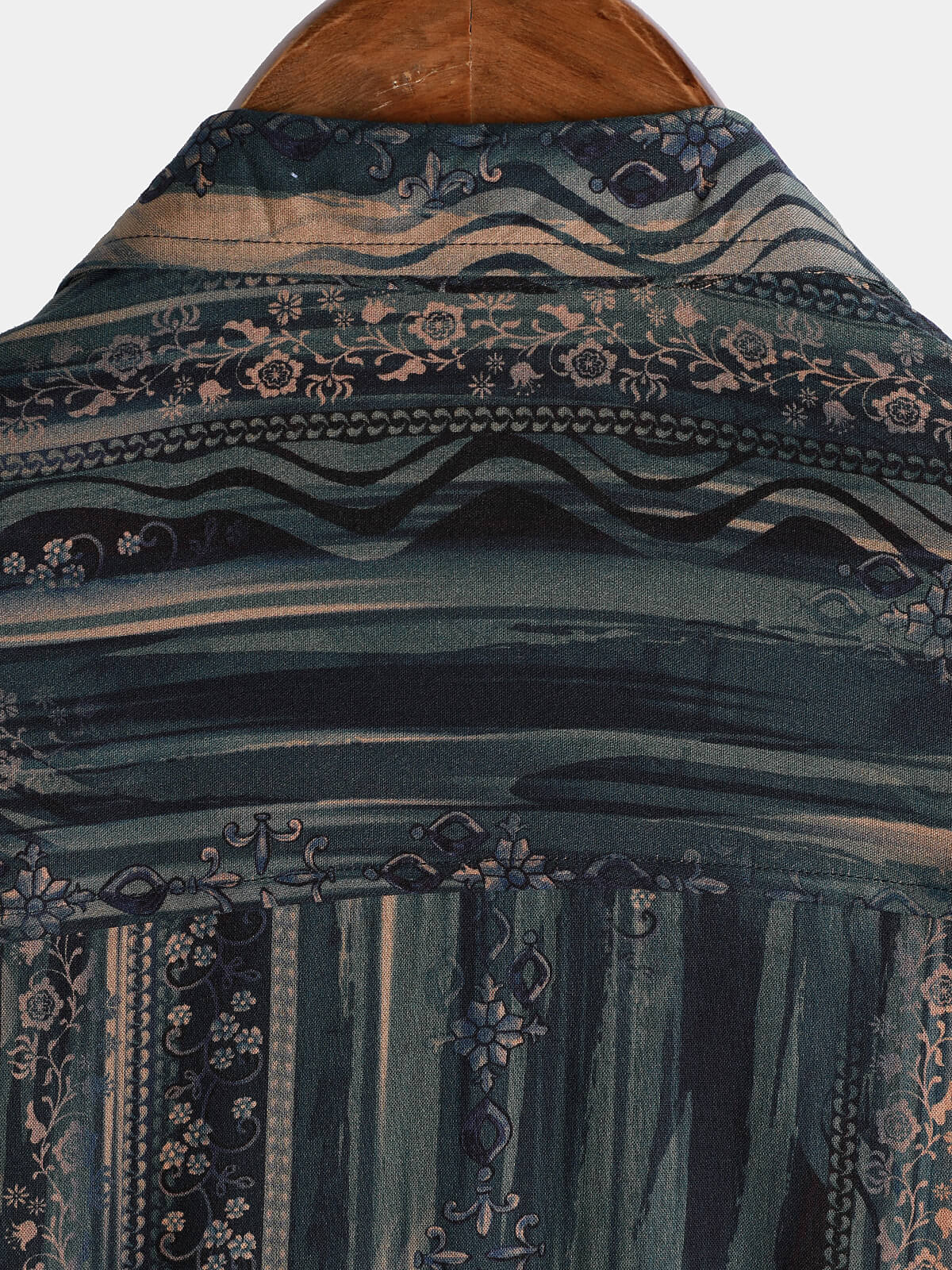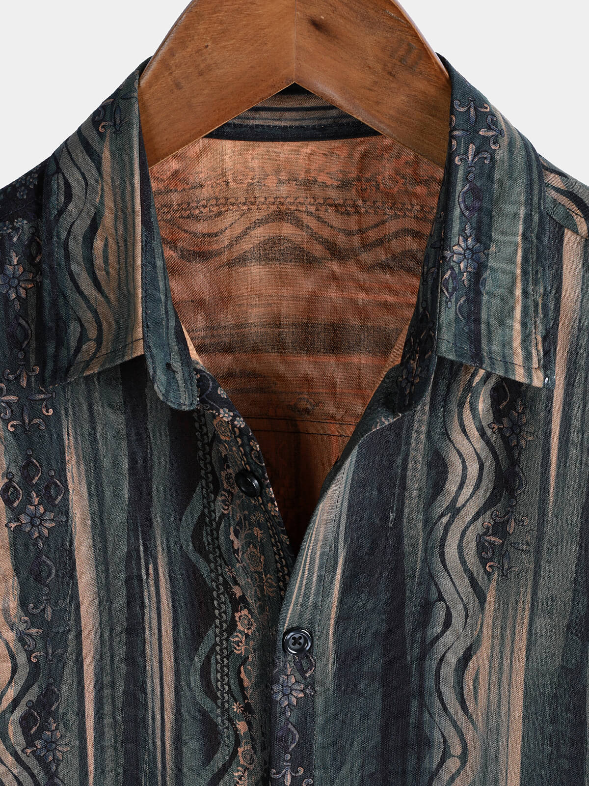 Men's Retro Striped Print Beach Short Sleeve Shirt