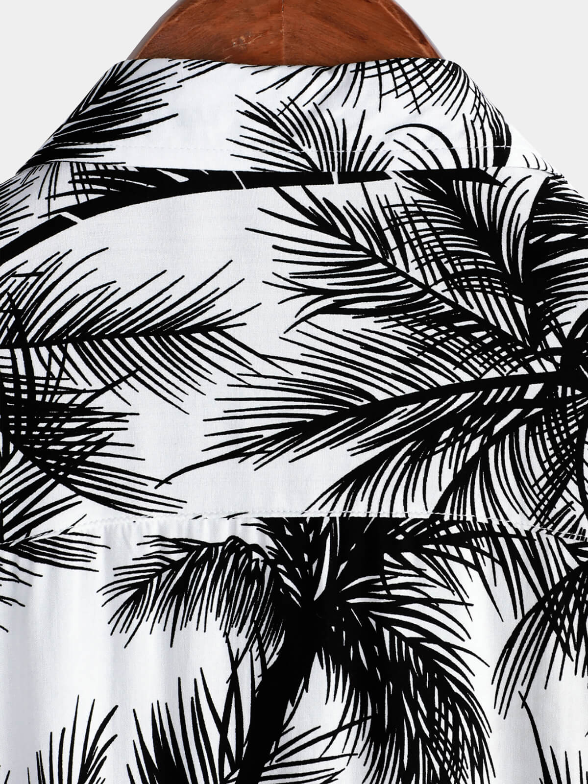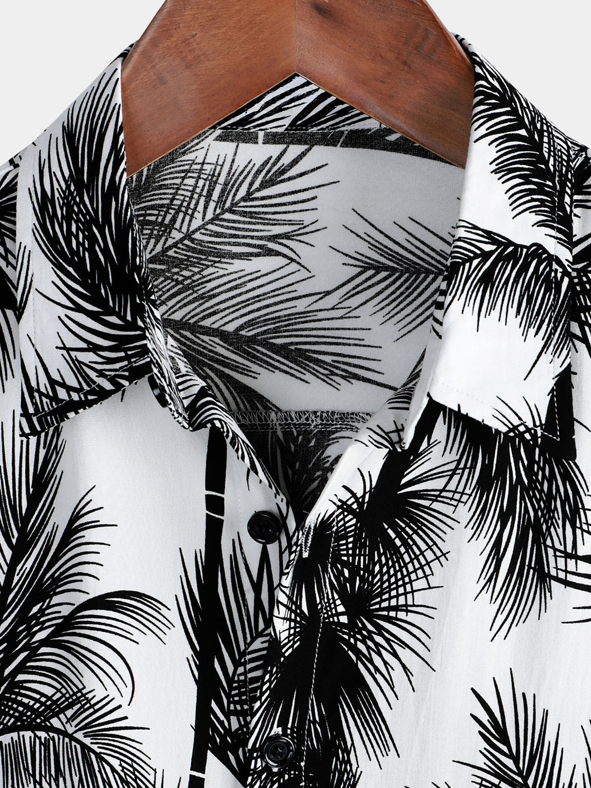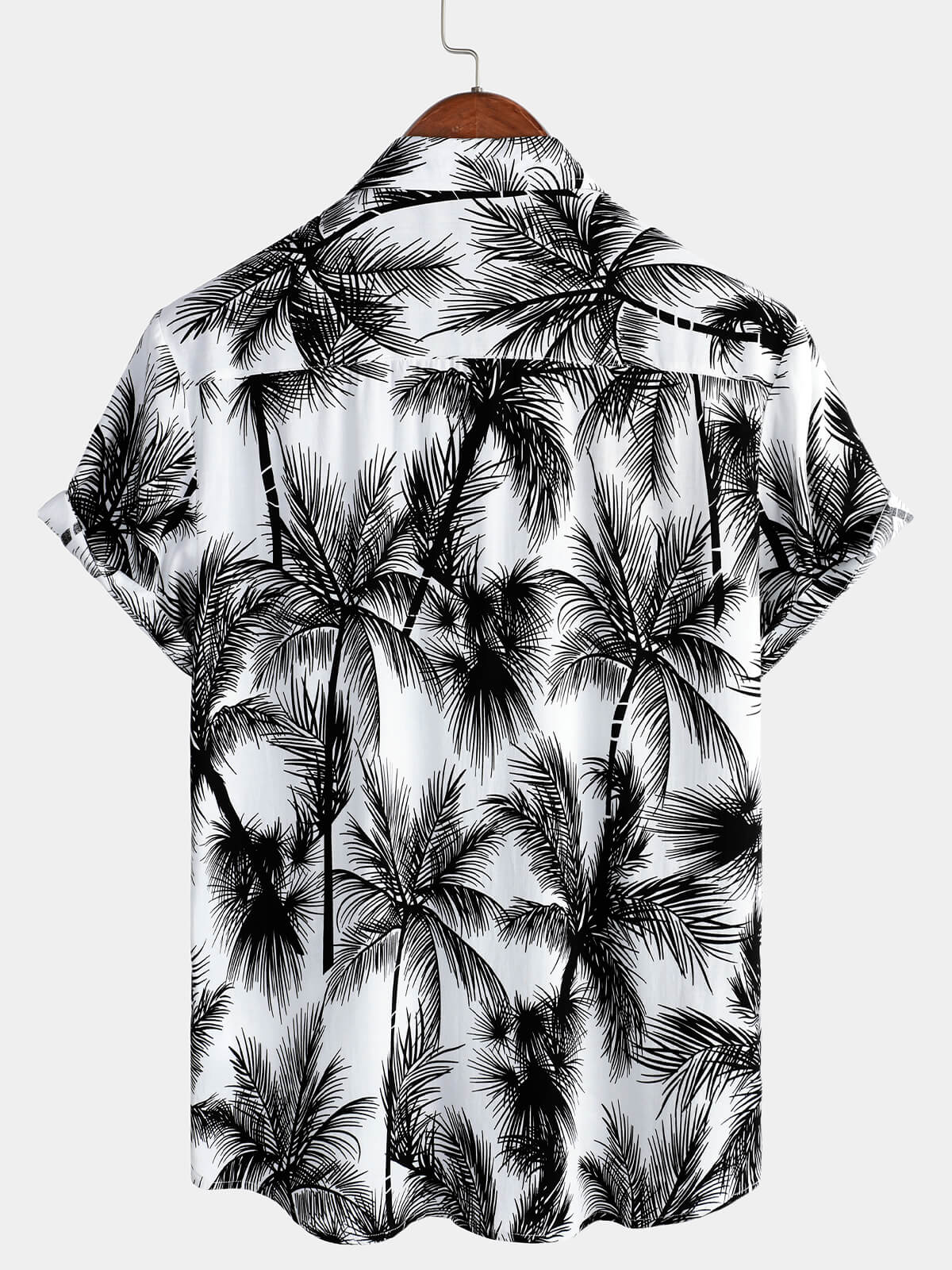 Men's Tropical Palm Tree Button Up Hawaiian Short Sleeve Shirt