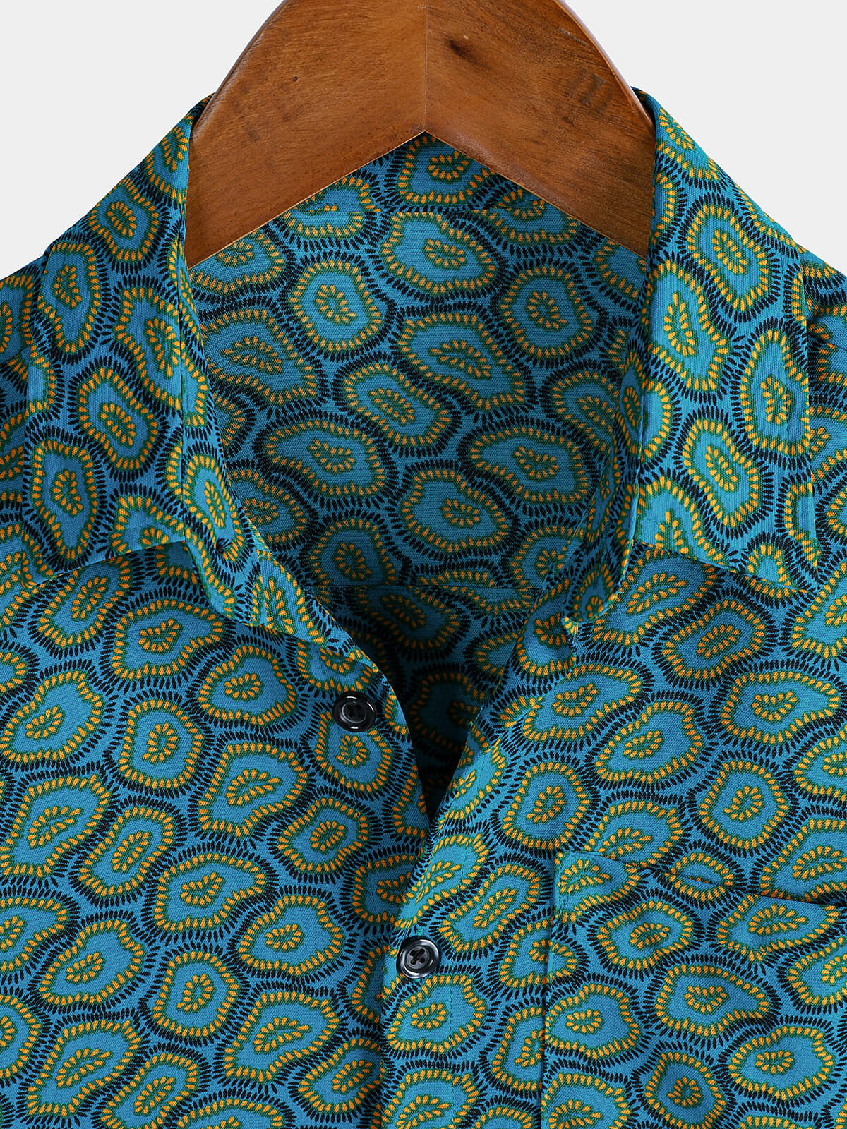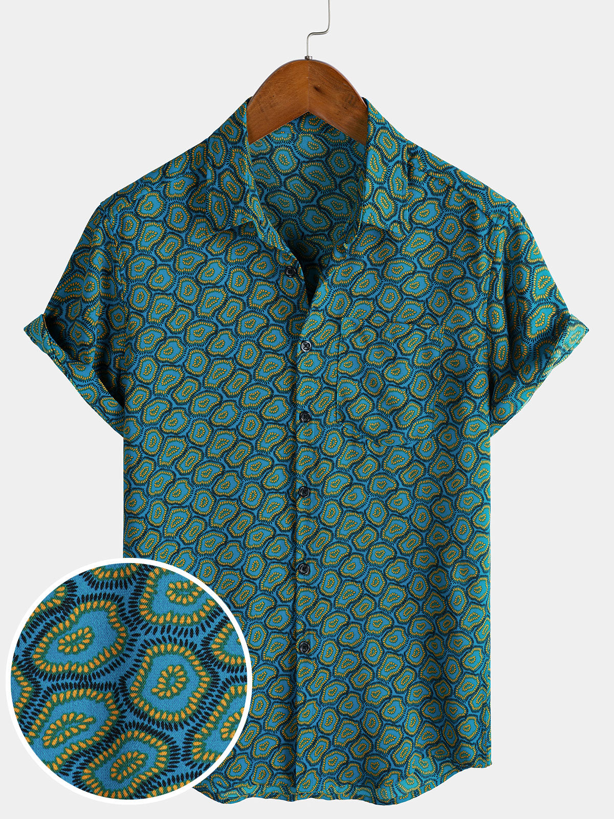 Men's Abstract Blue Short Sleeve Pocket Shirt