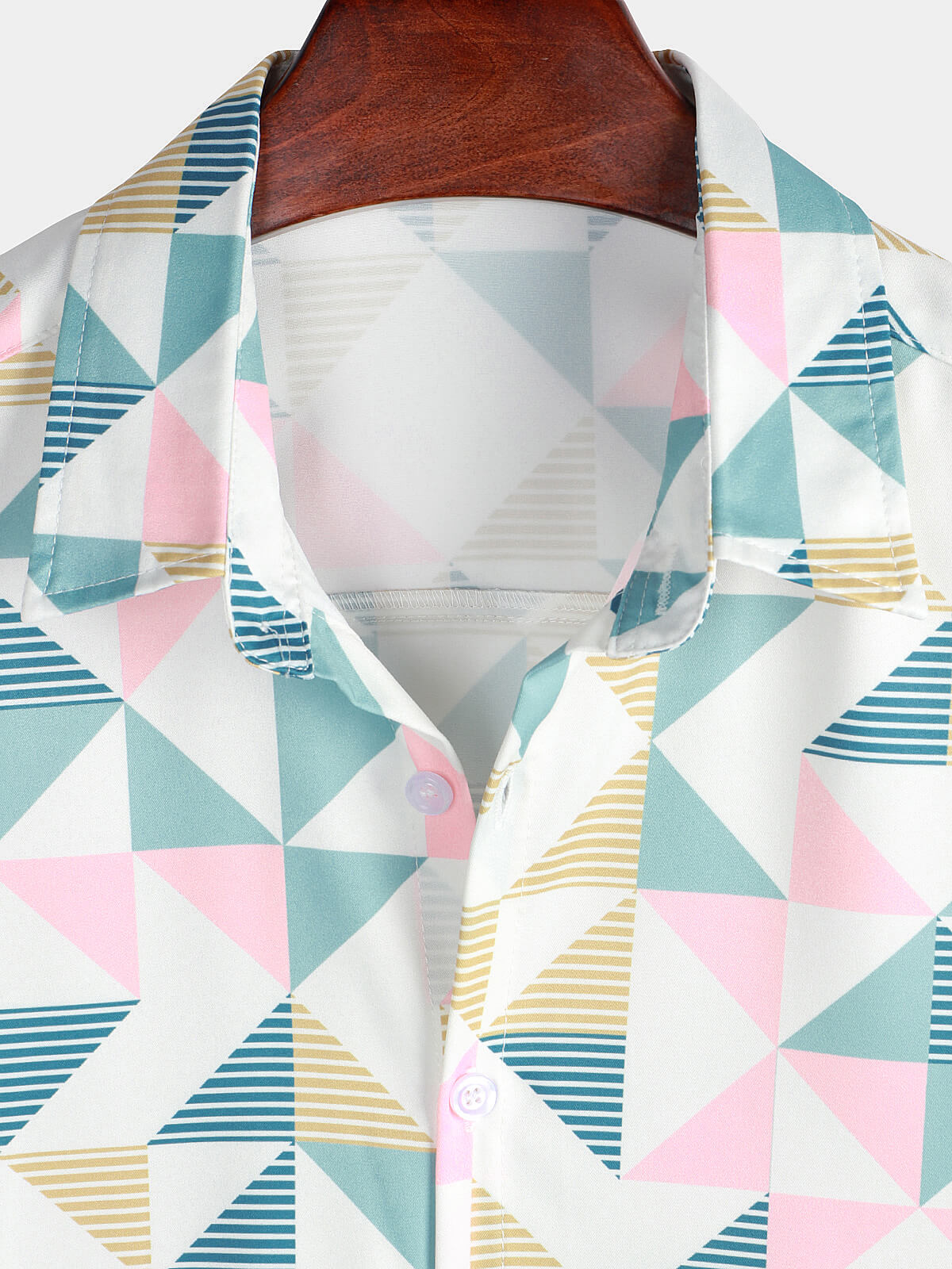 Men's Casual Art Triangle Geometric Print Summer Short Sleeve Beach Shirt