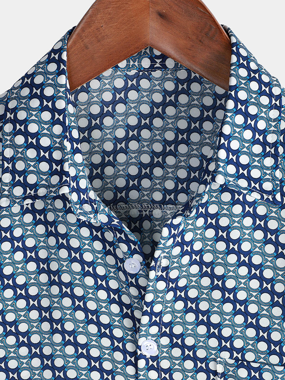 Men's Casual Holiday Summer Short Sleeve Blue Button Up Shirt