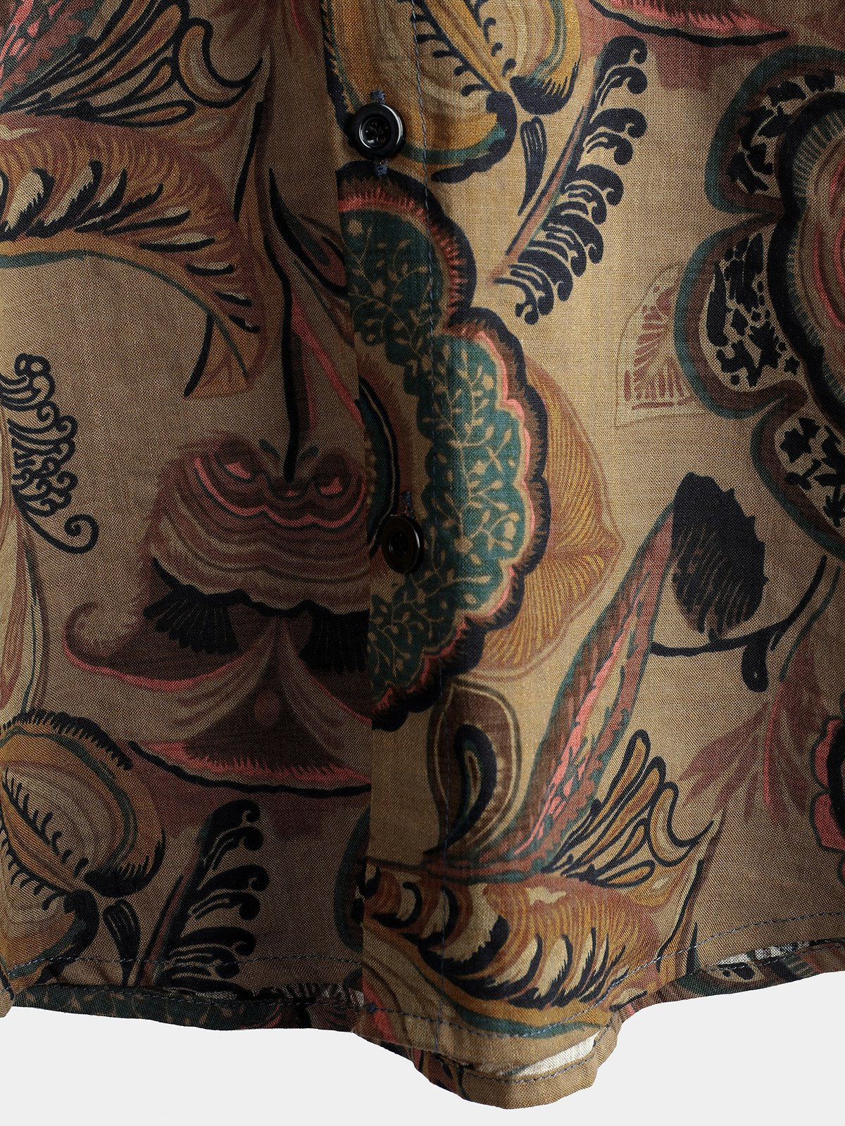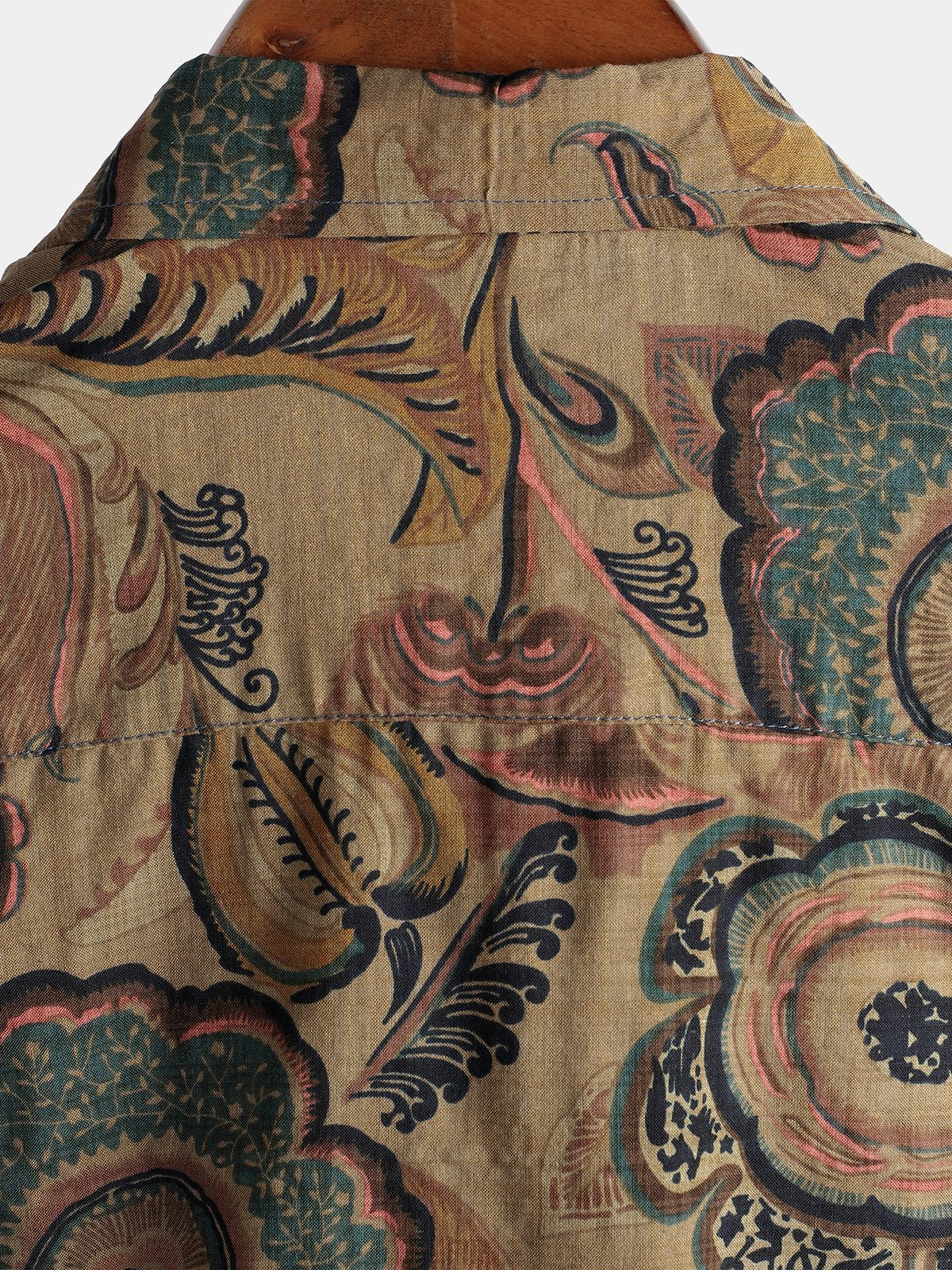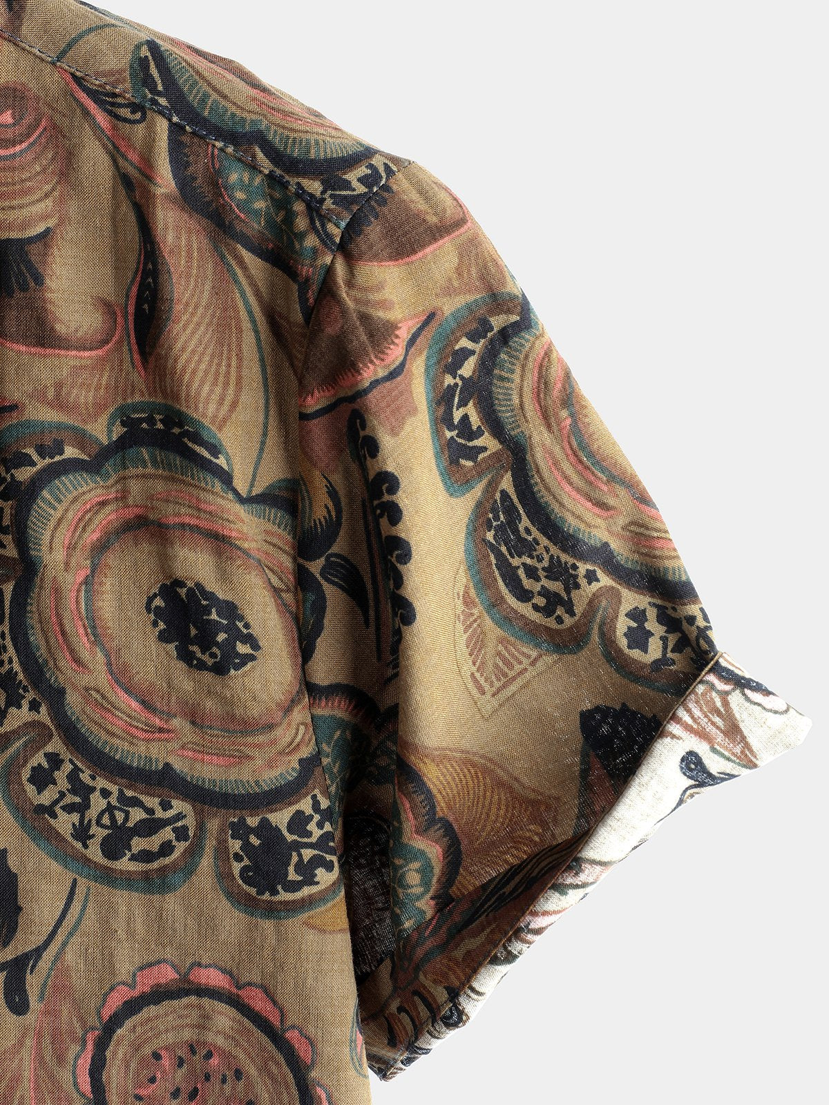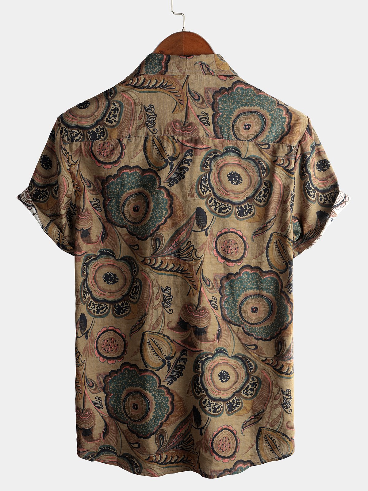 Men's Retro Casual Short Sleeve Cotton Brown Shirt