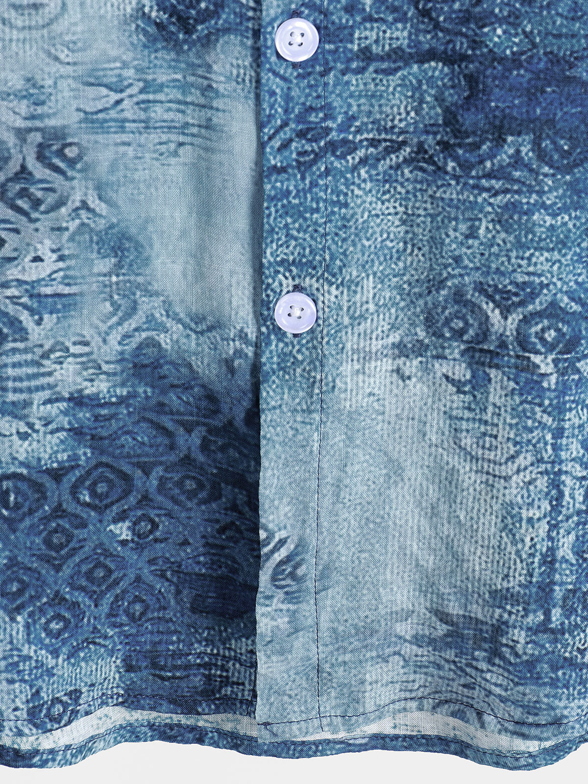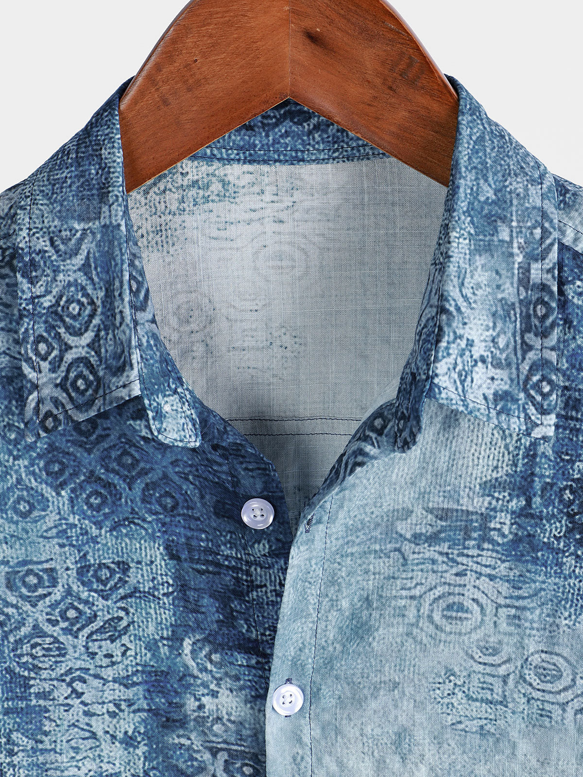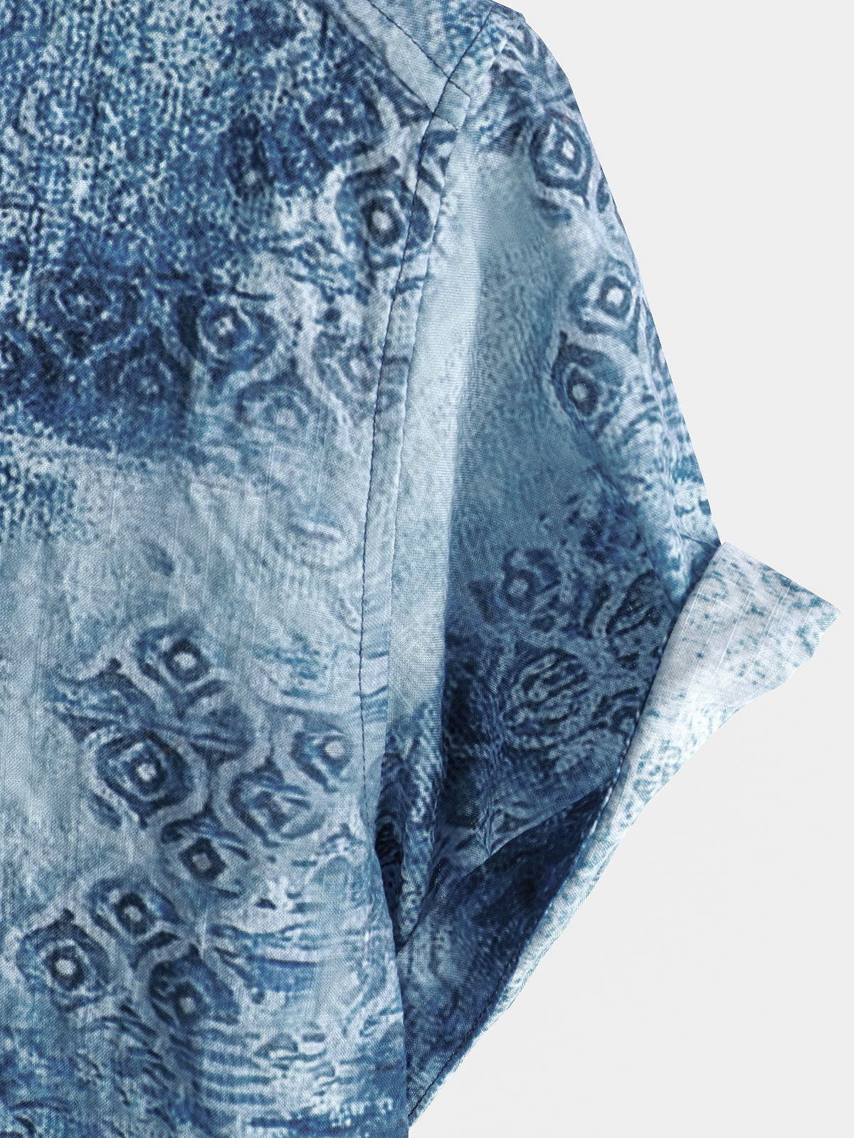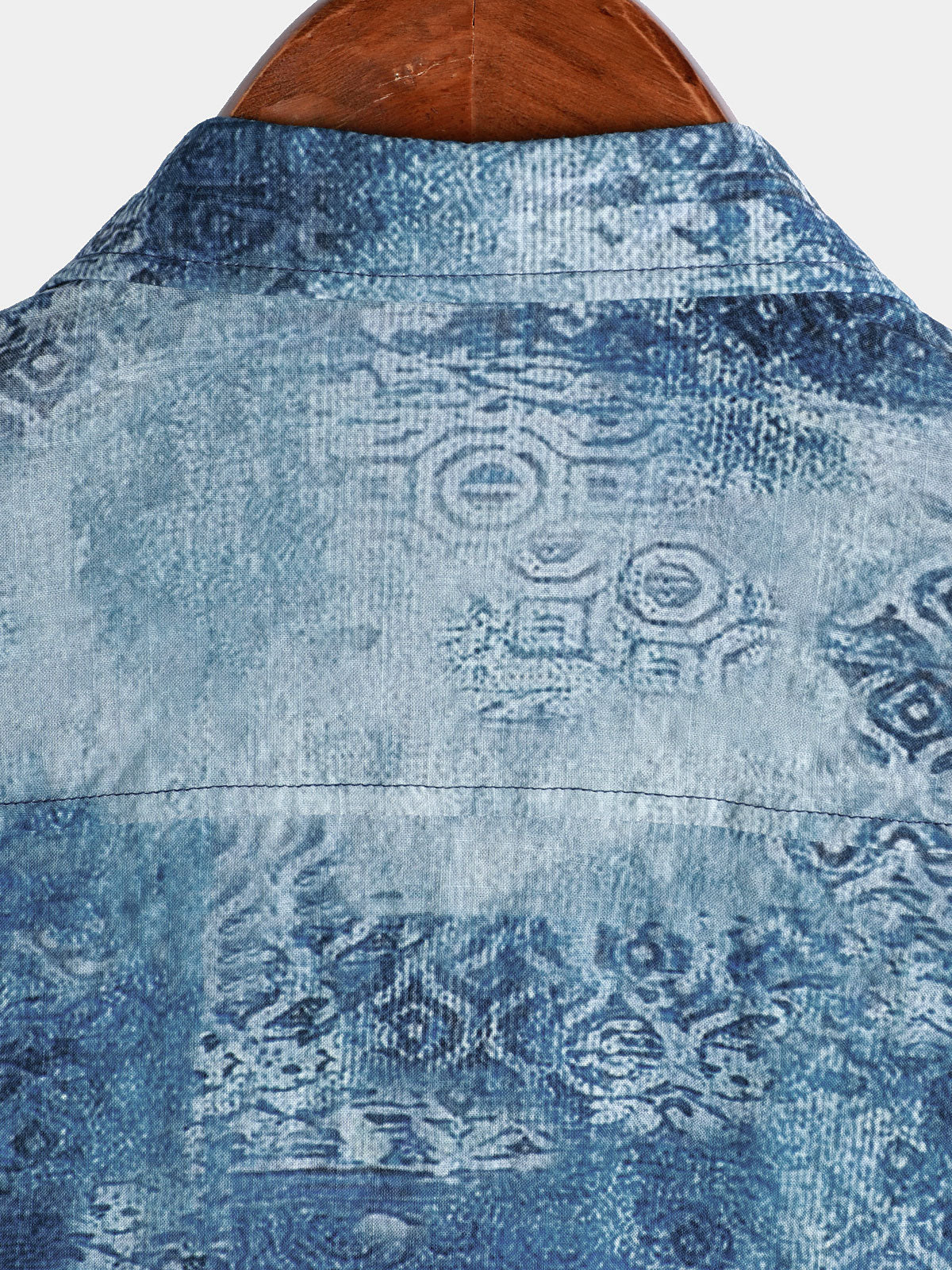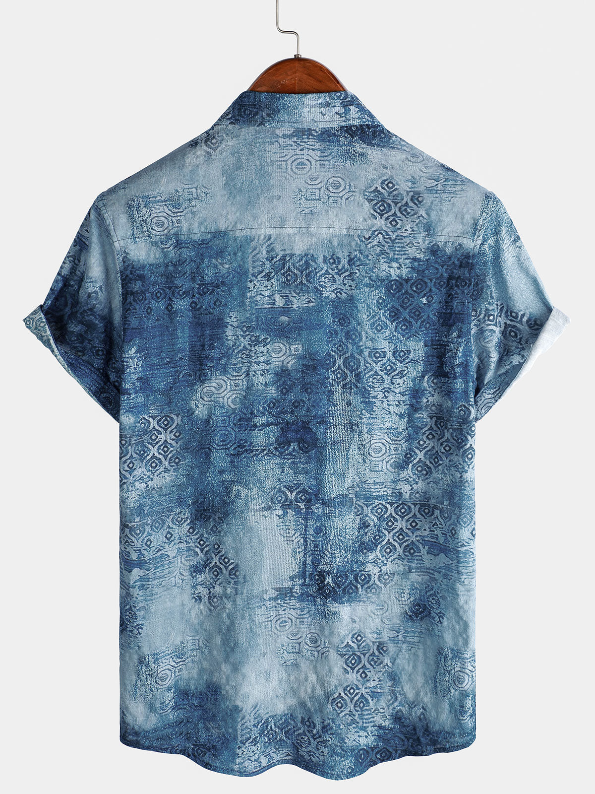 Men's Blue Art Geometric Print Short Sleeve Shirt