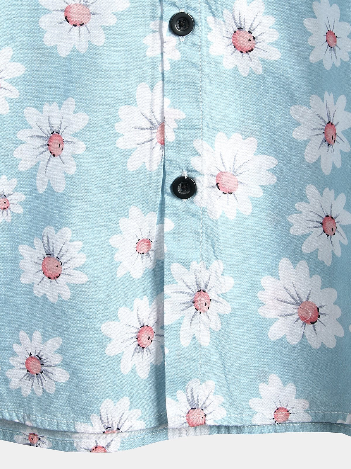 Men's Floral Daisy Print Hawaiian Cotton Button Up Summer Short Sleeve Flower Shirt