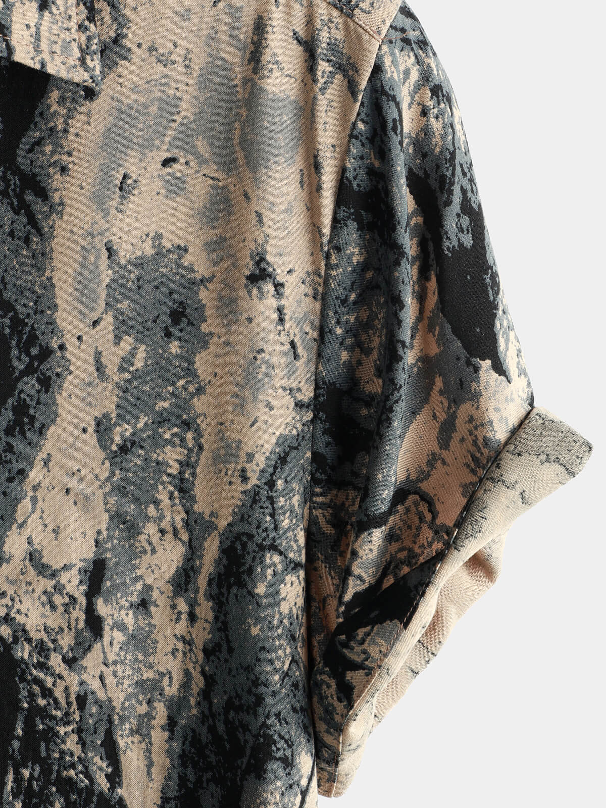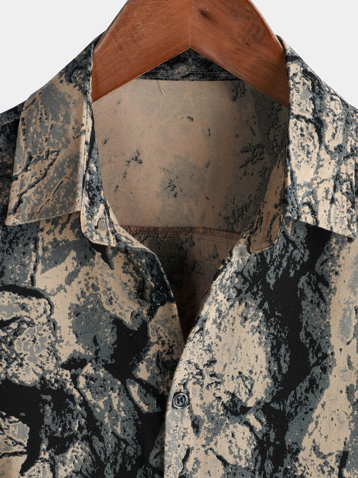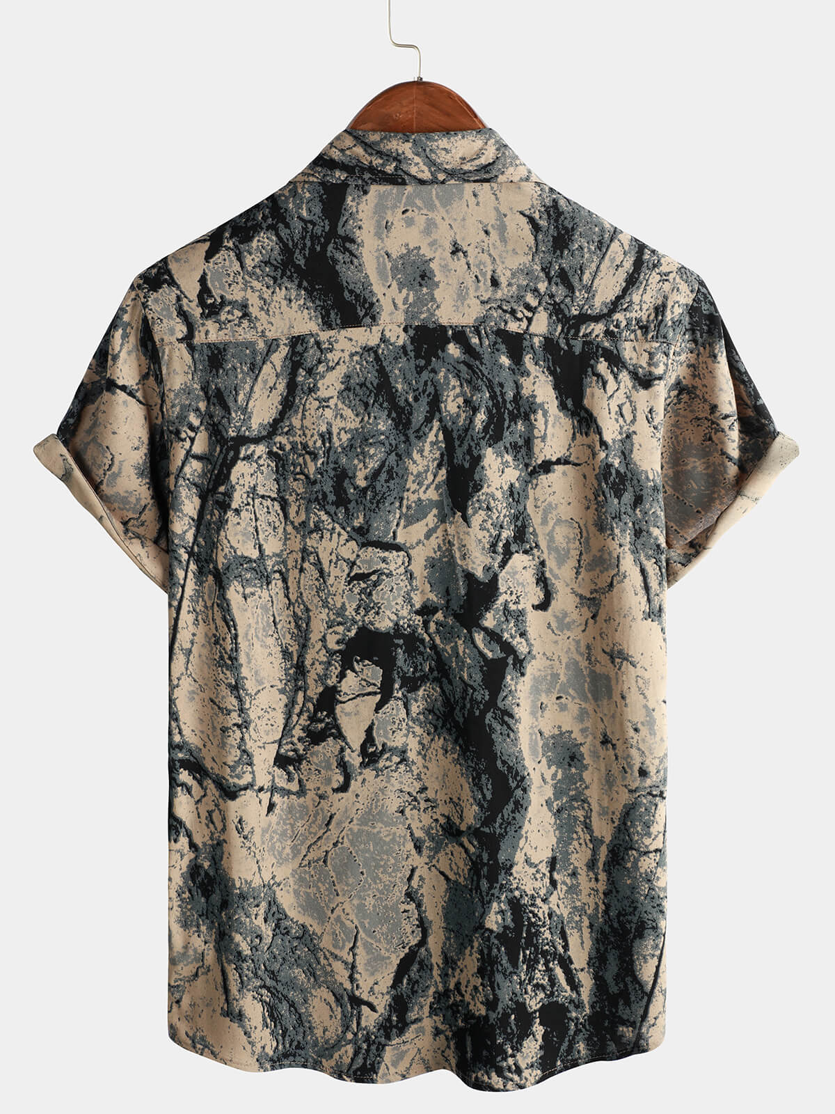 Men's Khaki Retro Art Nature Wild Print Casual Short Sleeve Button Up Shirt