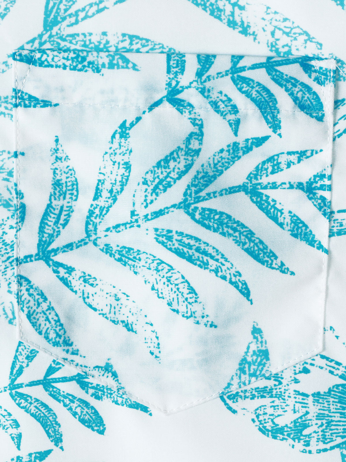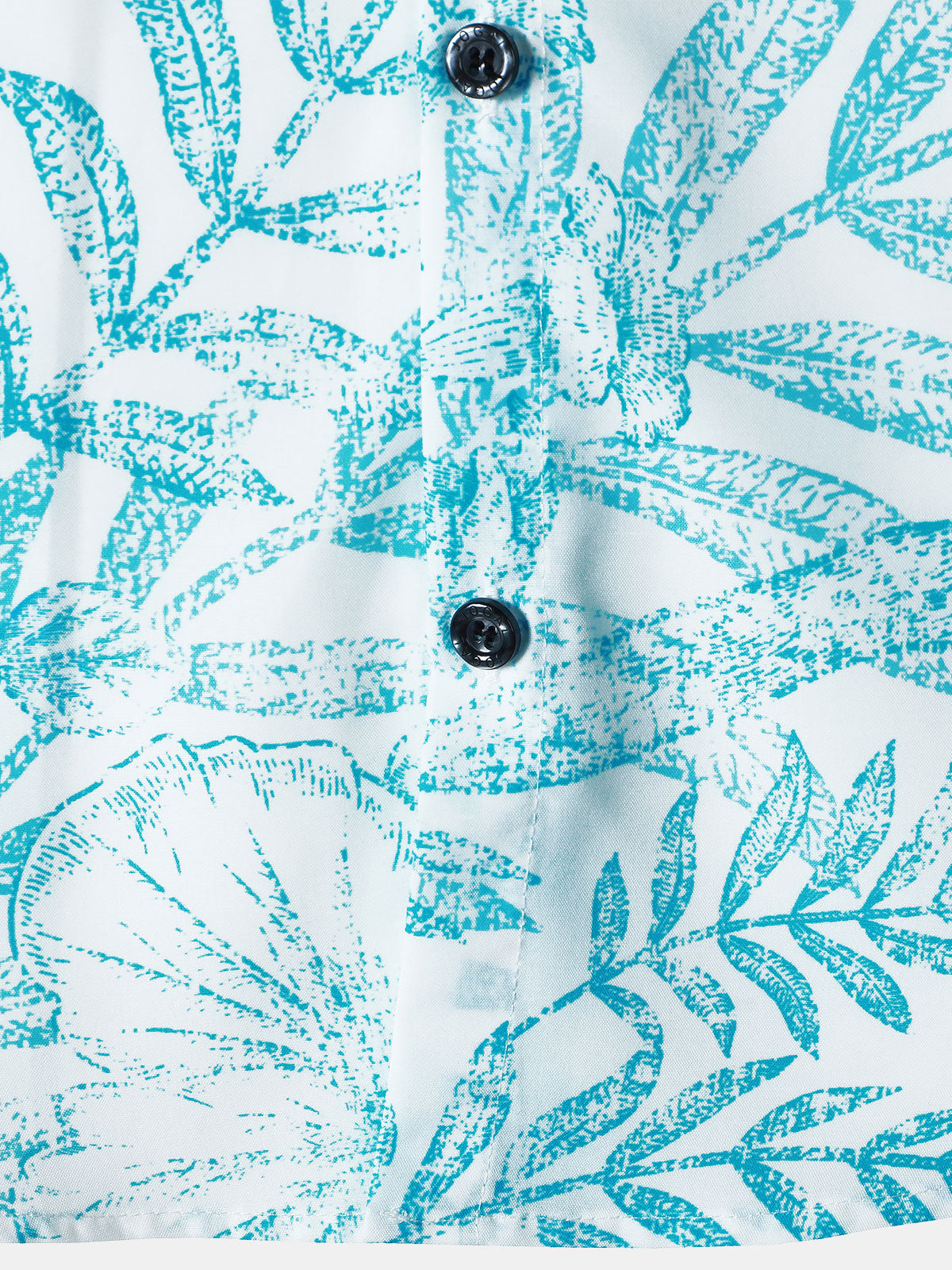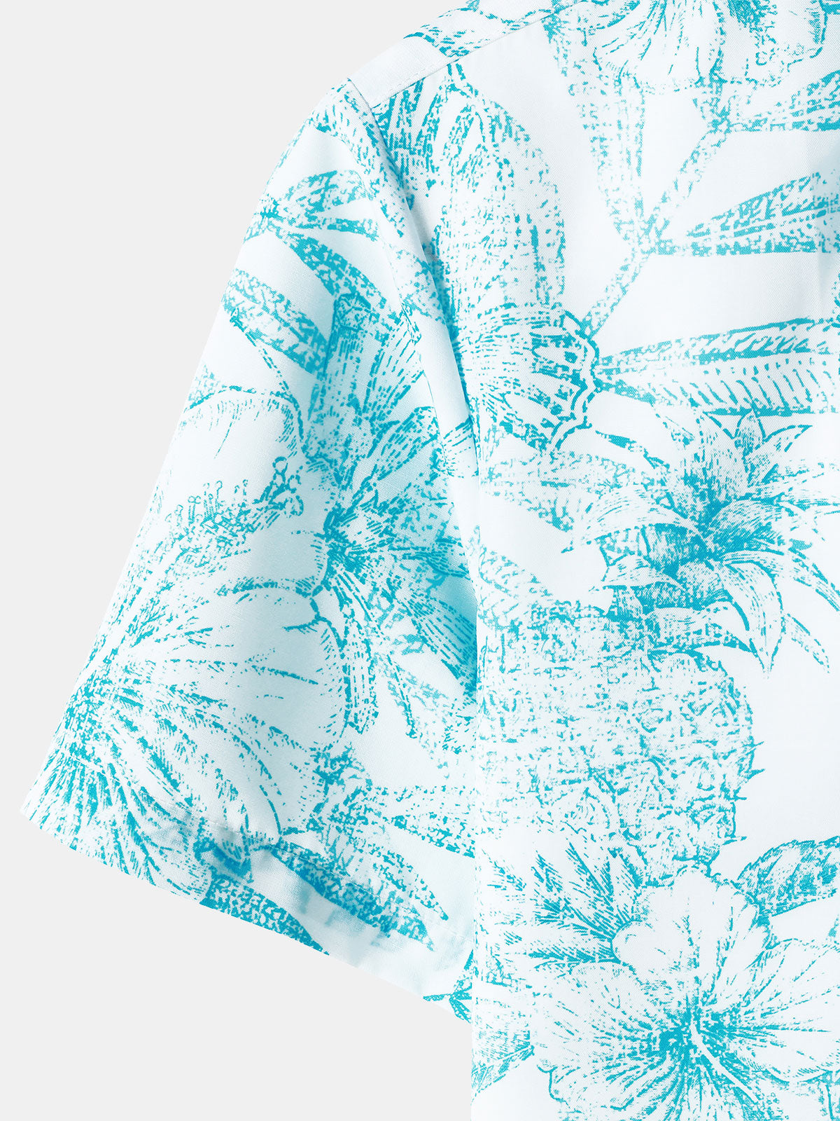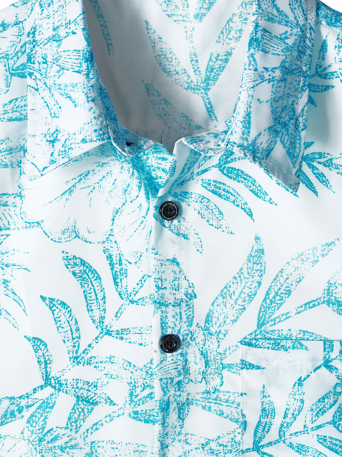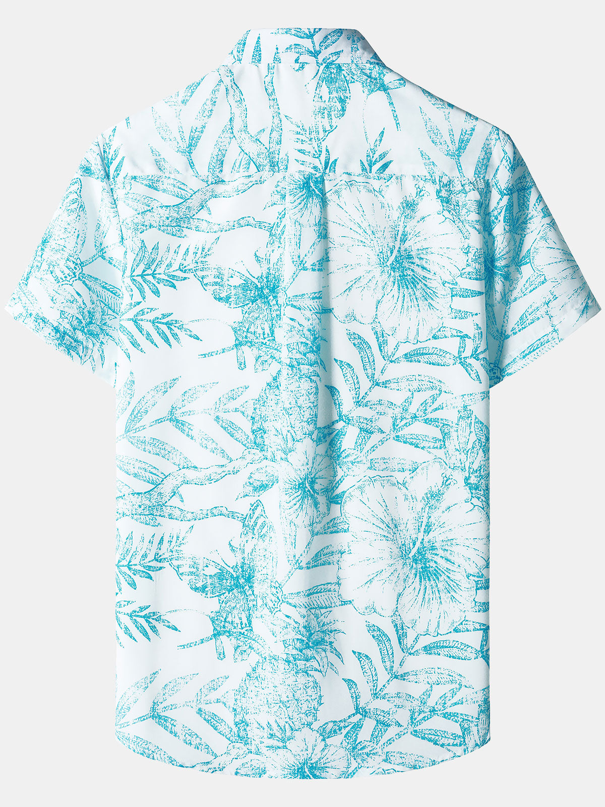 Men‘s Blue Tropical Print Hawaiian Pocket Casual Aloha Shirt