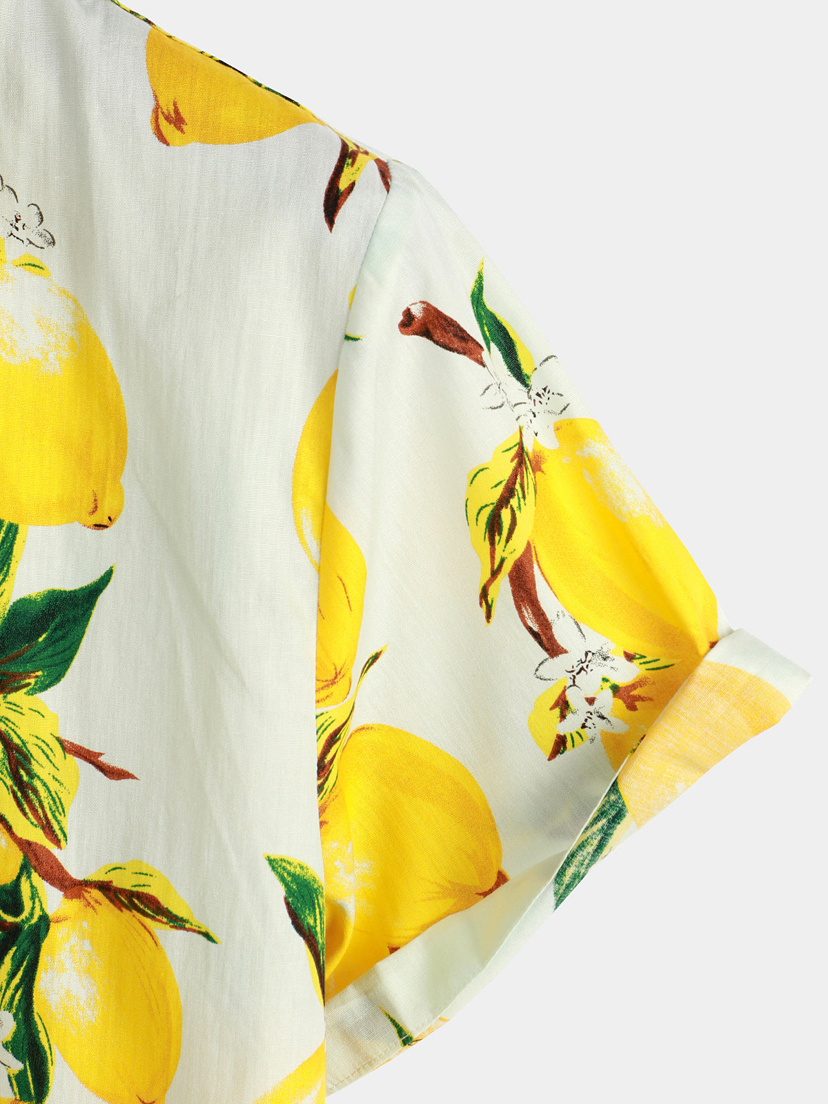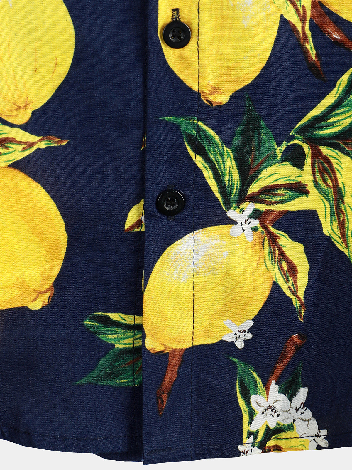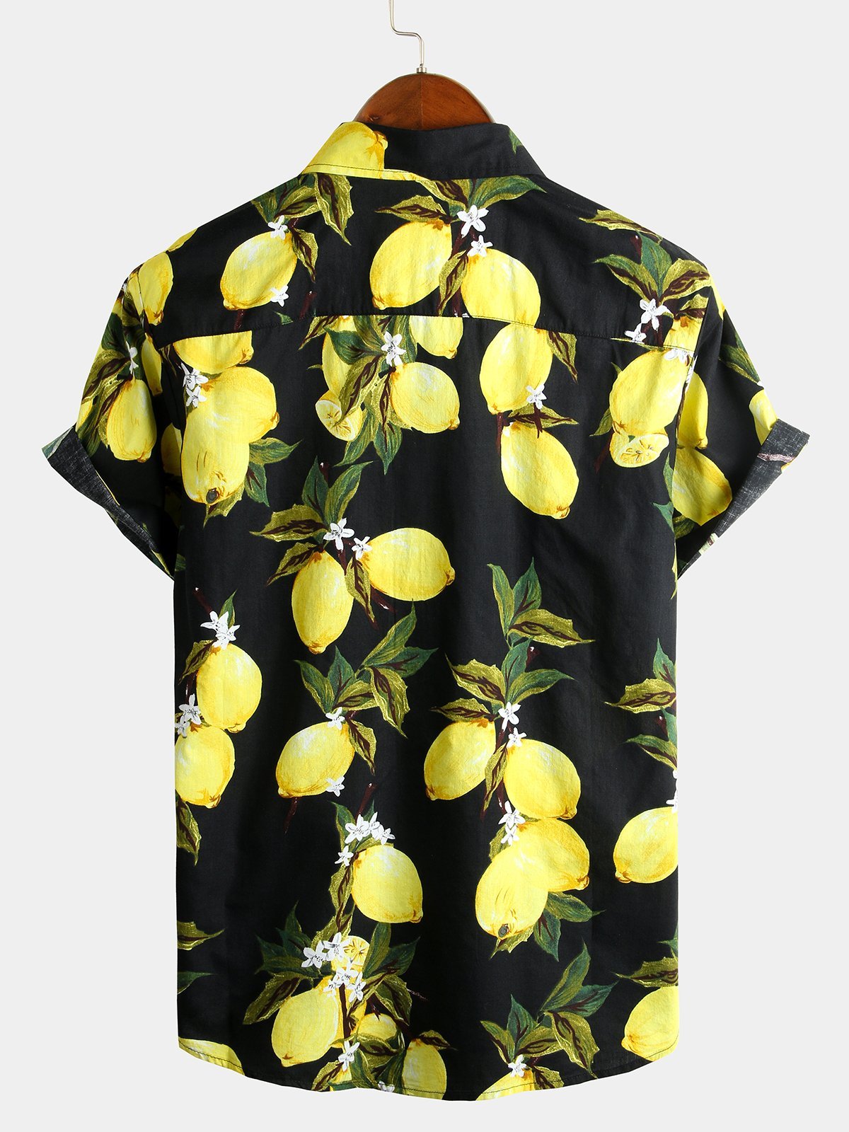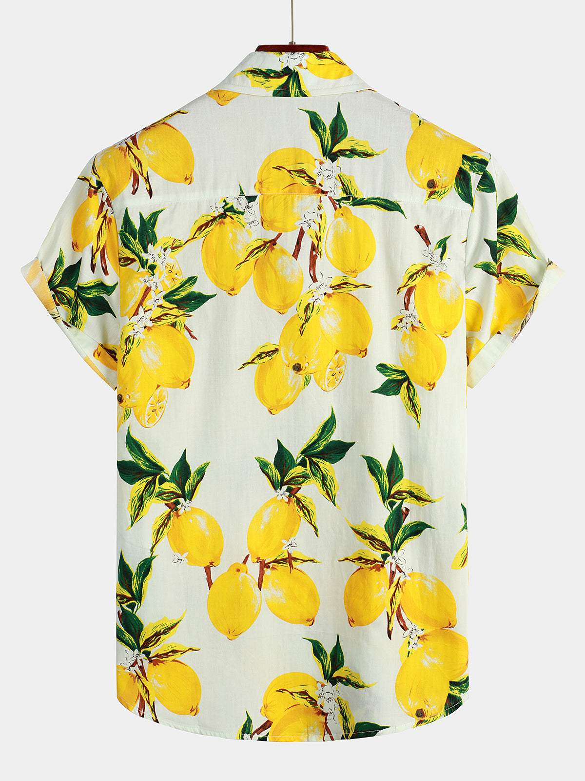 Men's Tropical Yellow Lemon Print Hawaiian Short Sleeve Shirt