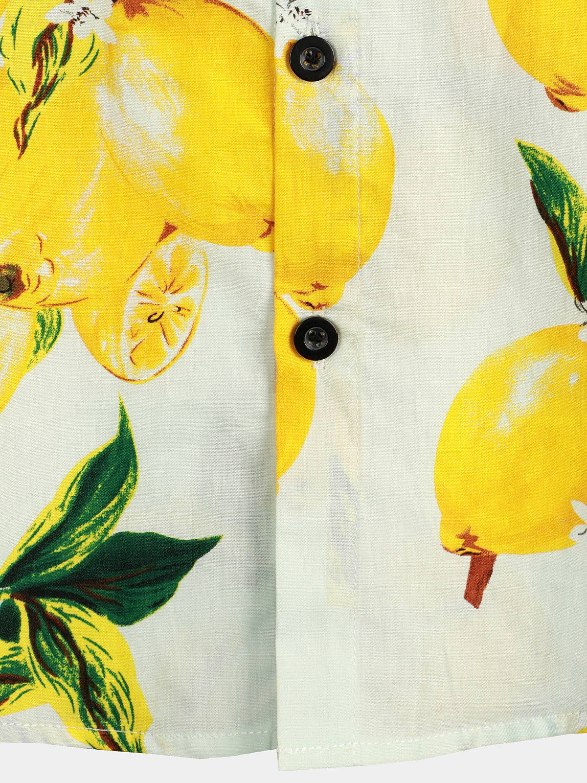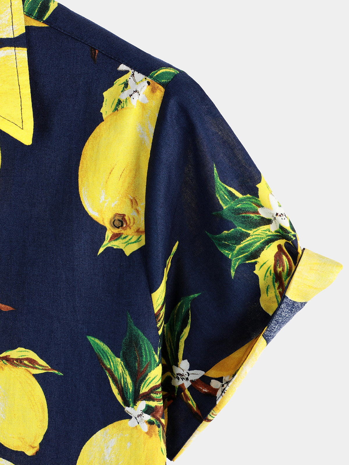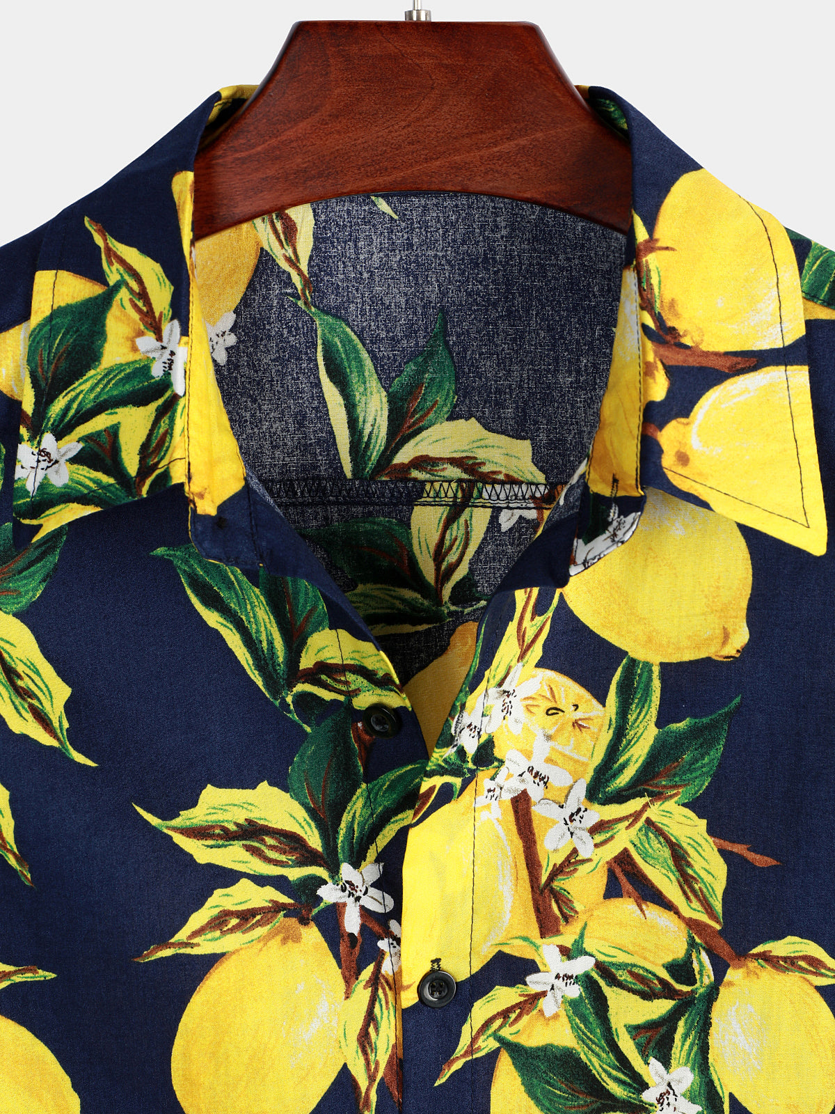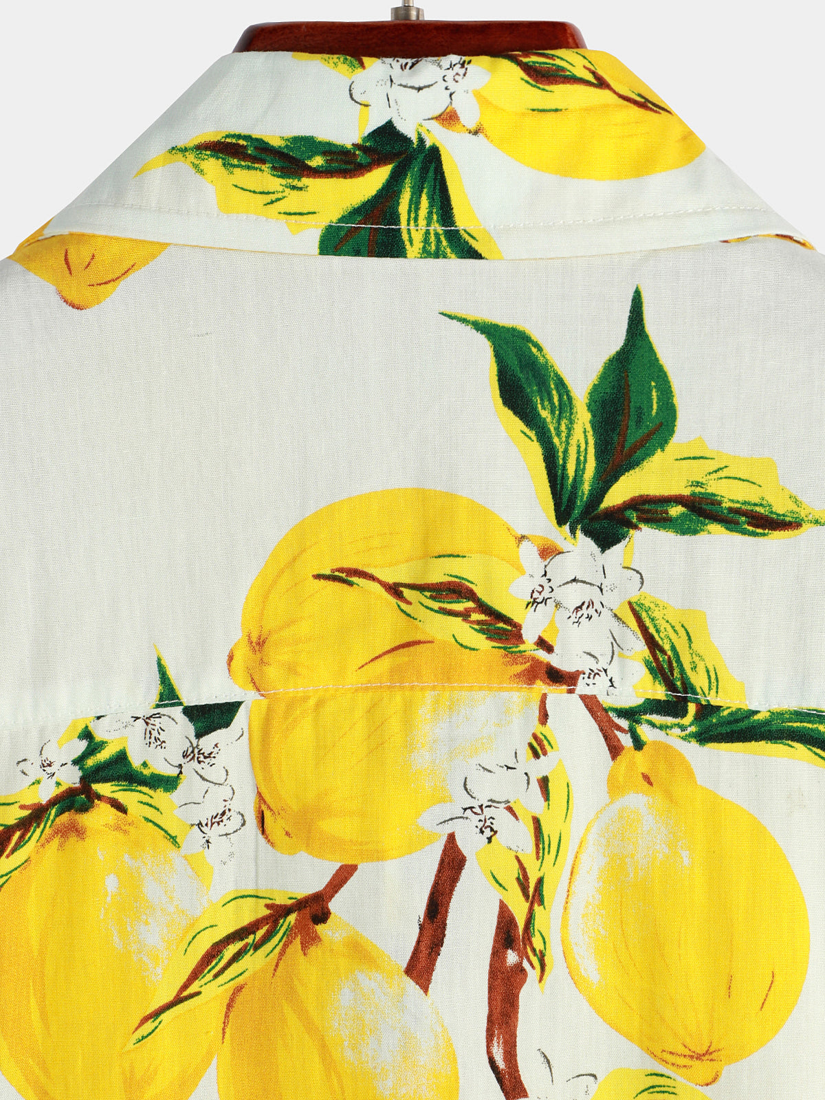 Men's Tropical Yellow Lemon Print Hawaiian Short Sleeve Shirt
