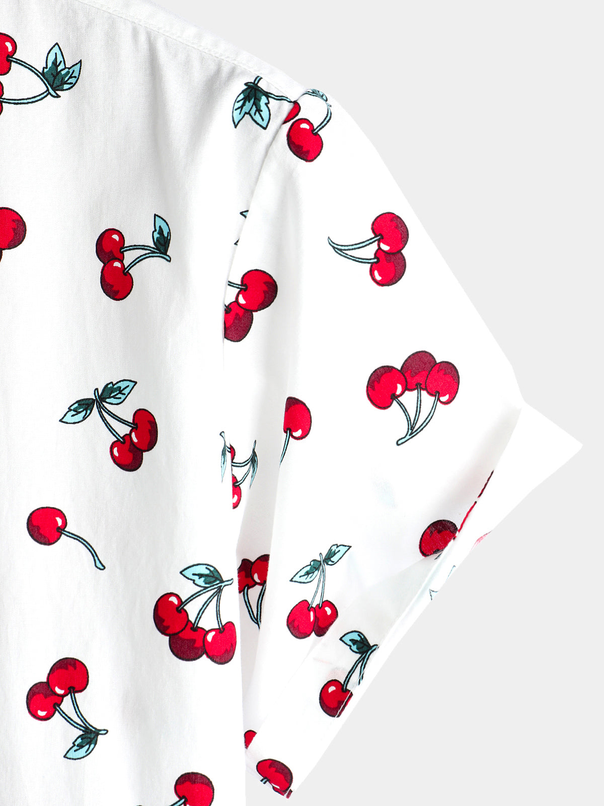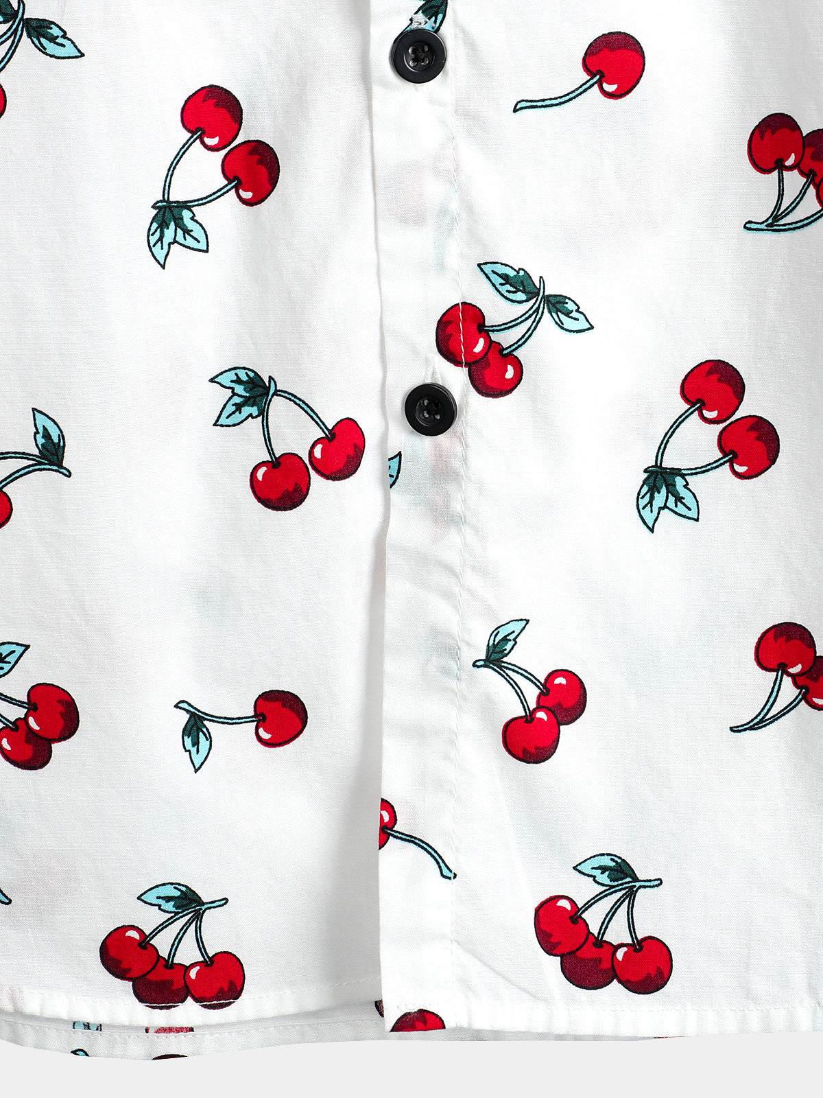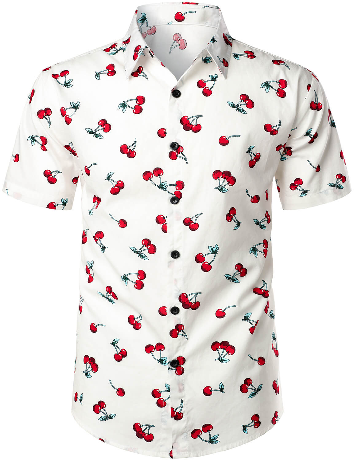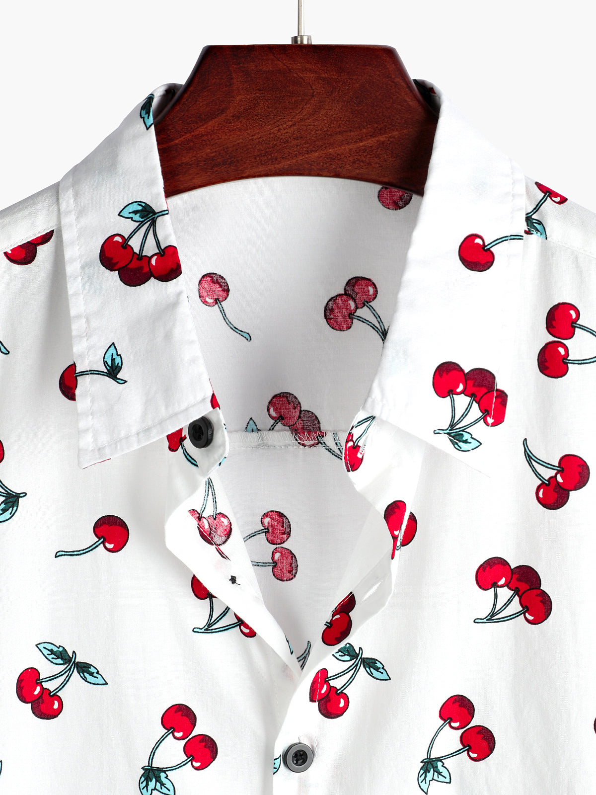 Men's Cherry Floral Print Tropical Hawaii Cotton Shirt