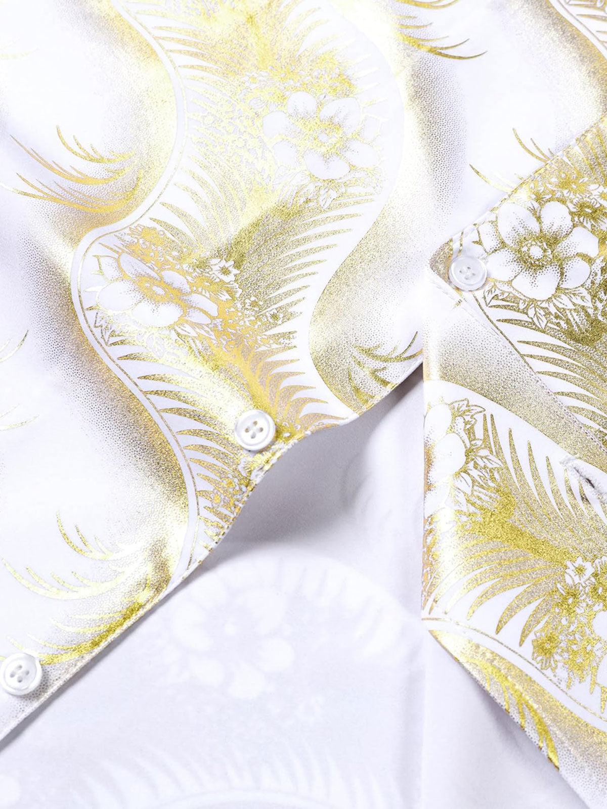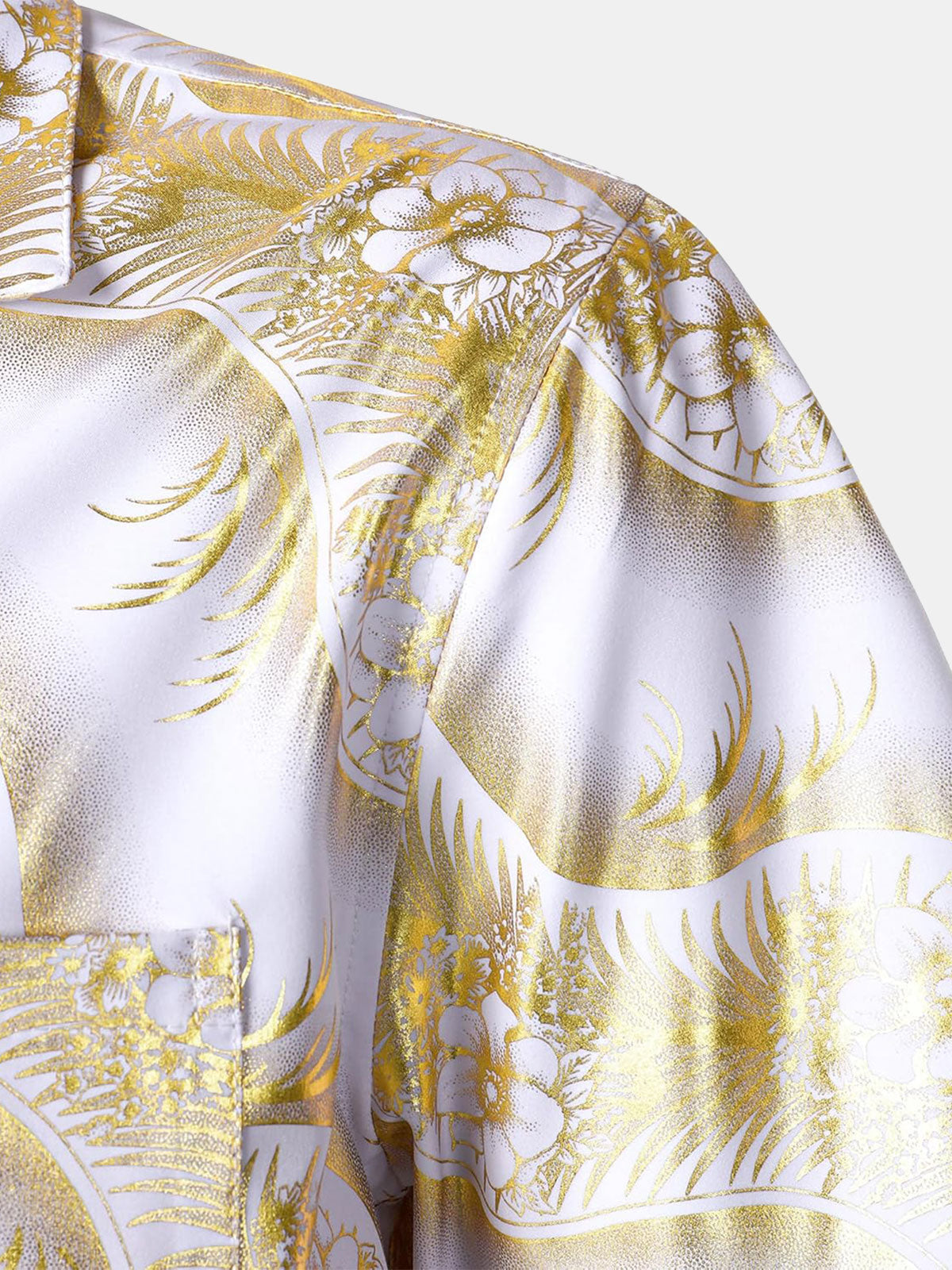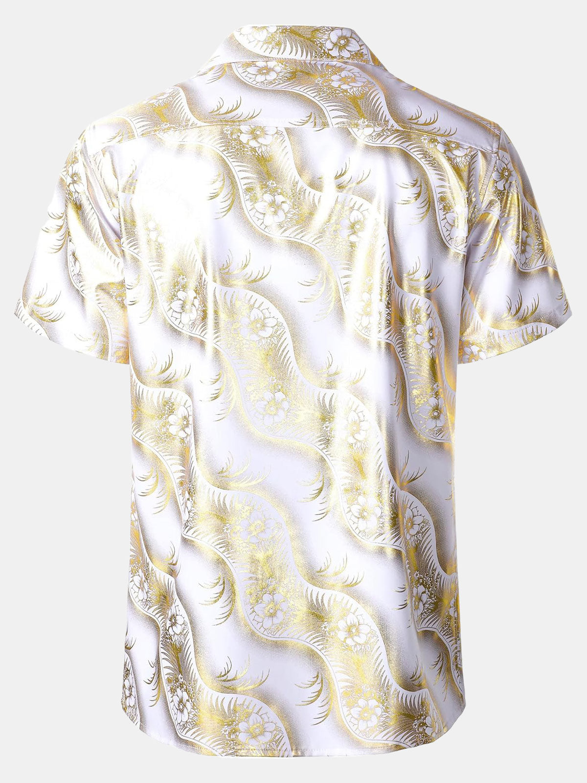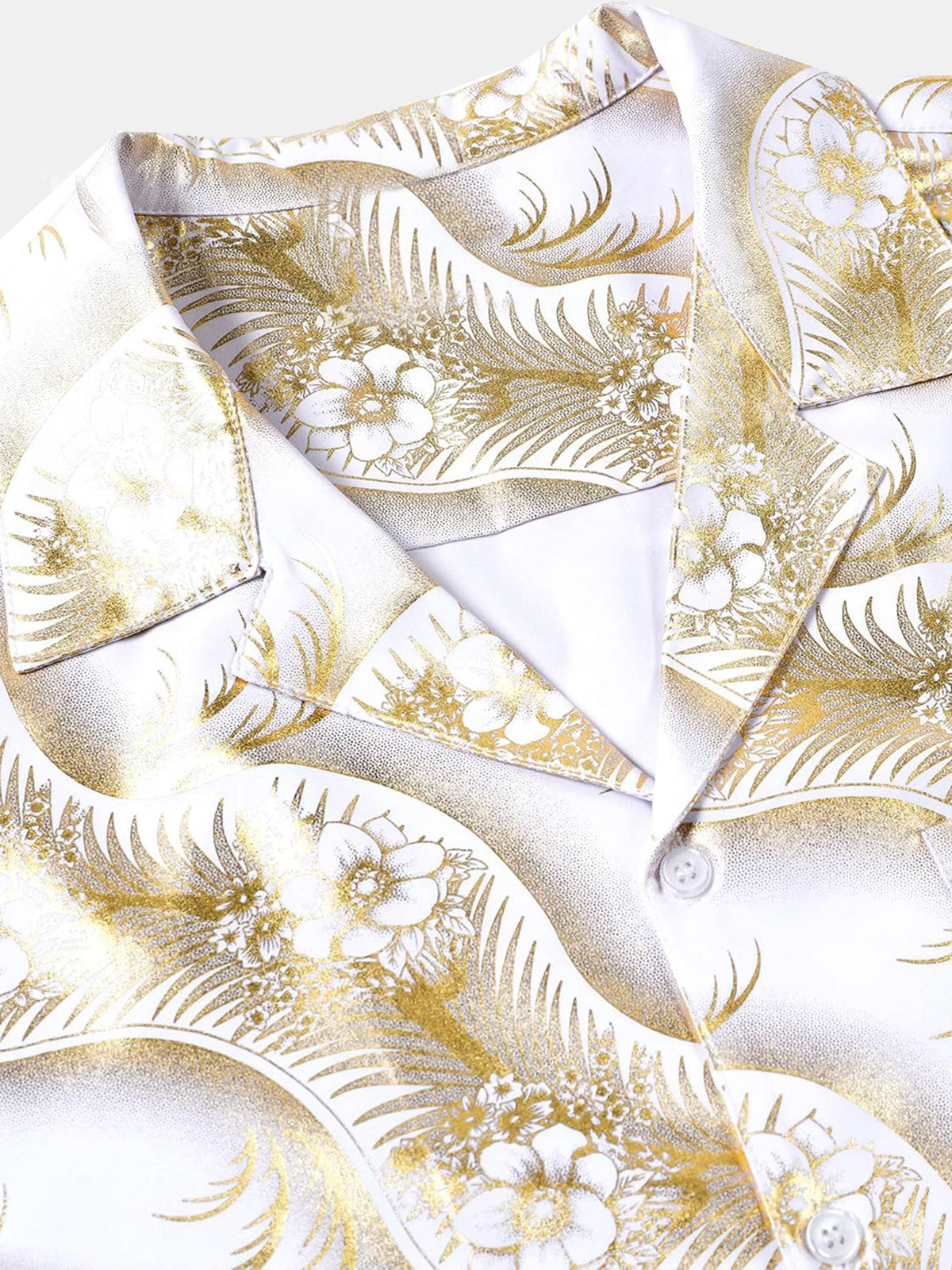 Men's Golden Floral Print Cuban Collar Short Sleeve Shirt