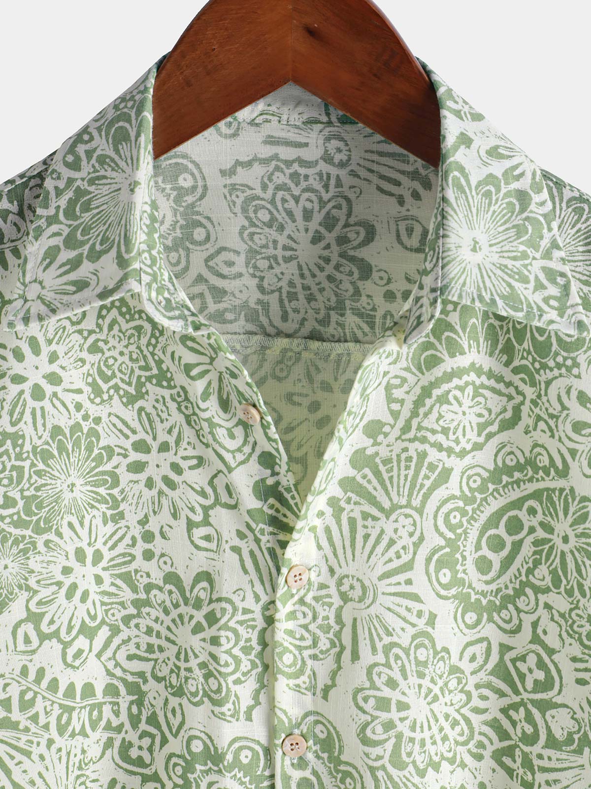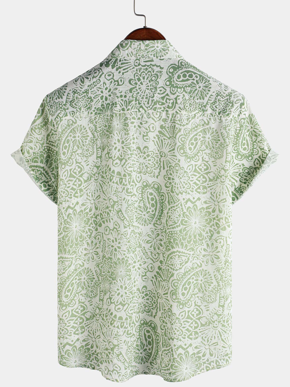 Men's Green Floral Short Sleeve Summer Button Up Shirt