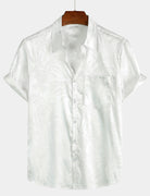 Men's Jacquard Vintage Elegant Button Up Pocket Short Sleeve Casual Shirt