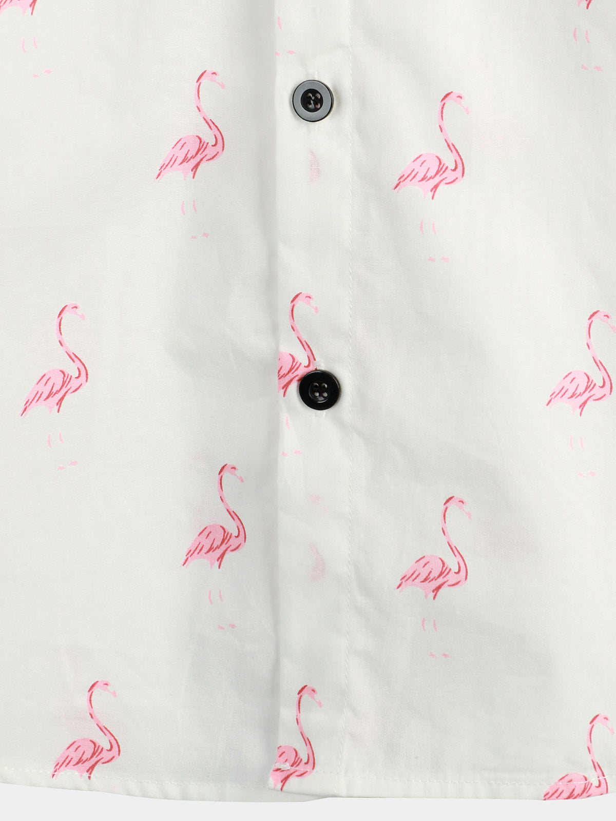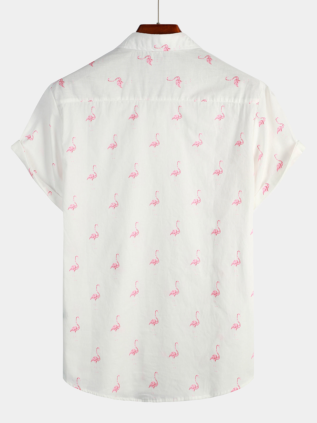 Men's Pink Flamingo Print Short Sleeve Button Up Shirt