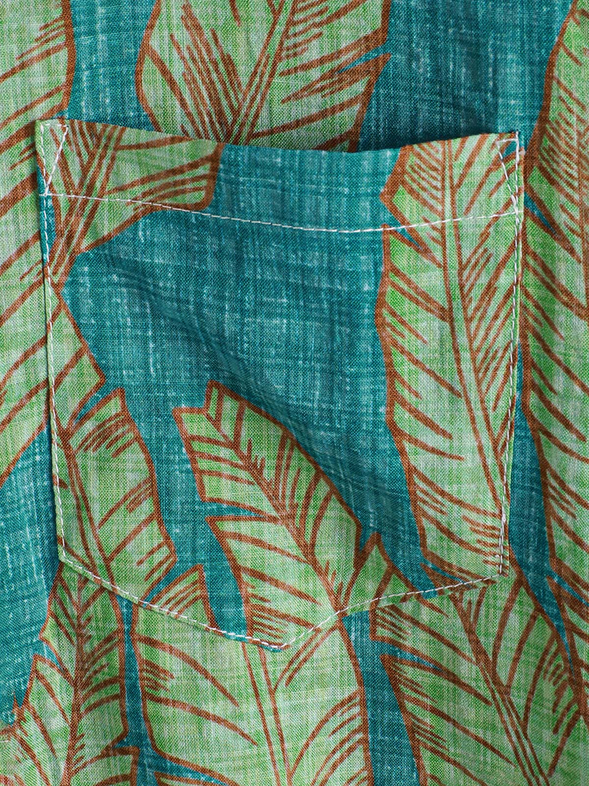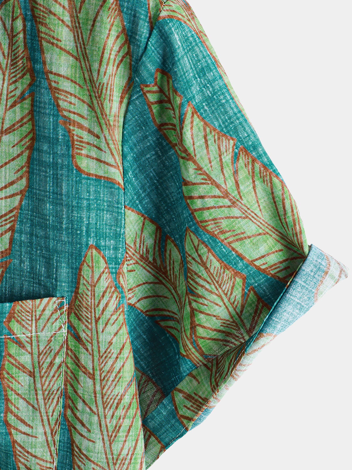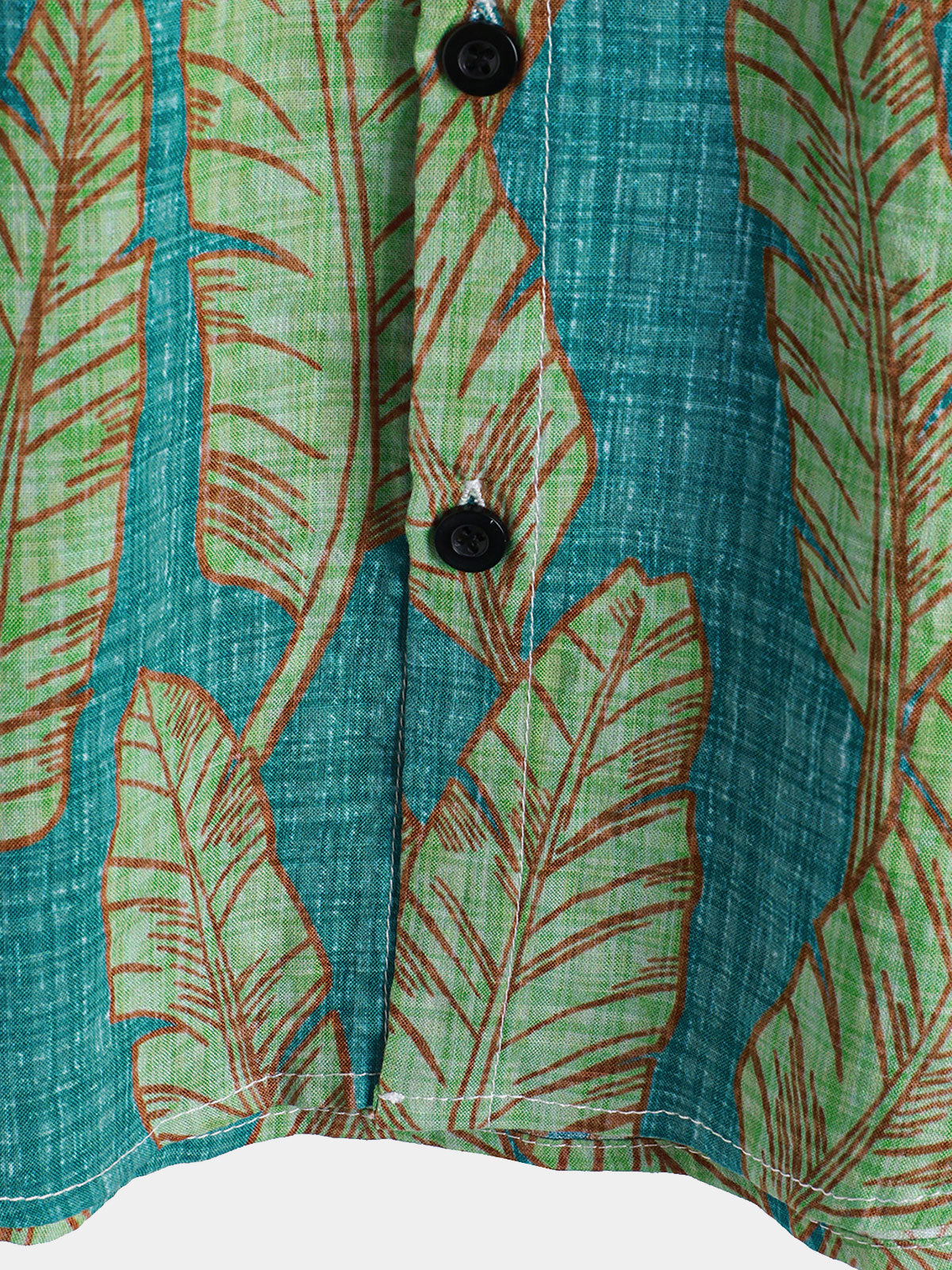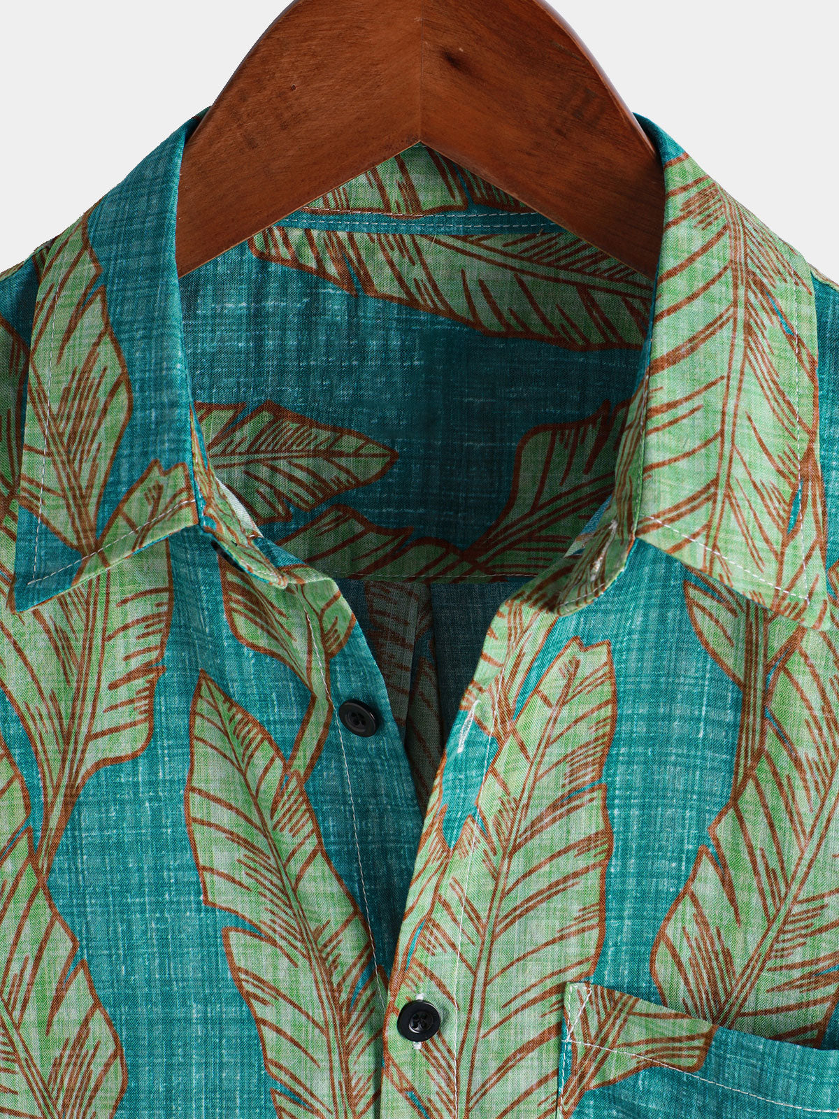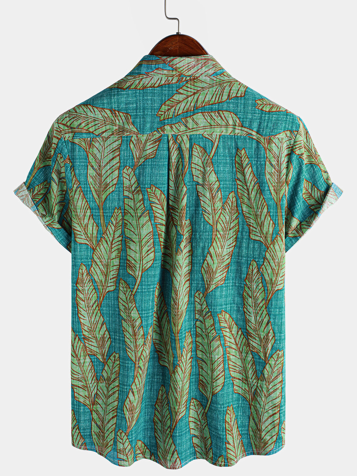 Men's Summer Green Tropical Leaf Hawaiian Short Sleeve Shirt