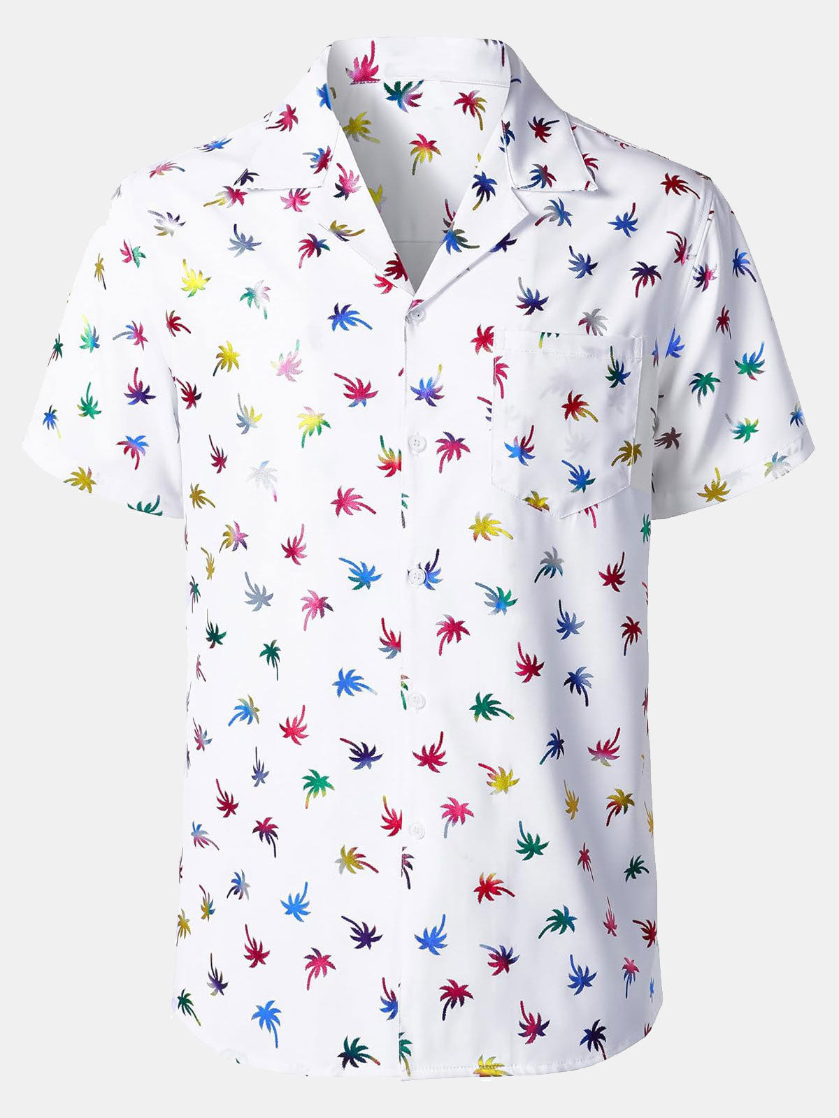 Men's Tropical Colorful Print Cuban Collar Short Sleeve Shirt