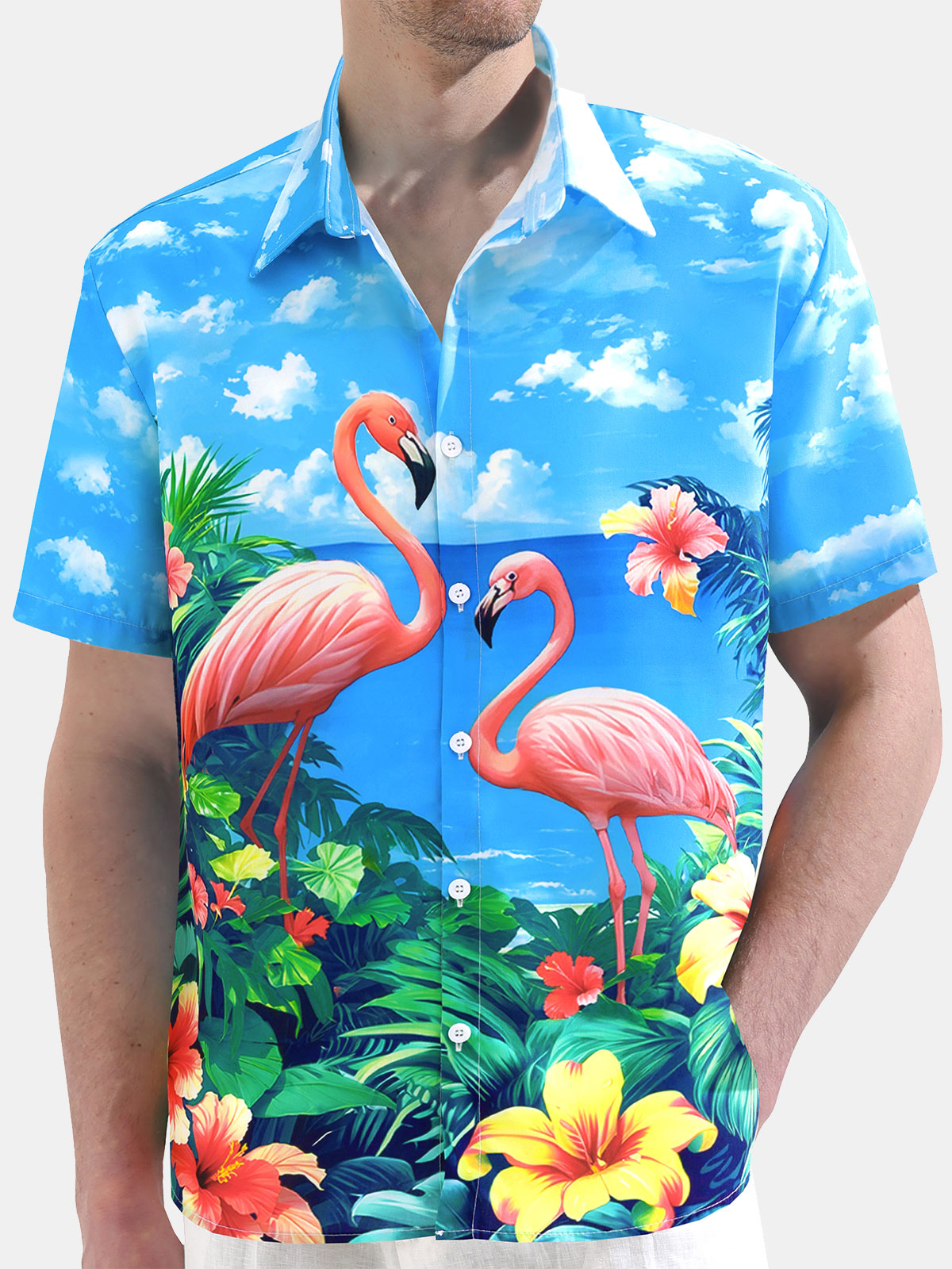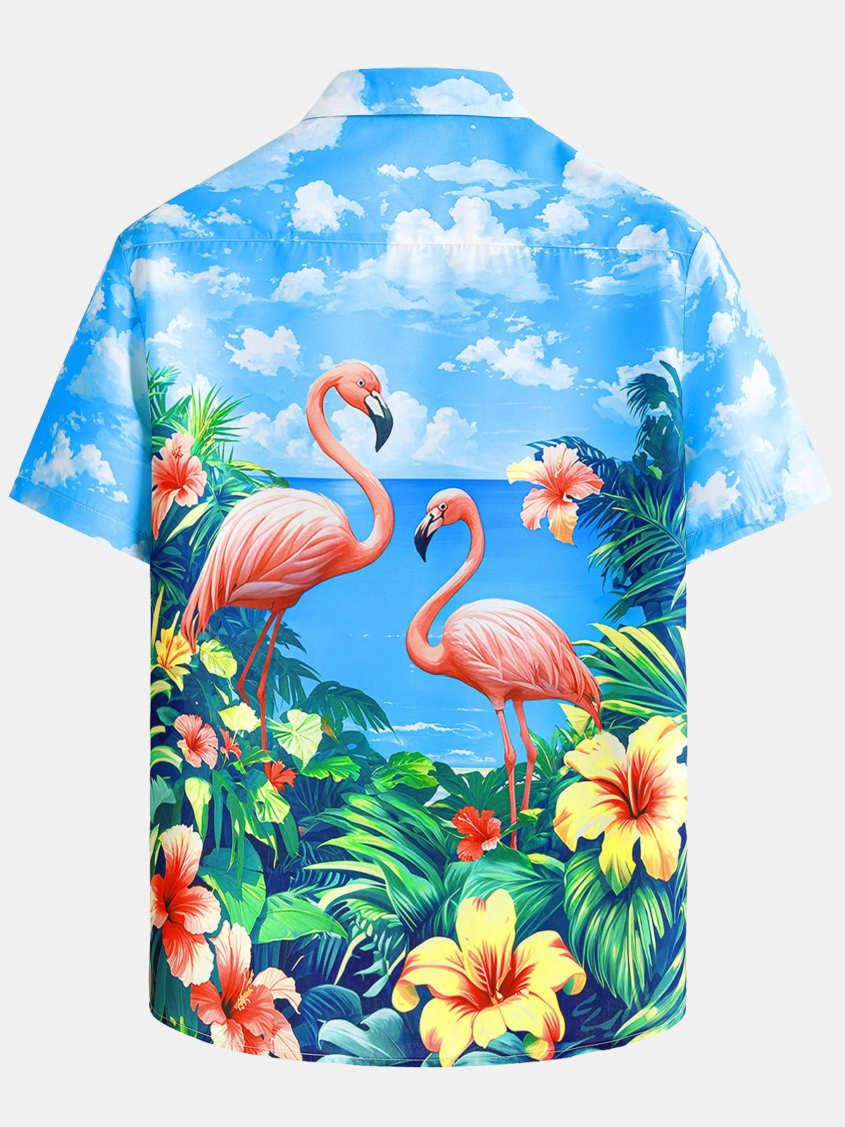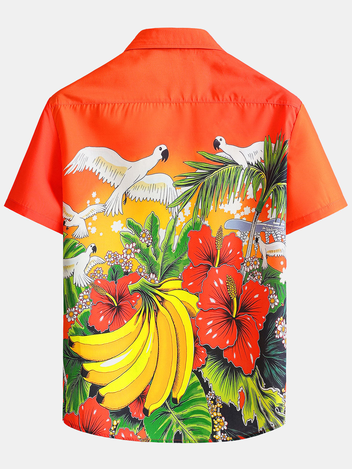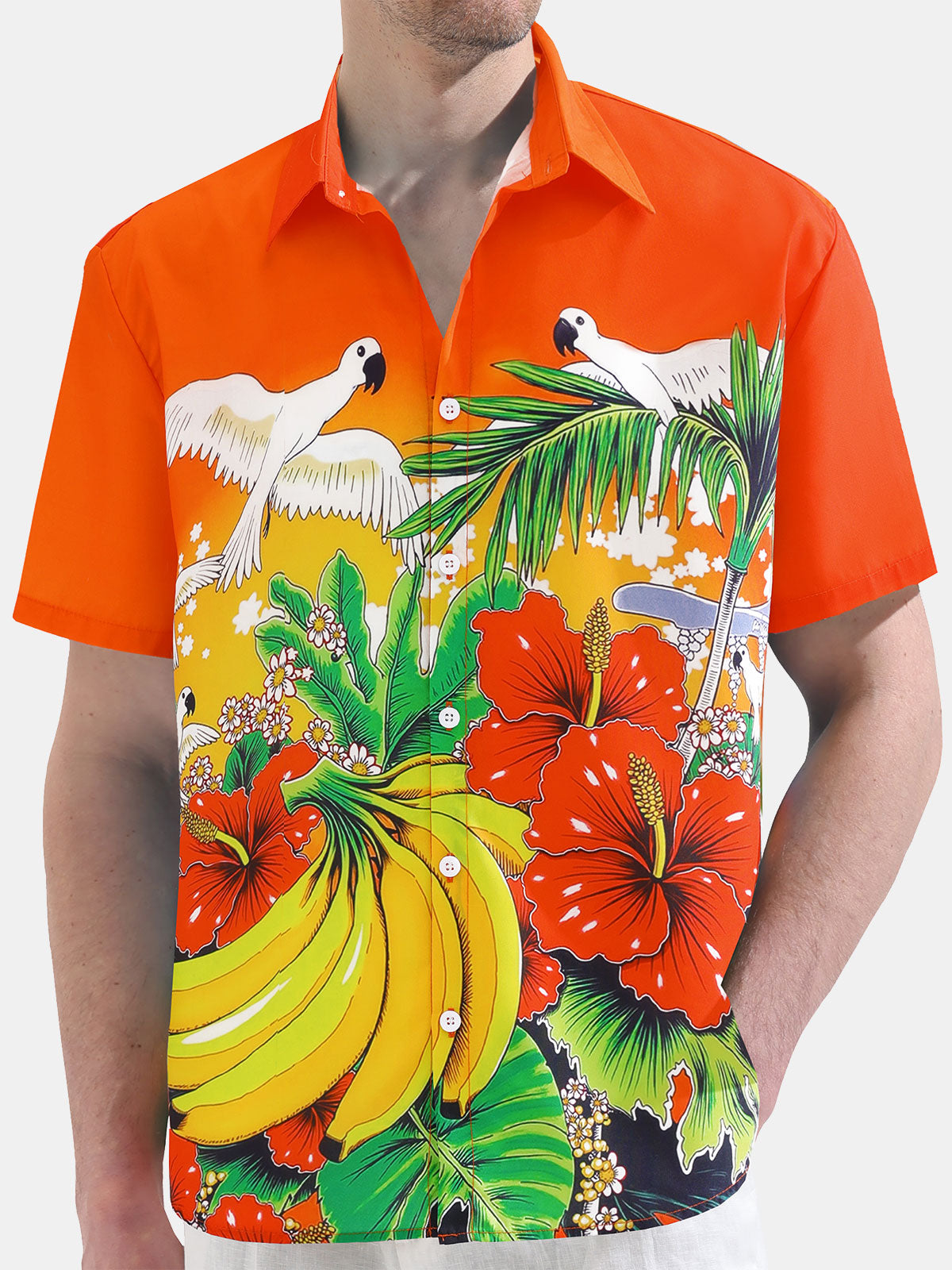 Men's Tropical Floral Print Short Sleeve Hawaiian Shirt