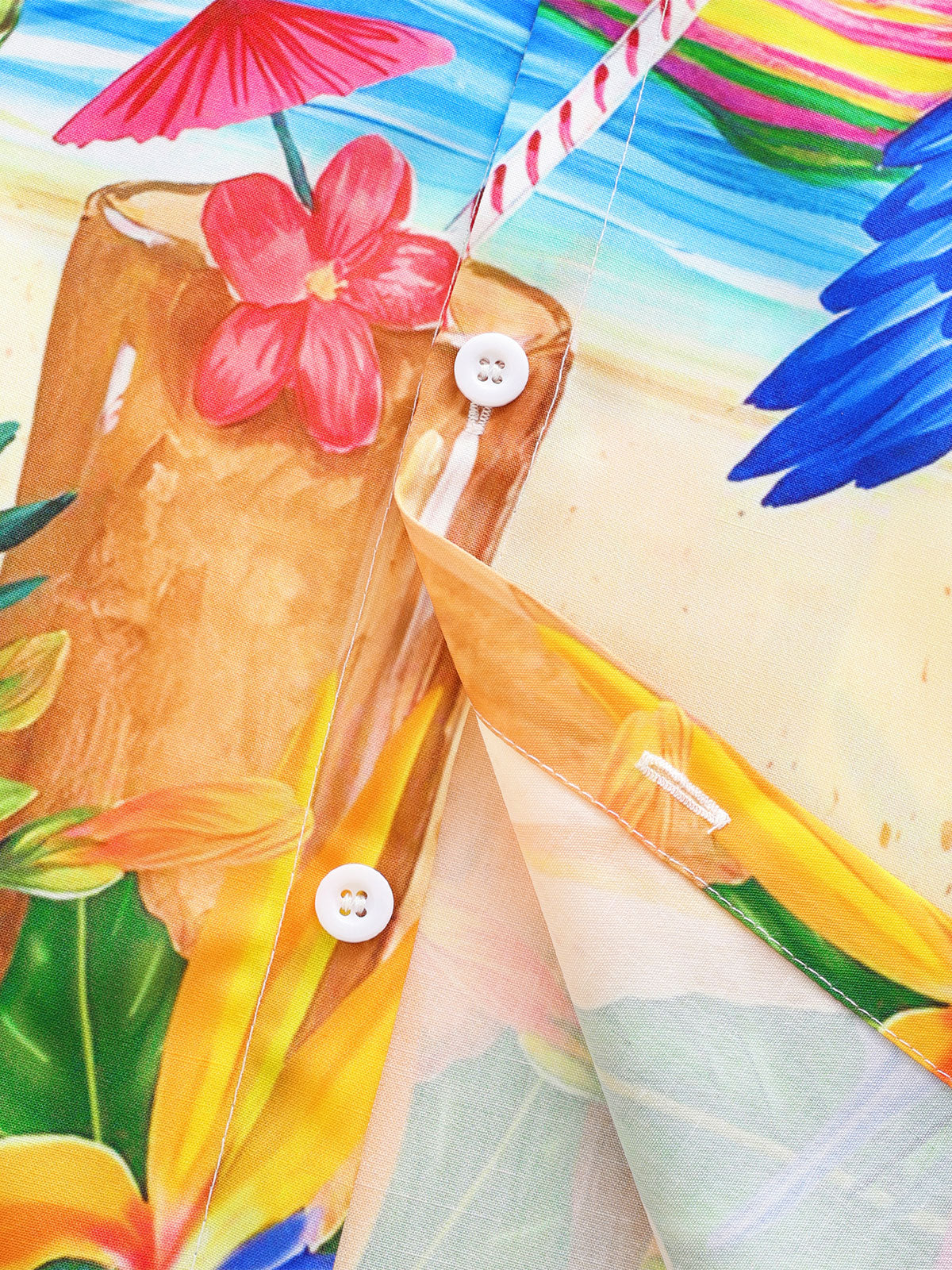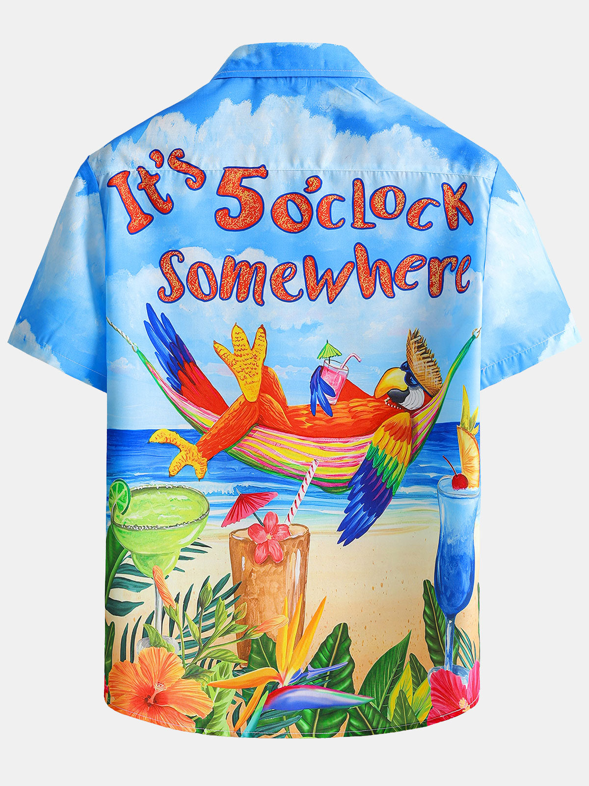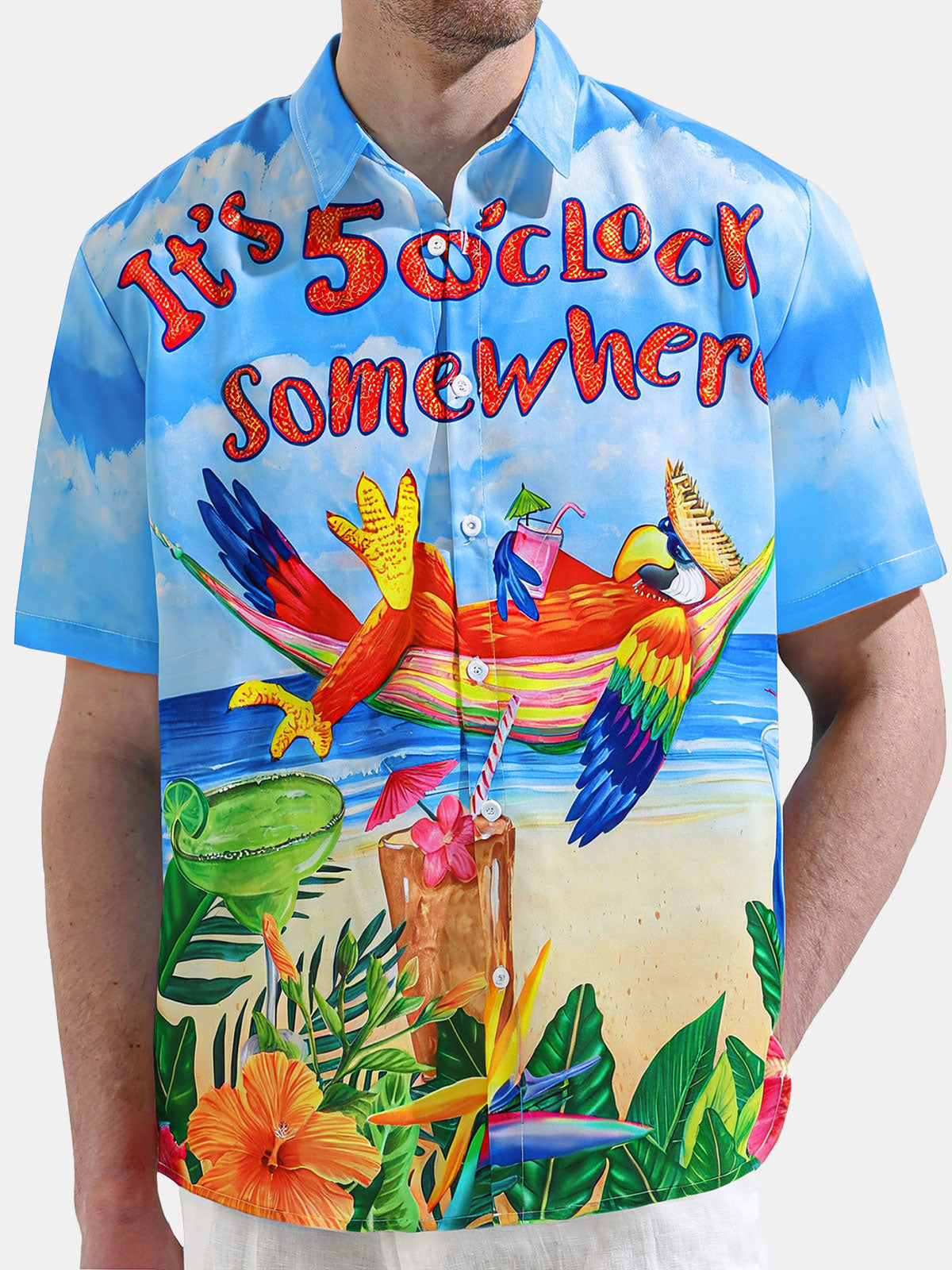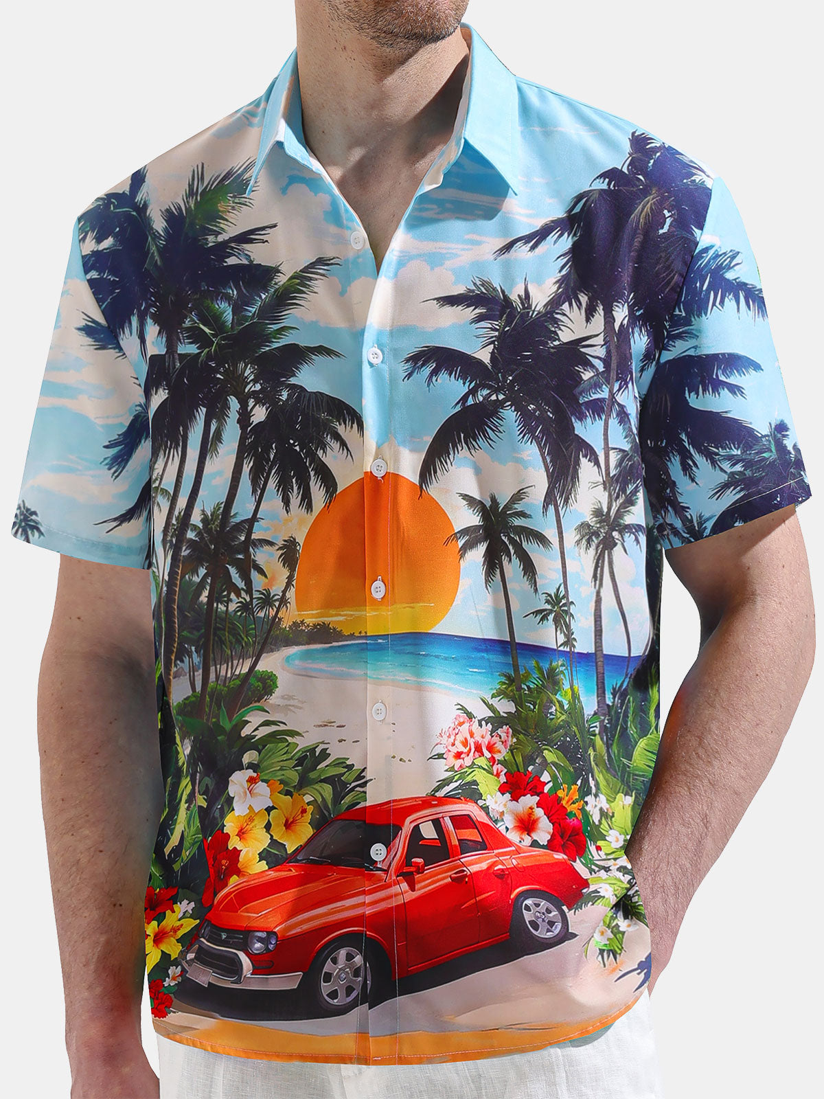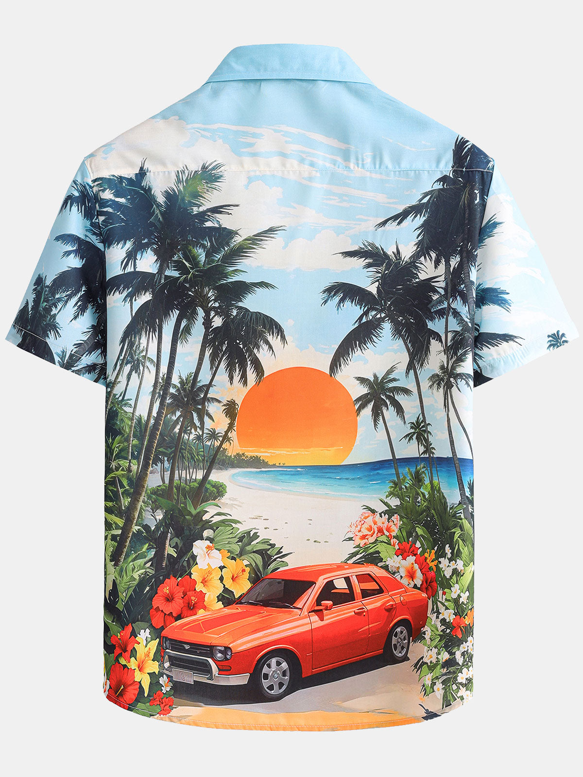 Men's Tropical Floral Print Short Sleeve Hawaiian Shirt