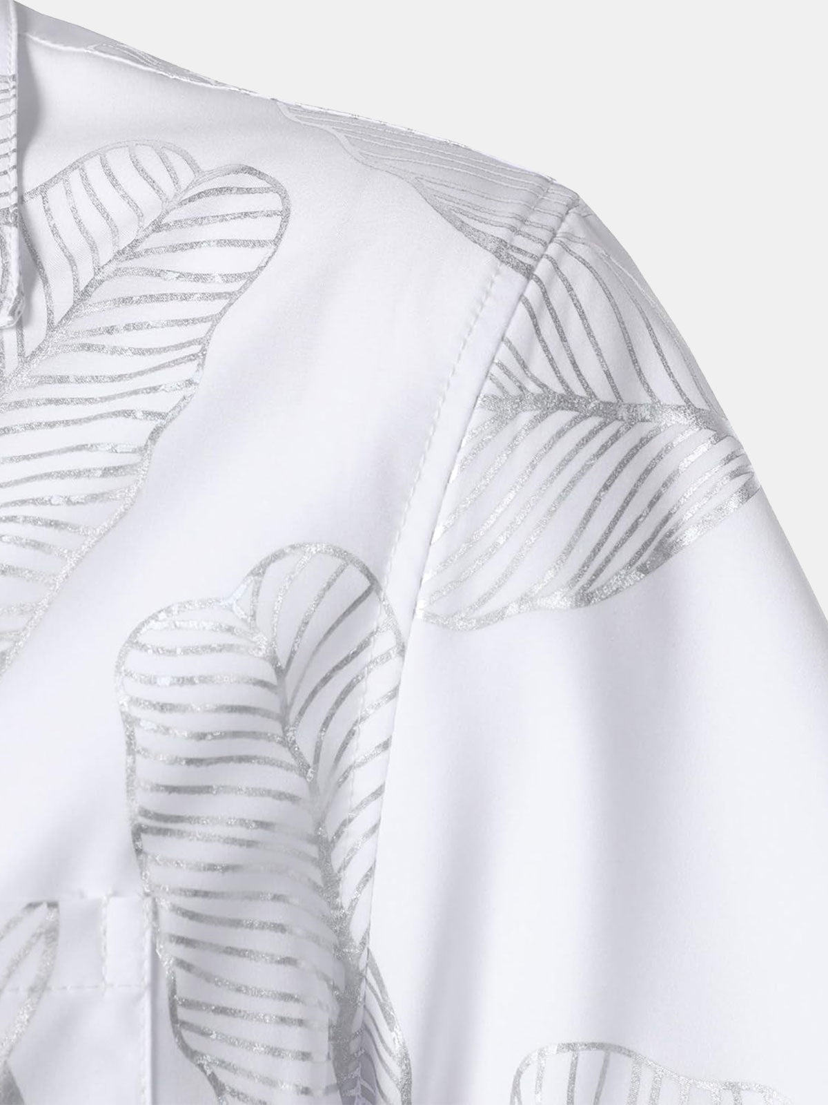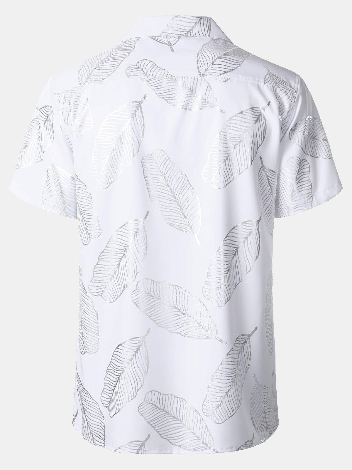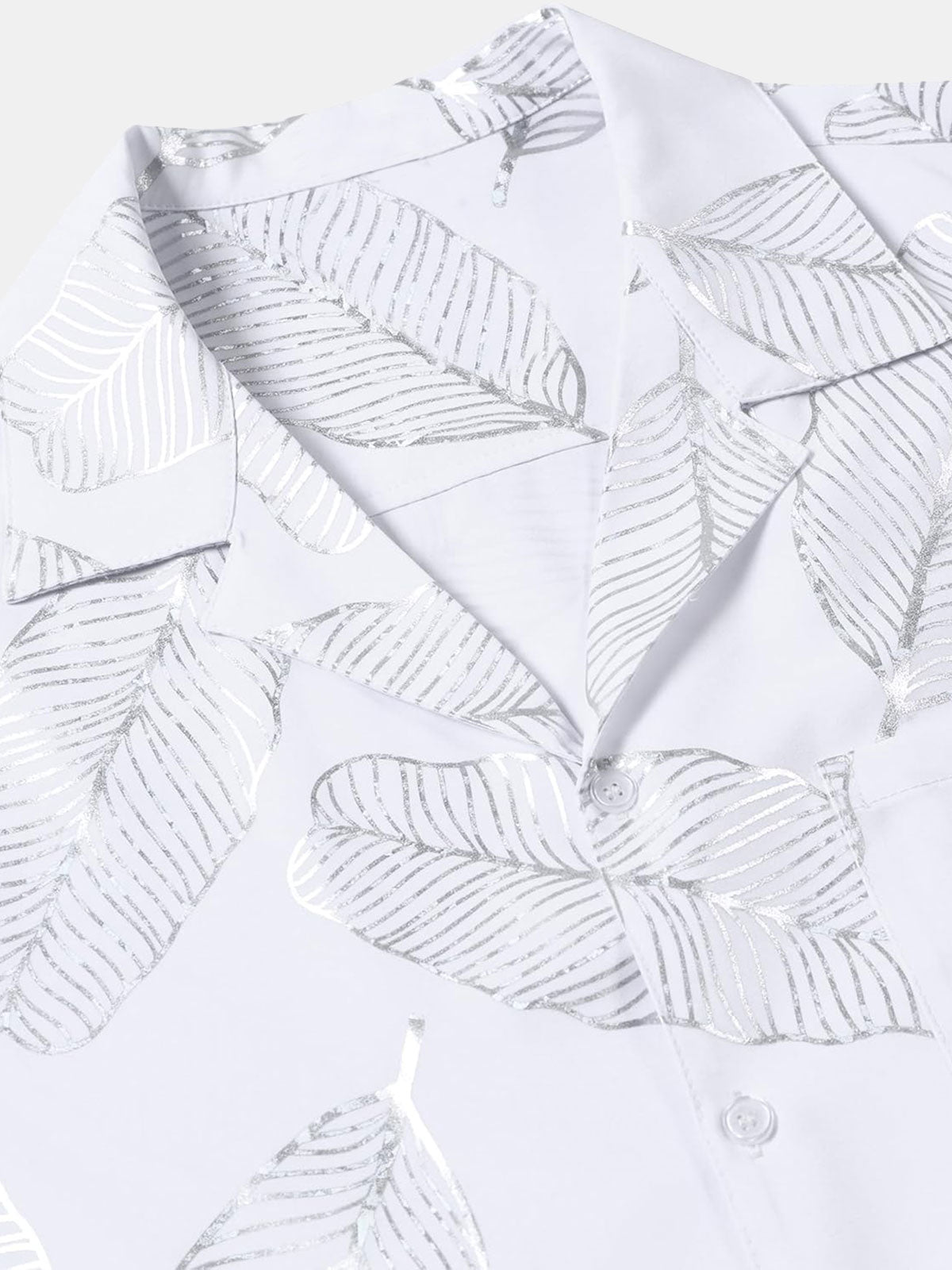 Men's Tropical Leaf Cuban Collar Short Sleeve Shirt