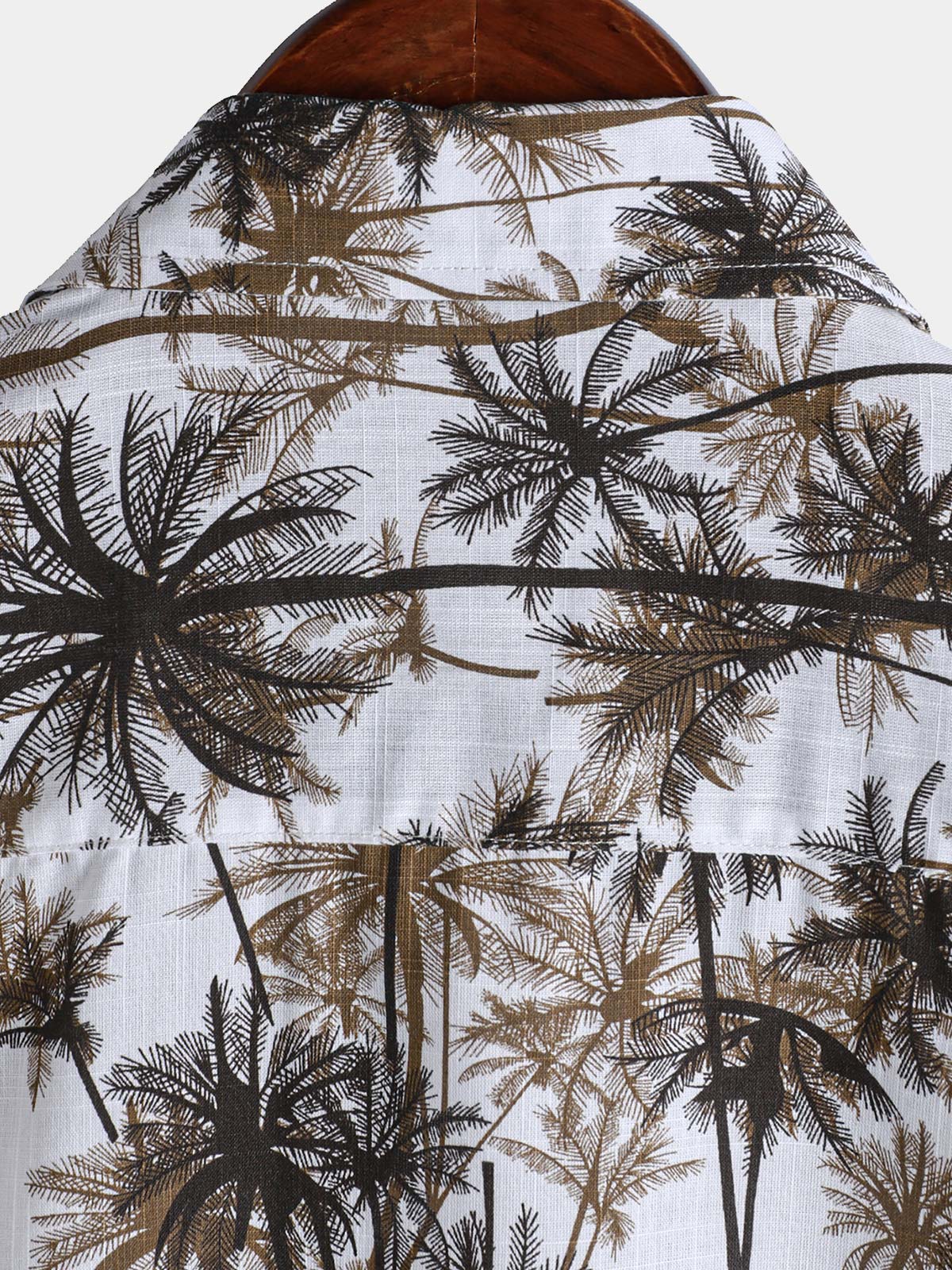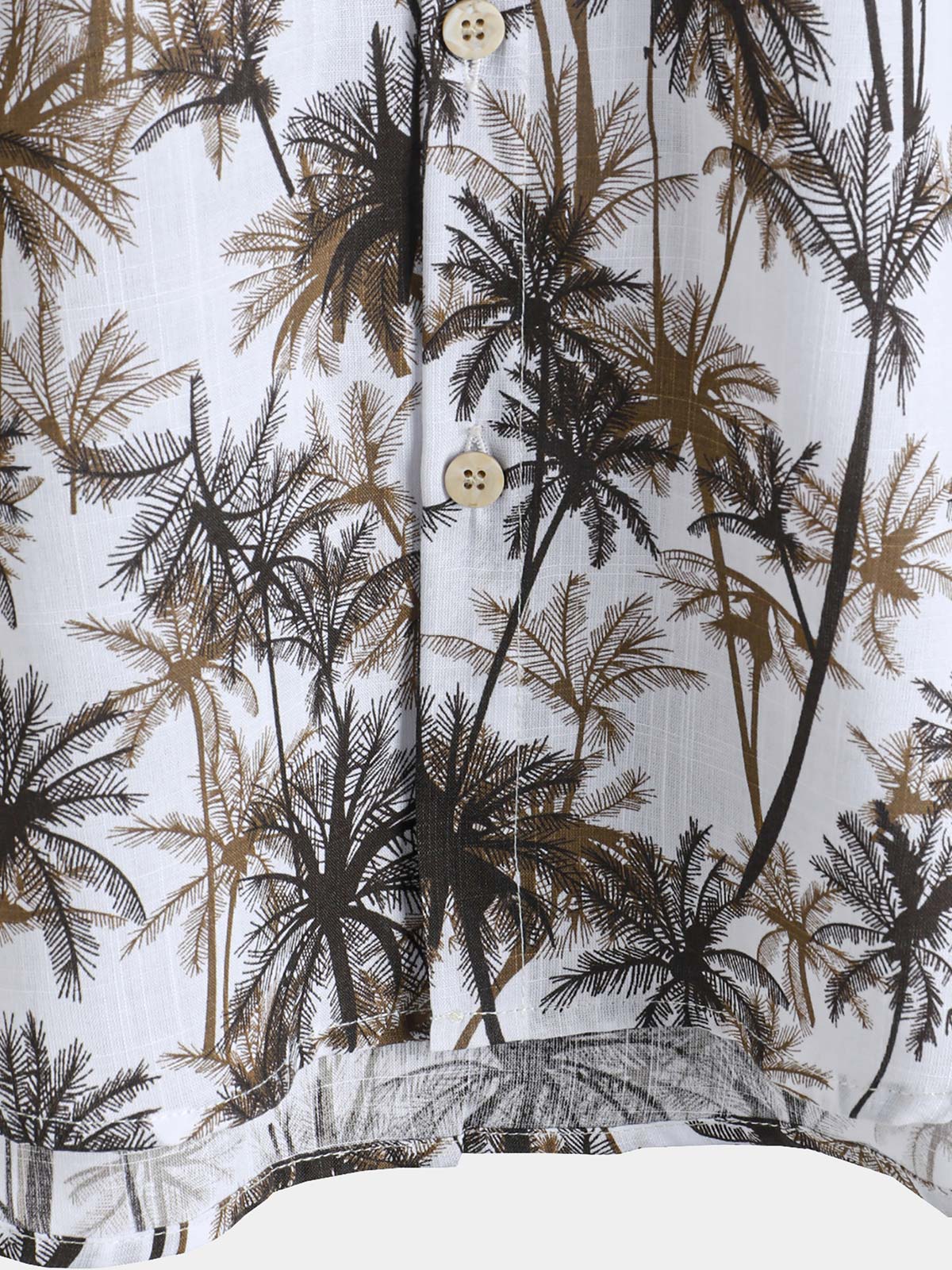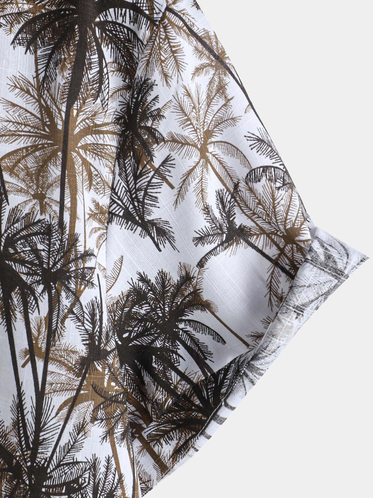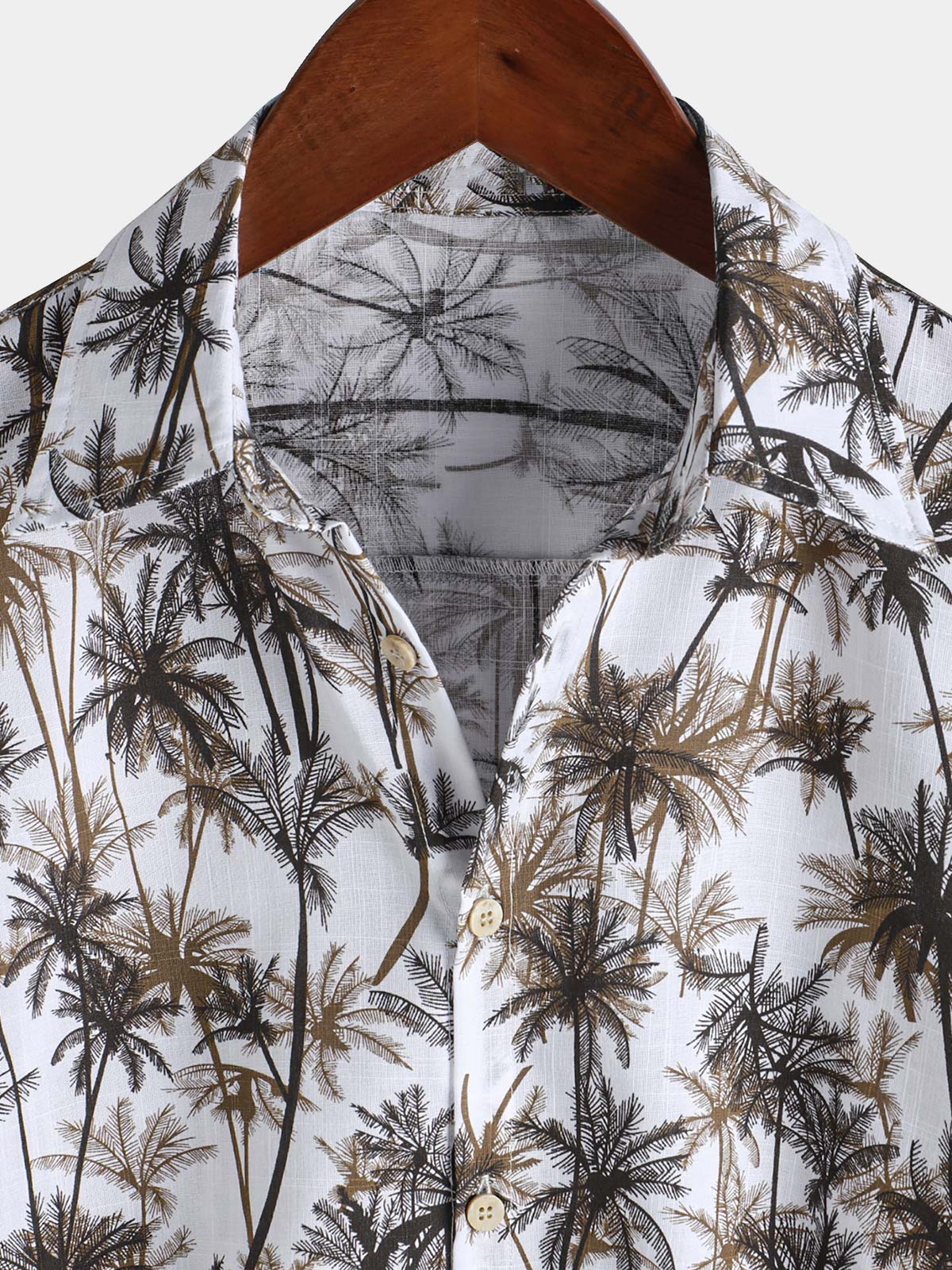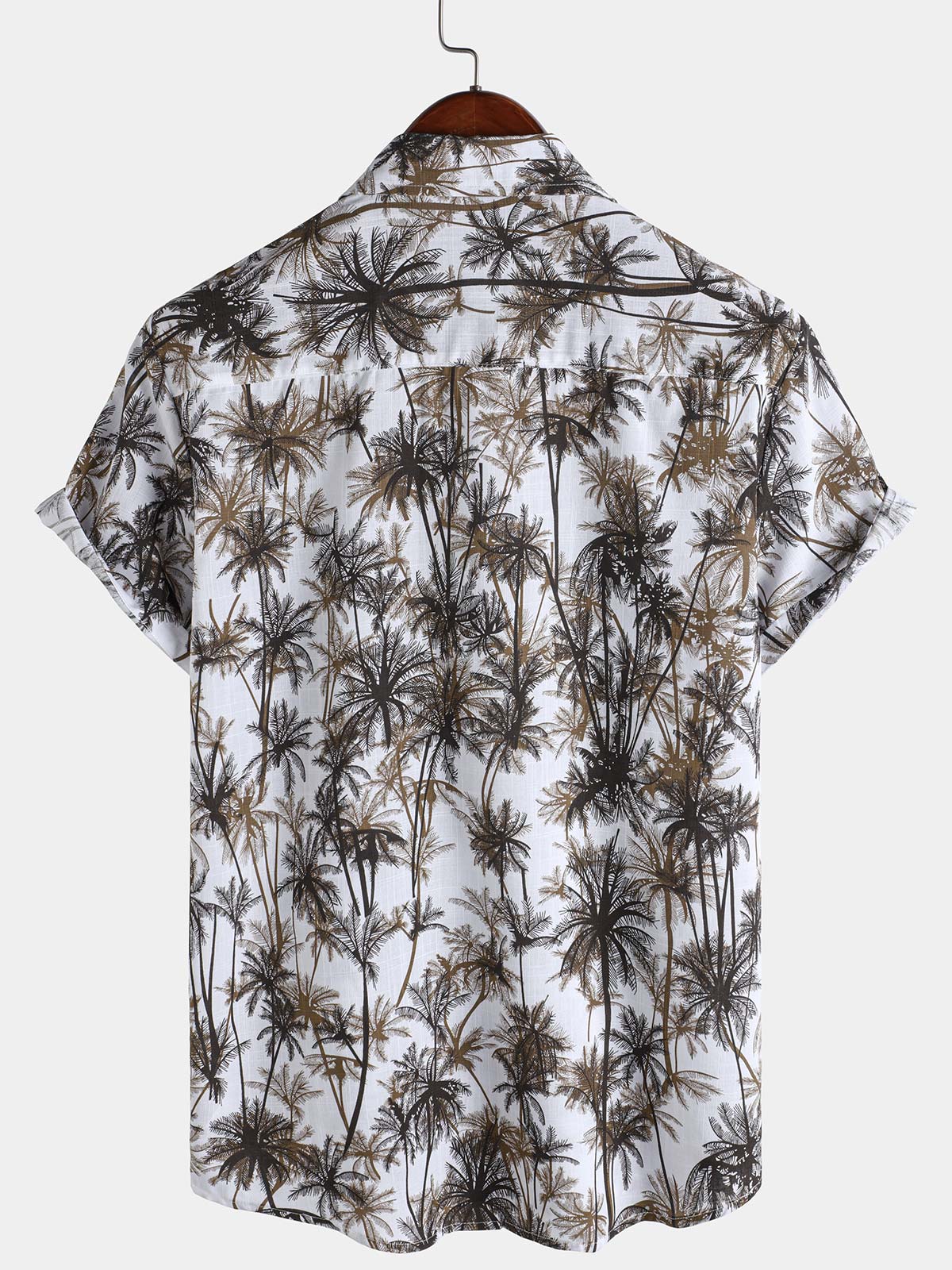 Men's Tropical Plam Tree Short Sleeve Summer Button Up Shirt