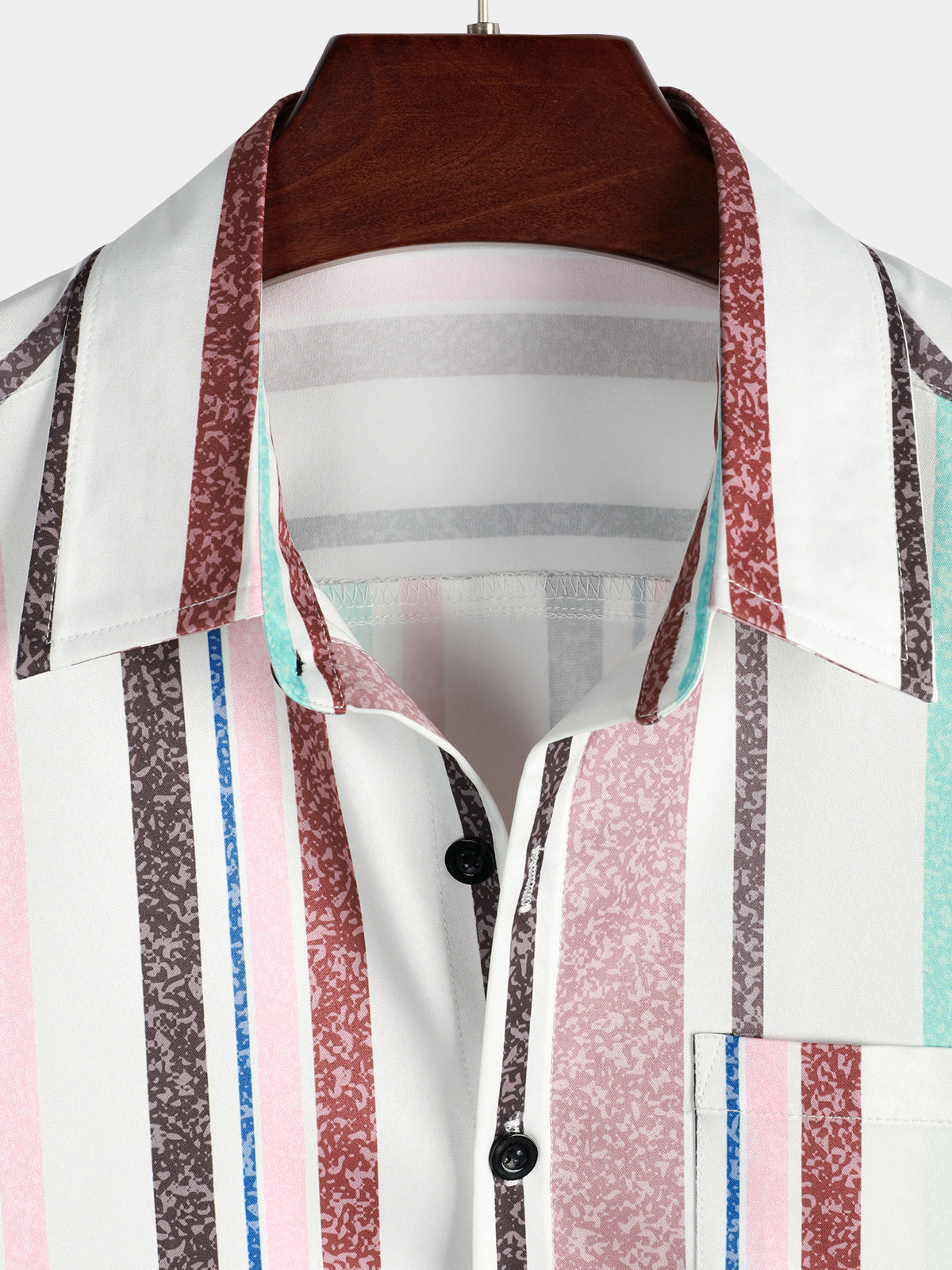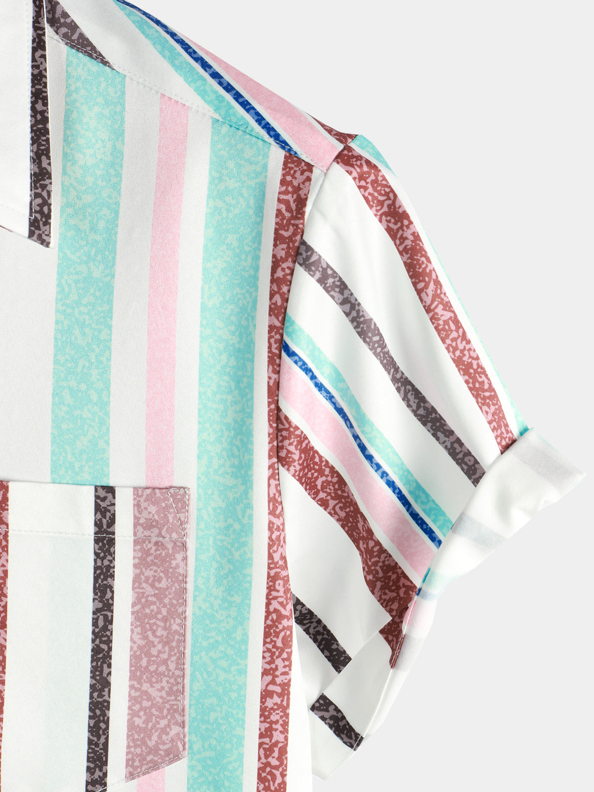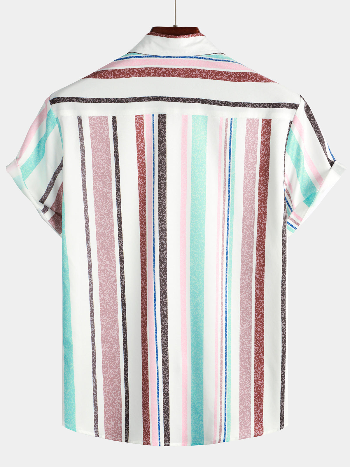 Men's Colorful Button Up Vertical Rainbow Striped Short Sleeve Pocket Shirt