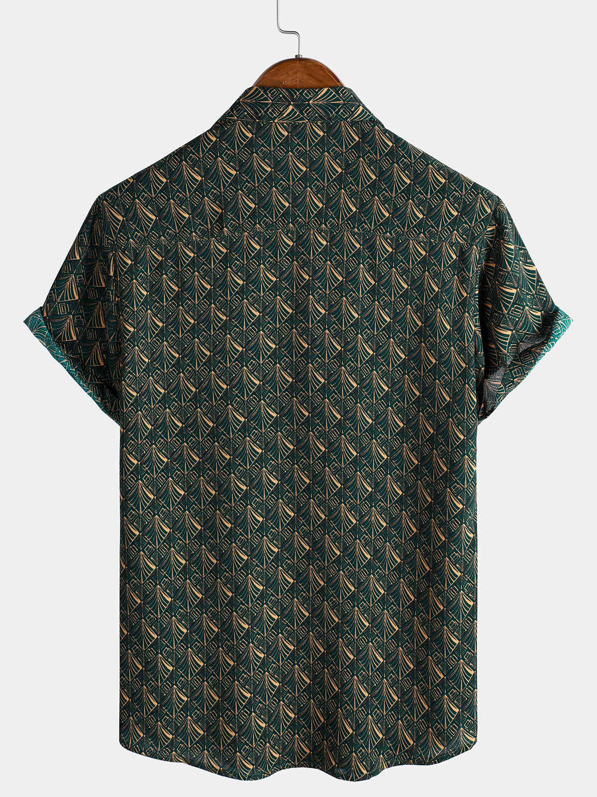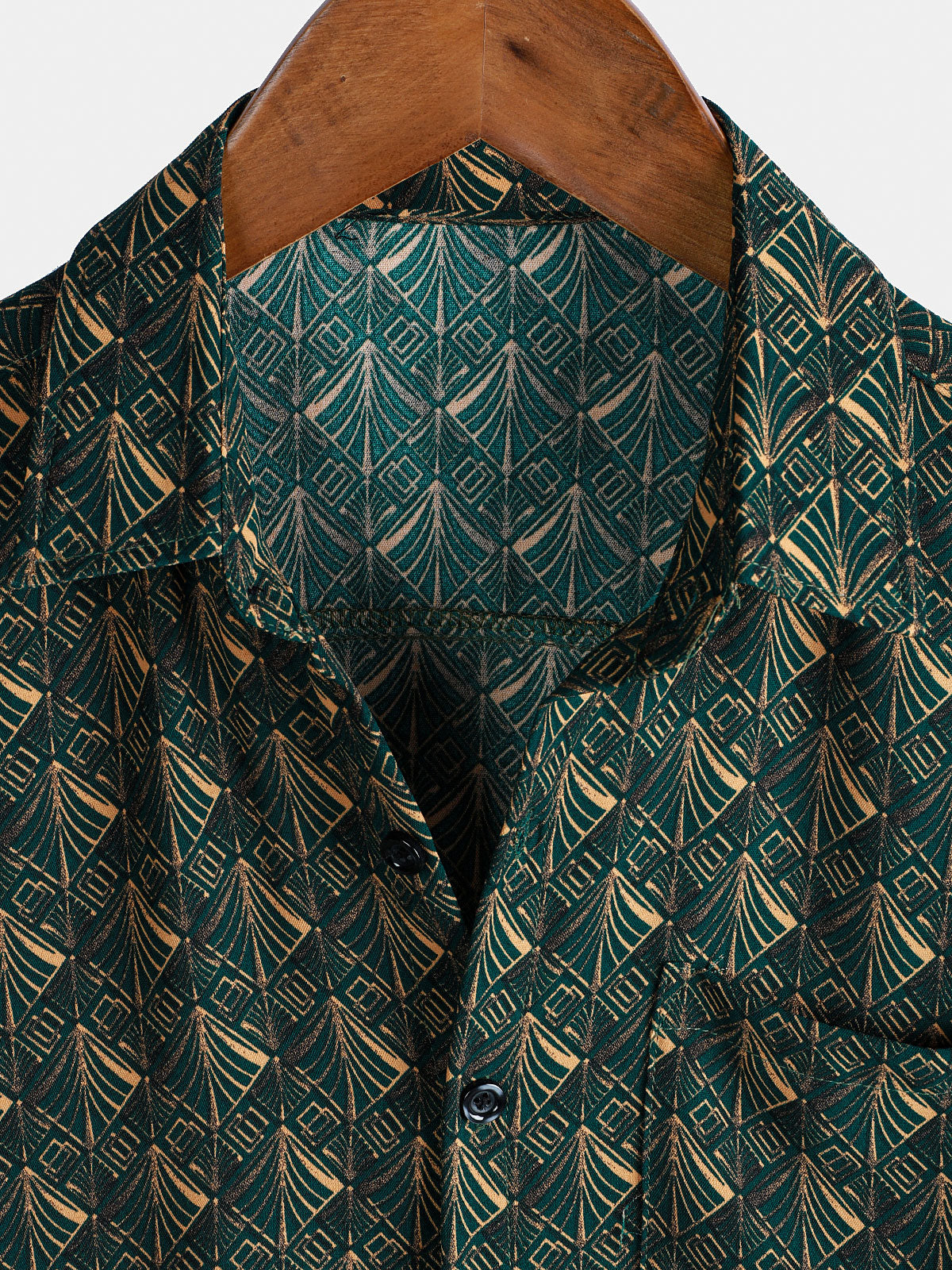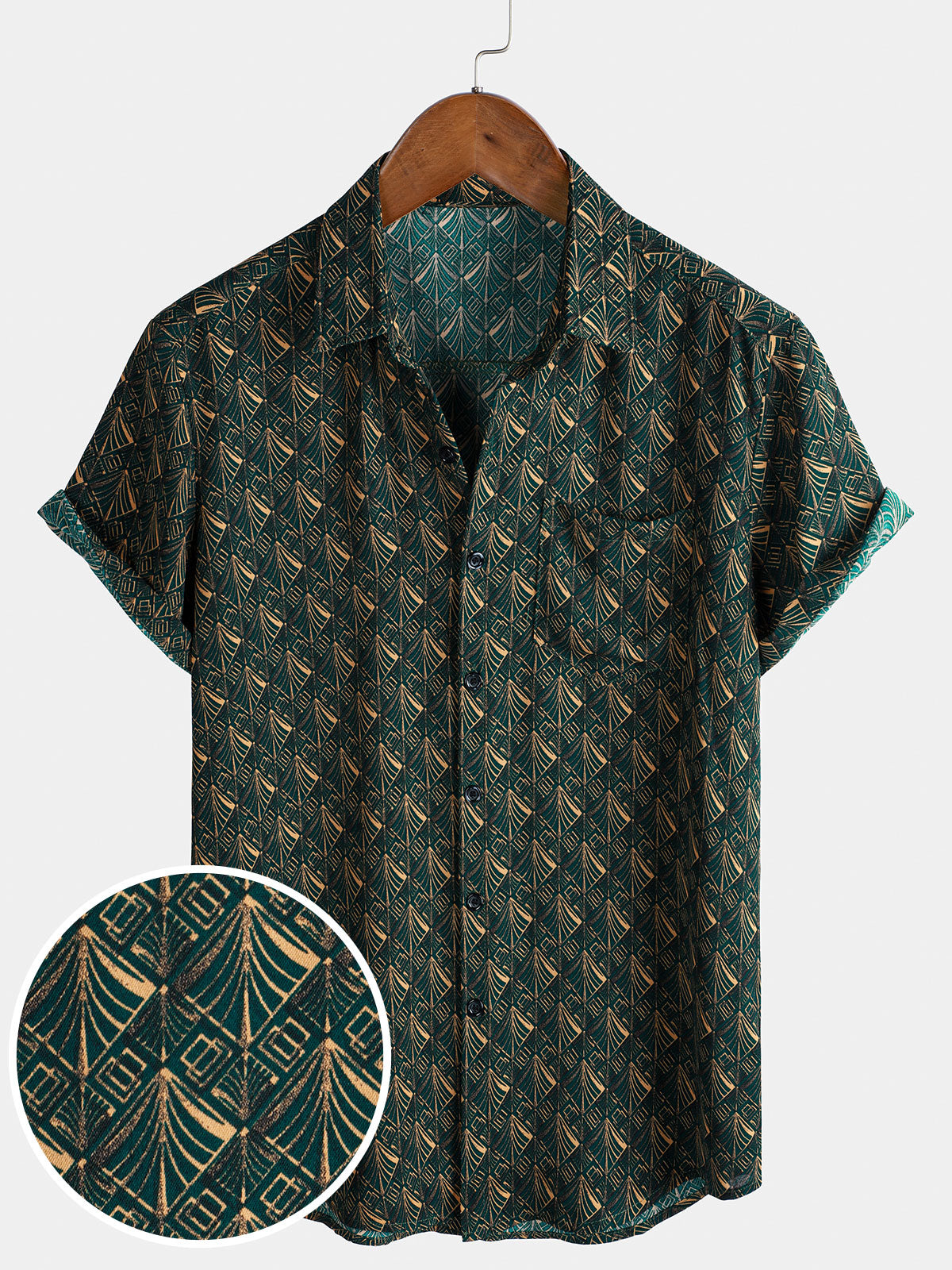 Men's Retro Geometric Print Pocket Short Sleeve Holiday Shirt