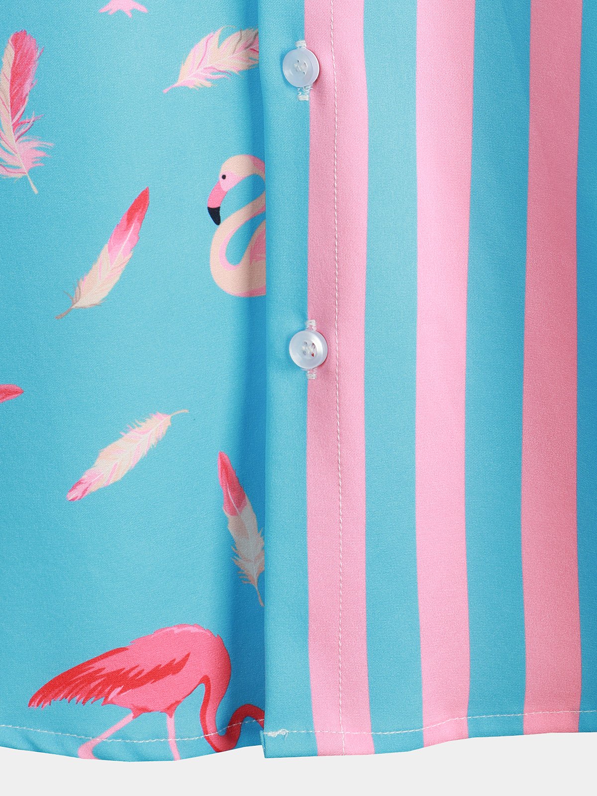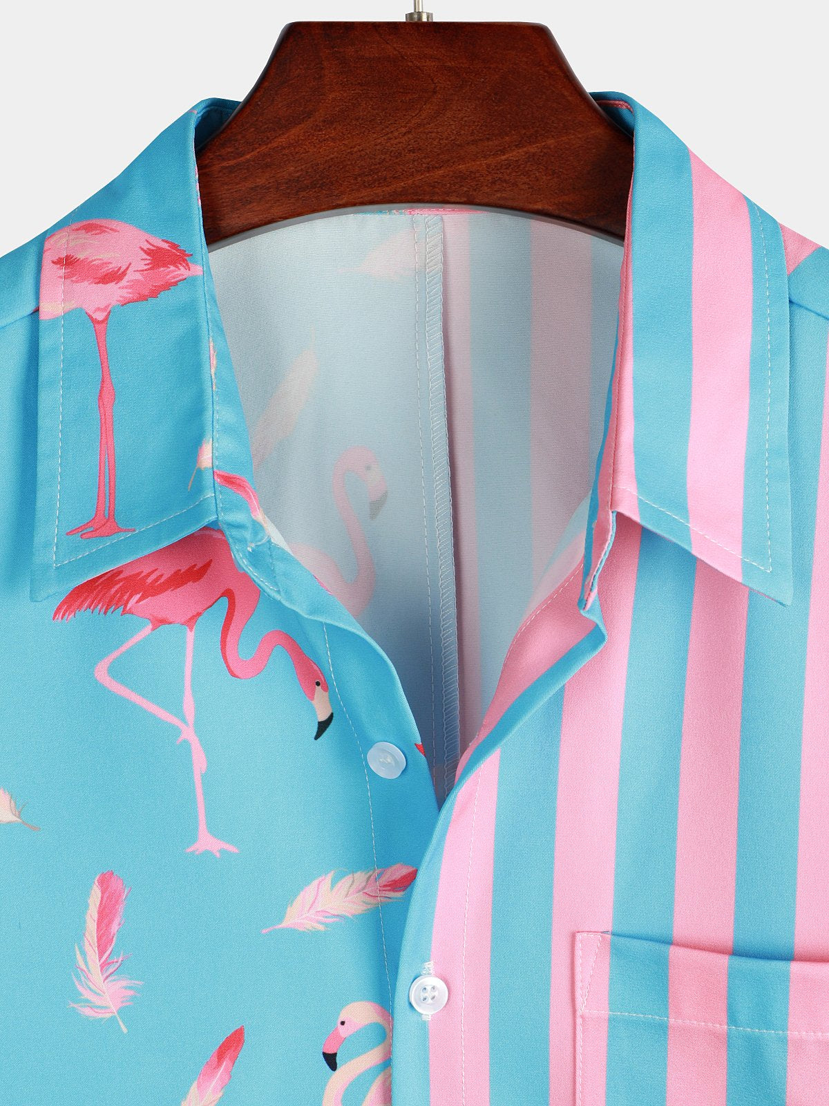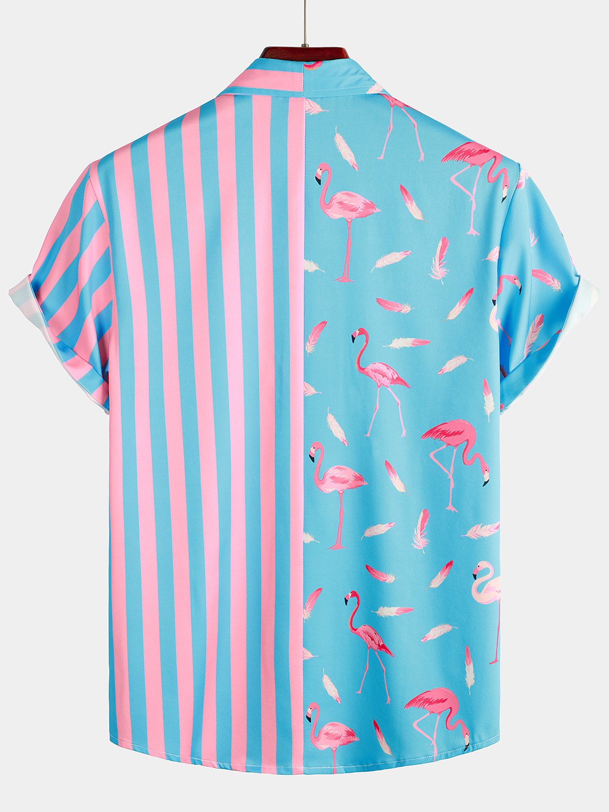 Men's Flamingo & Striped Patchwork Pocket Short Sleeve Shirt