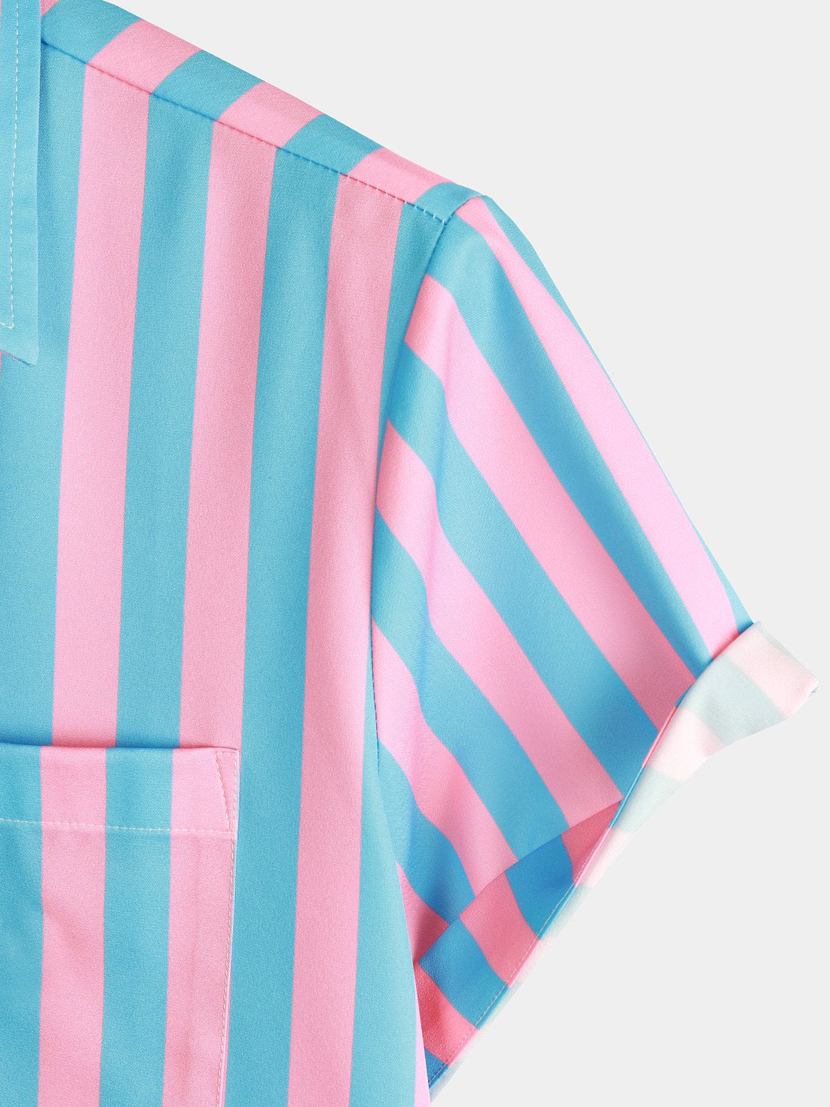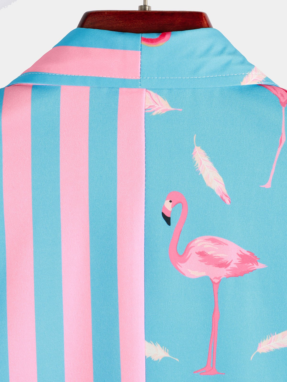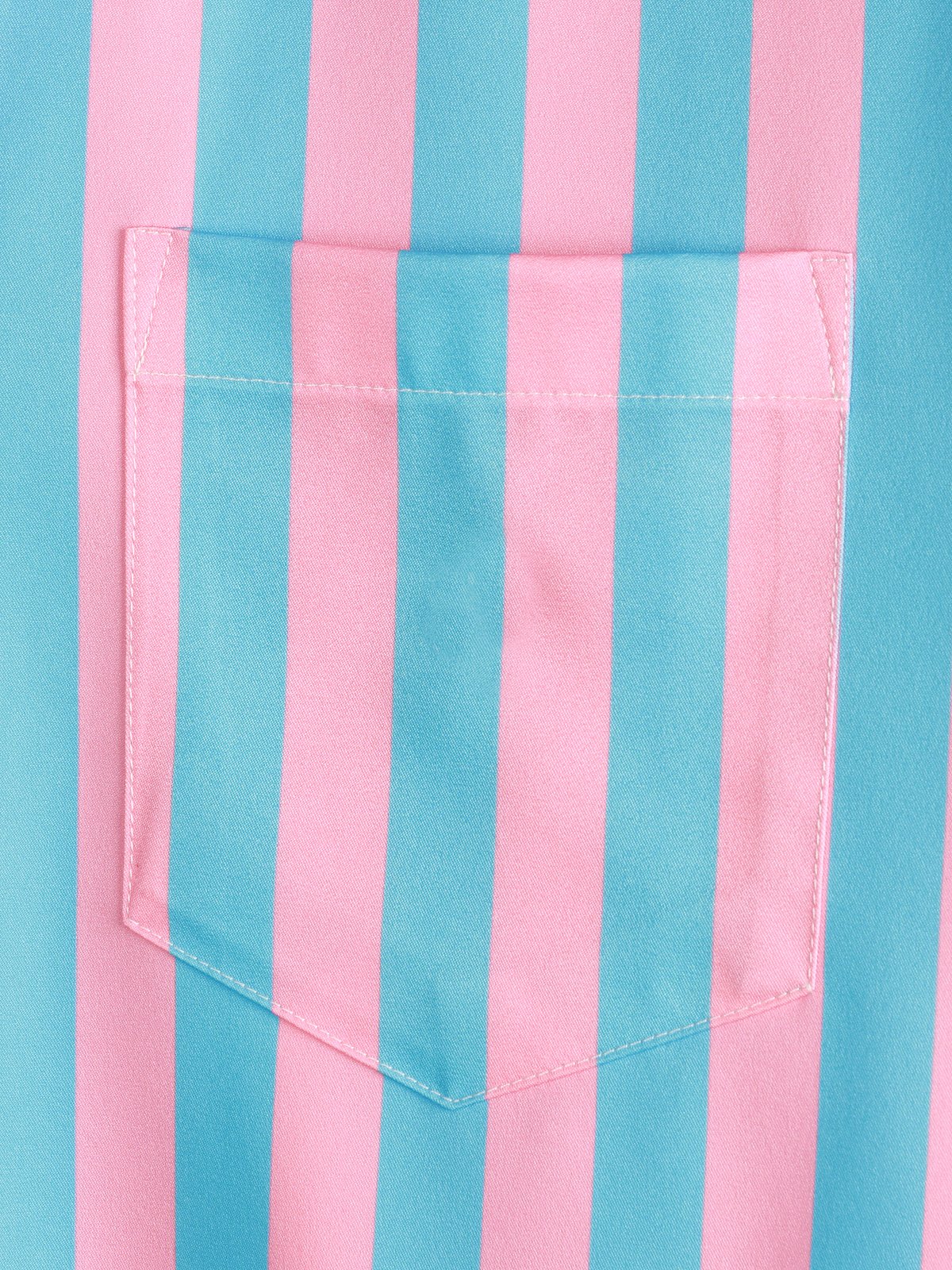 Men's Flamingo & Striped Patchwork Pocket Short Sleeve Shirt