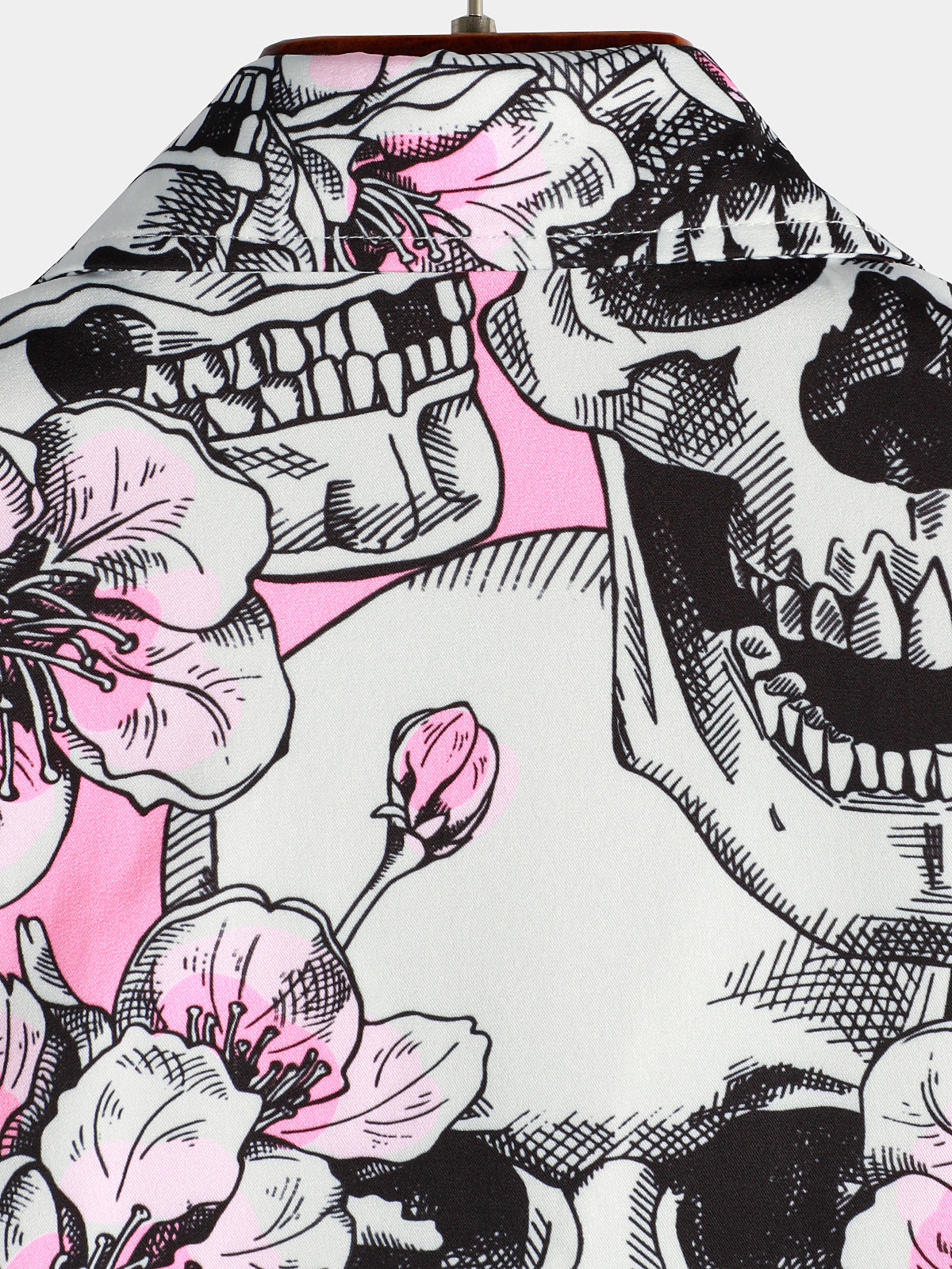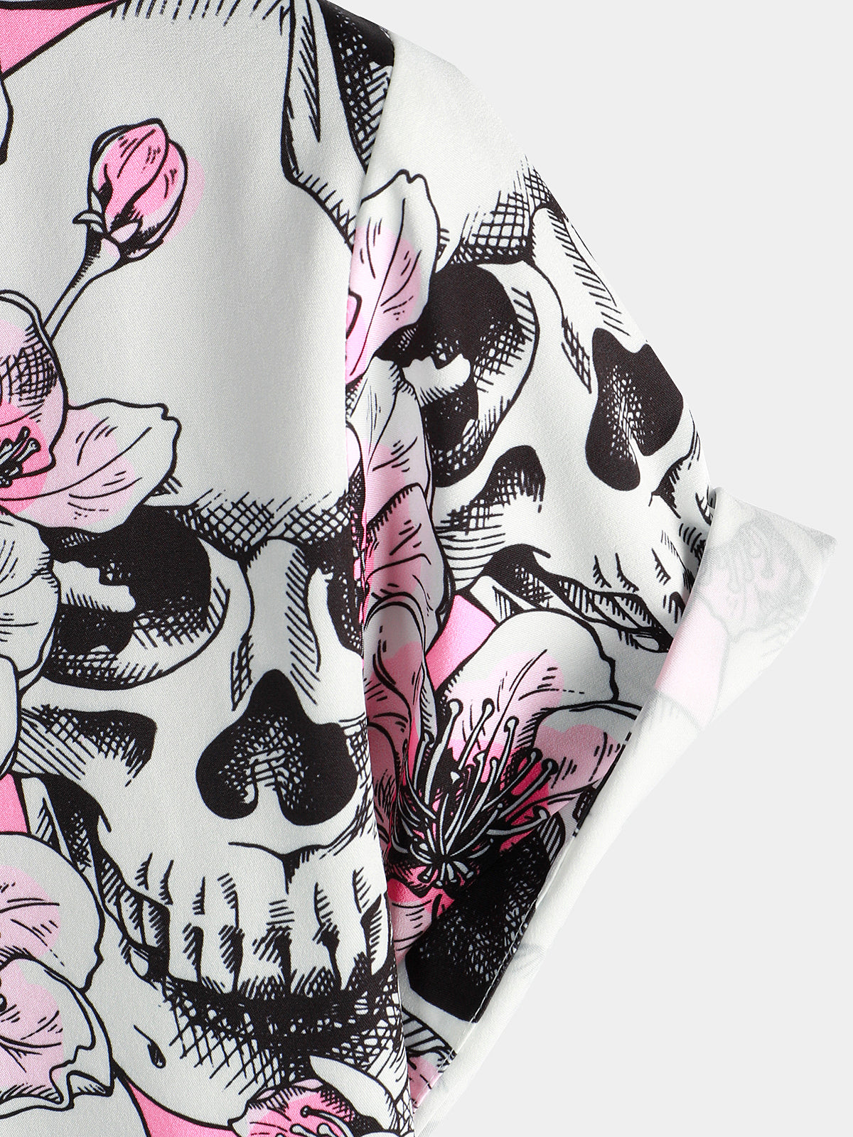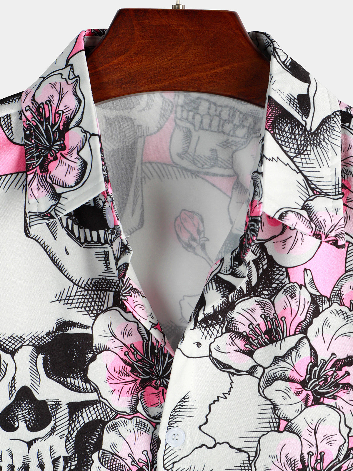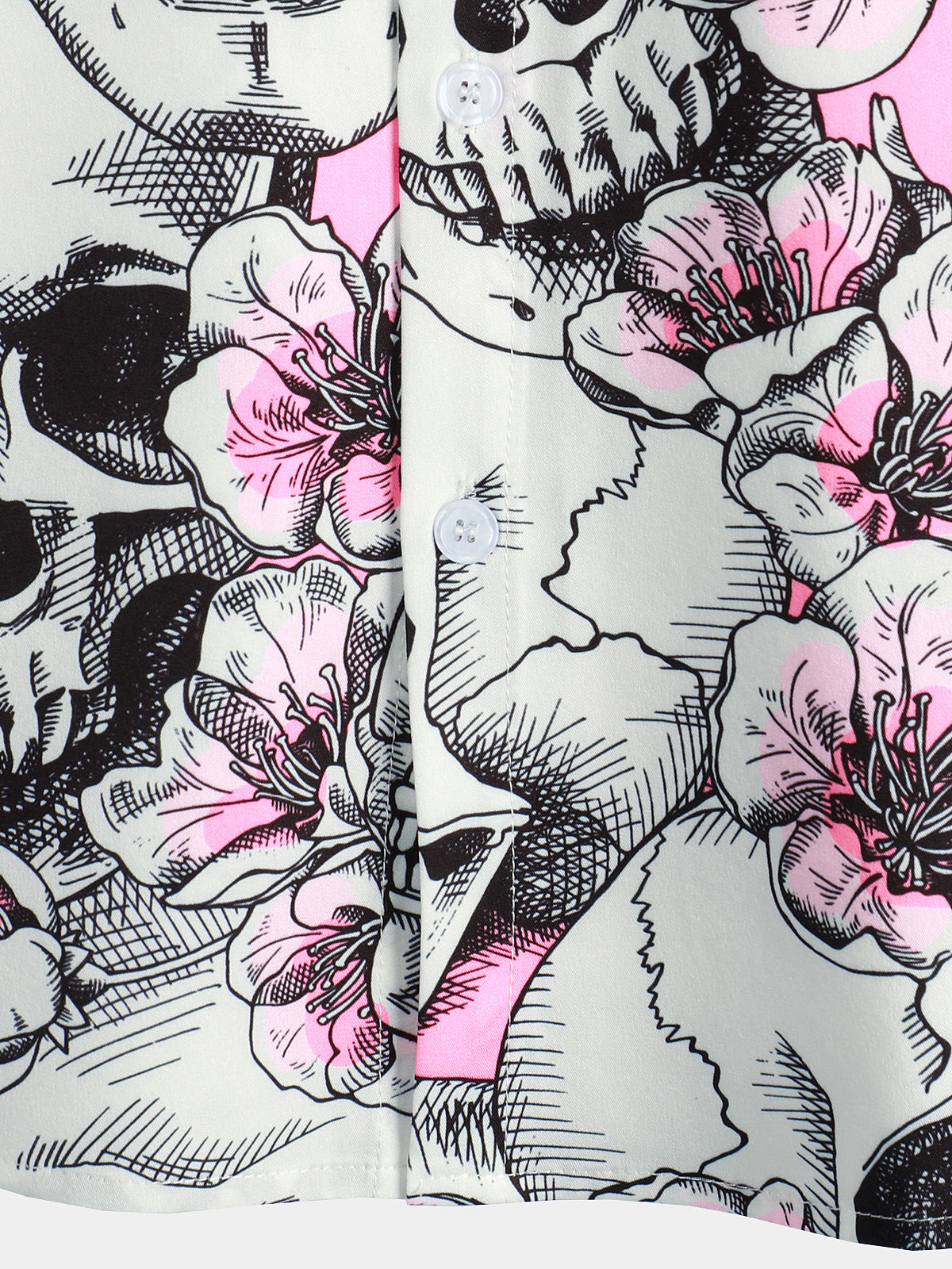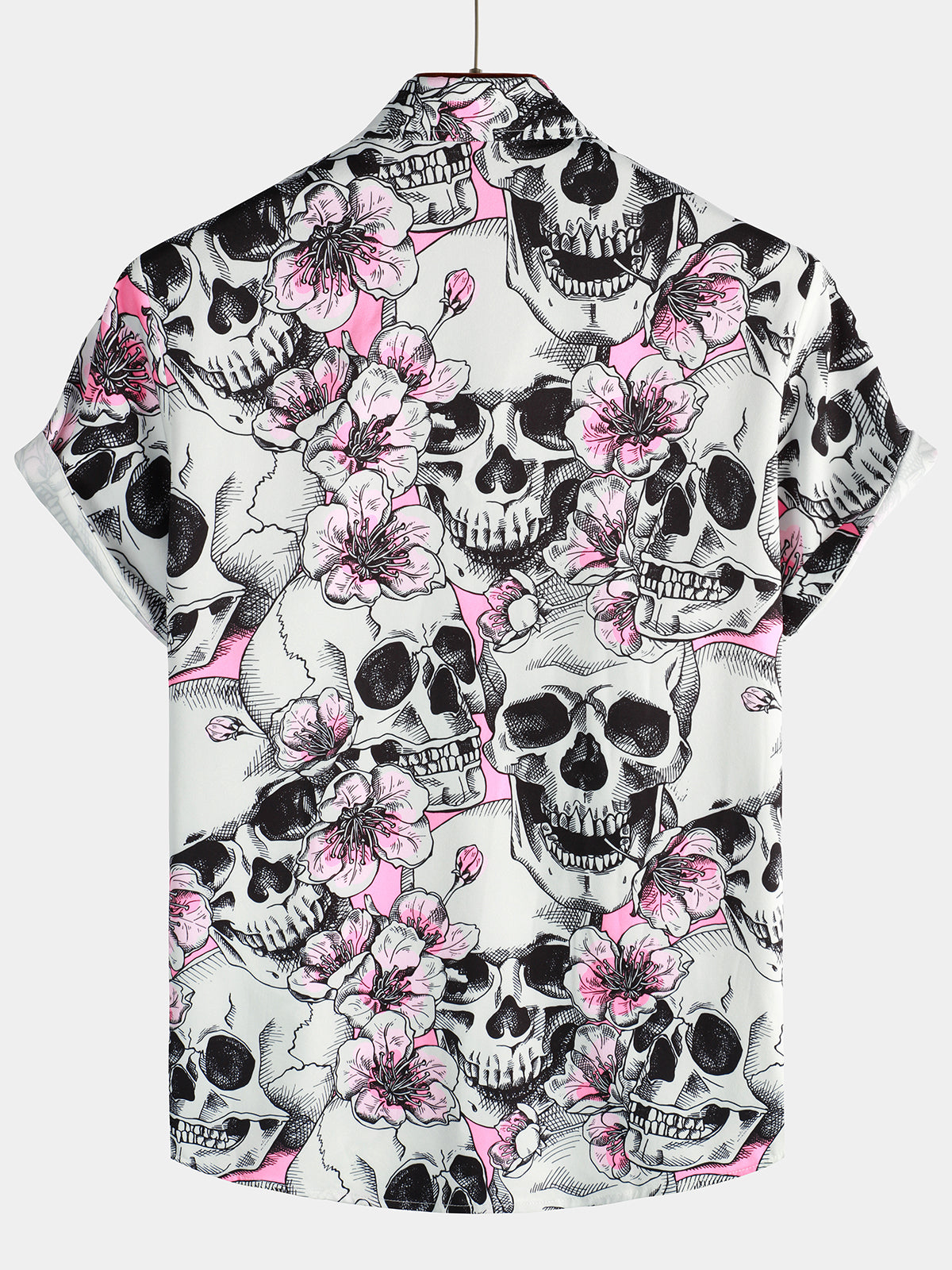 Men's Skull Pink Flowers Button Up Short Sleeve Shirts