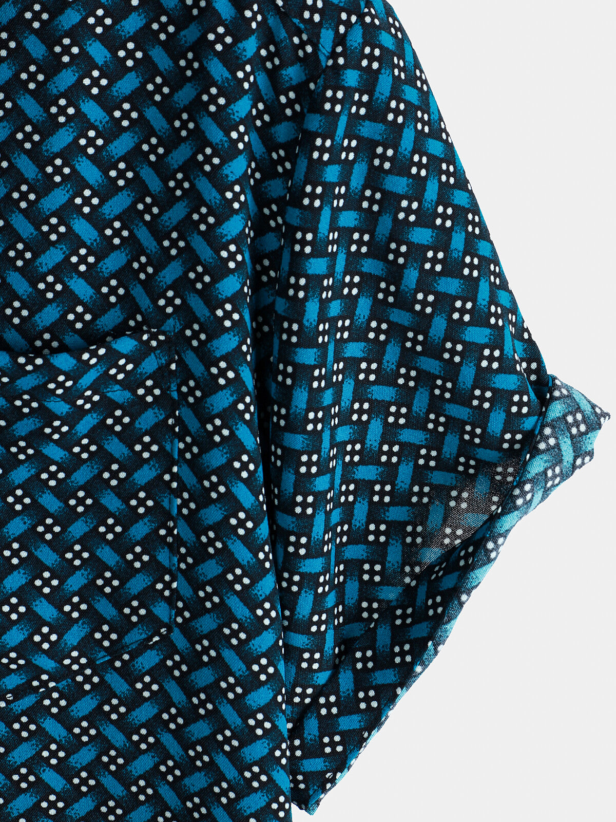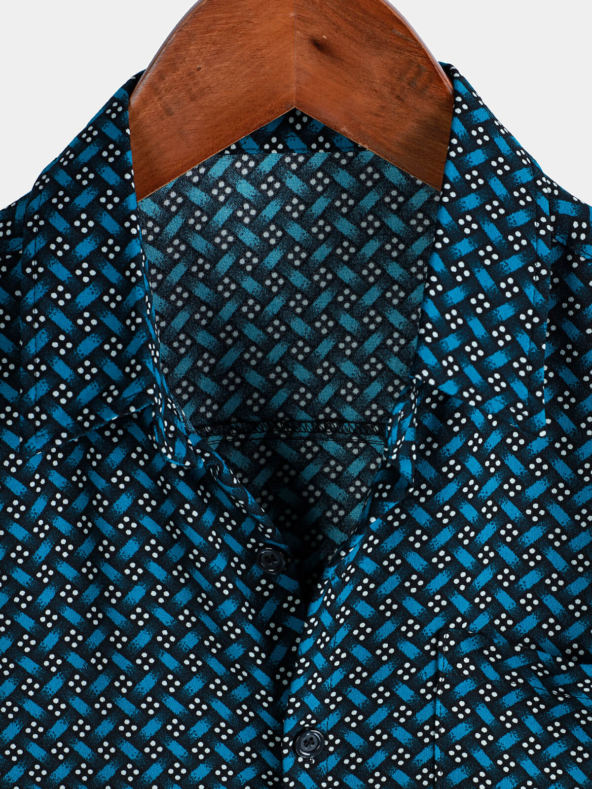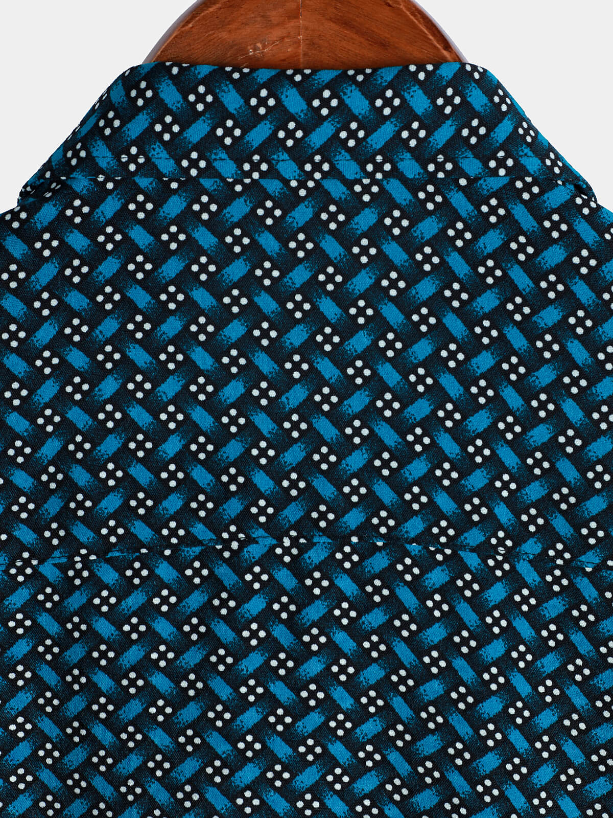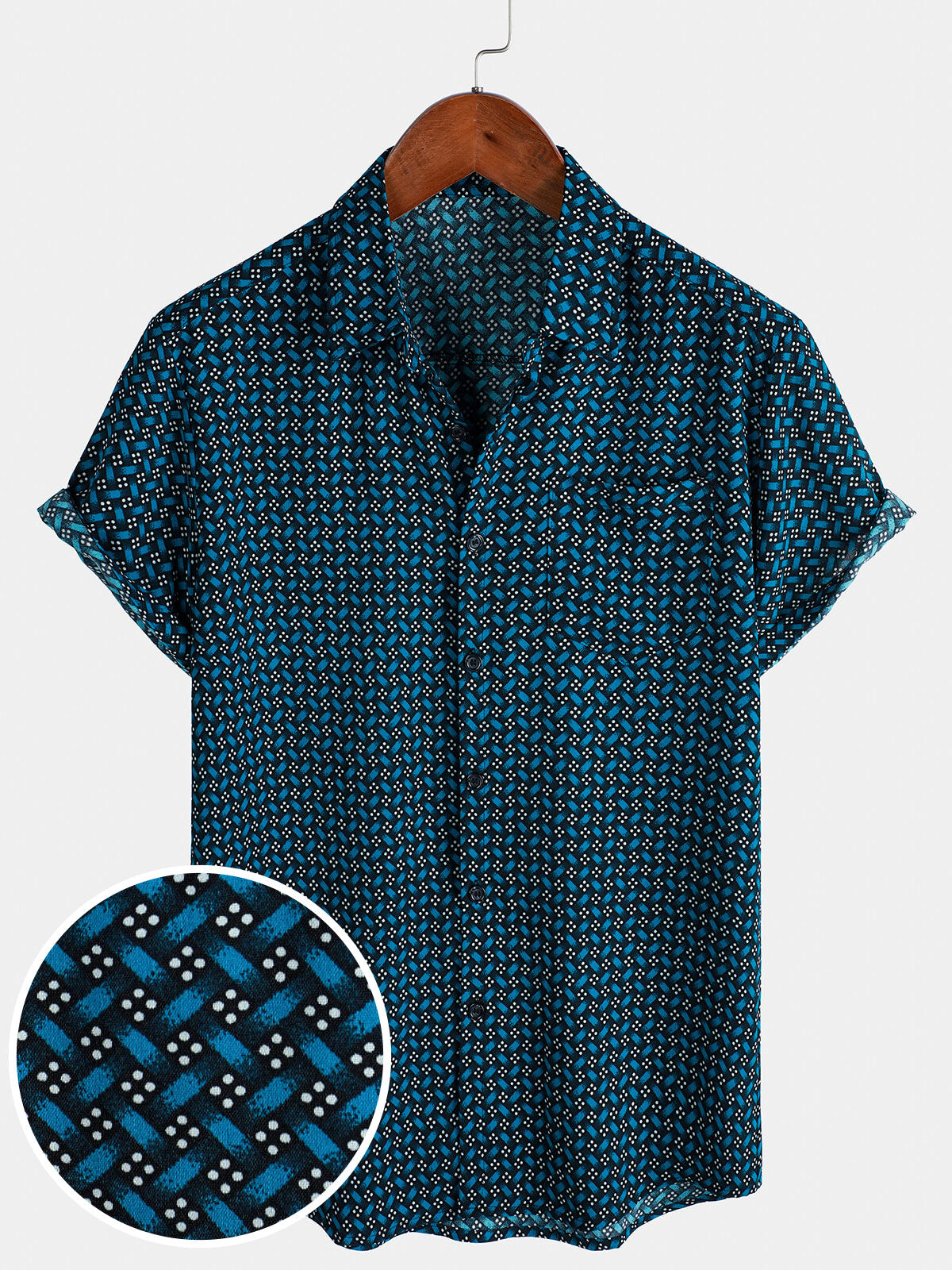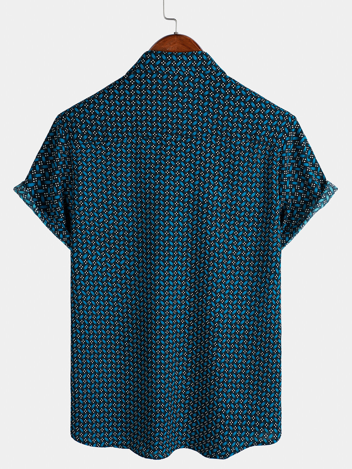 Men's Blue Casual Holiday Summer Short Sleeve Button Up Shirt