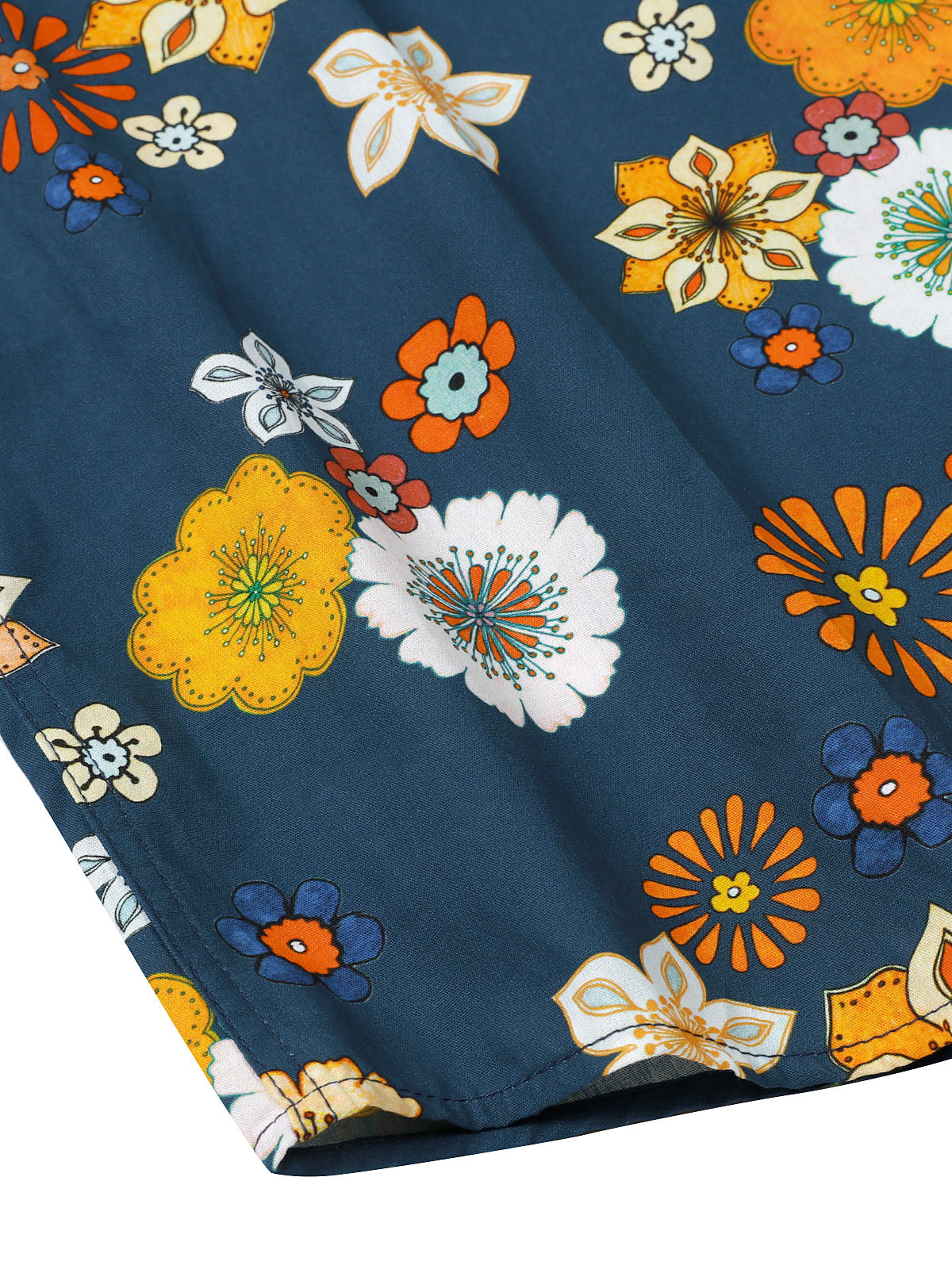 Men's Blue Floral Print Casual Long Sleeve Shirt