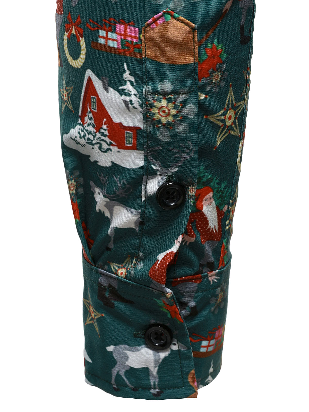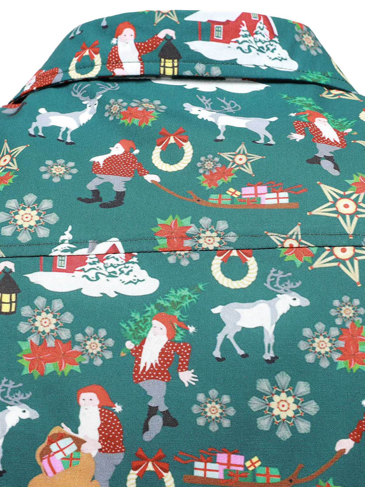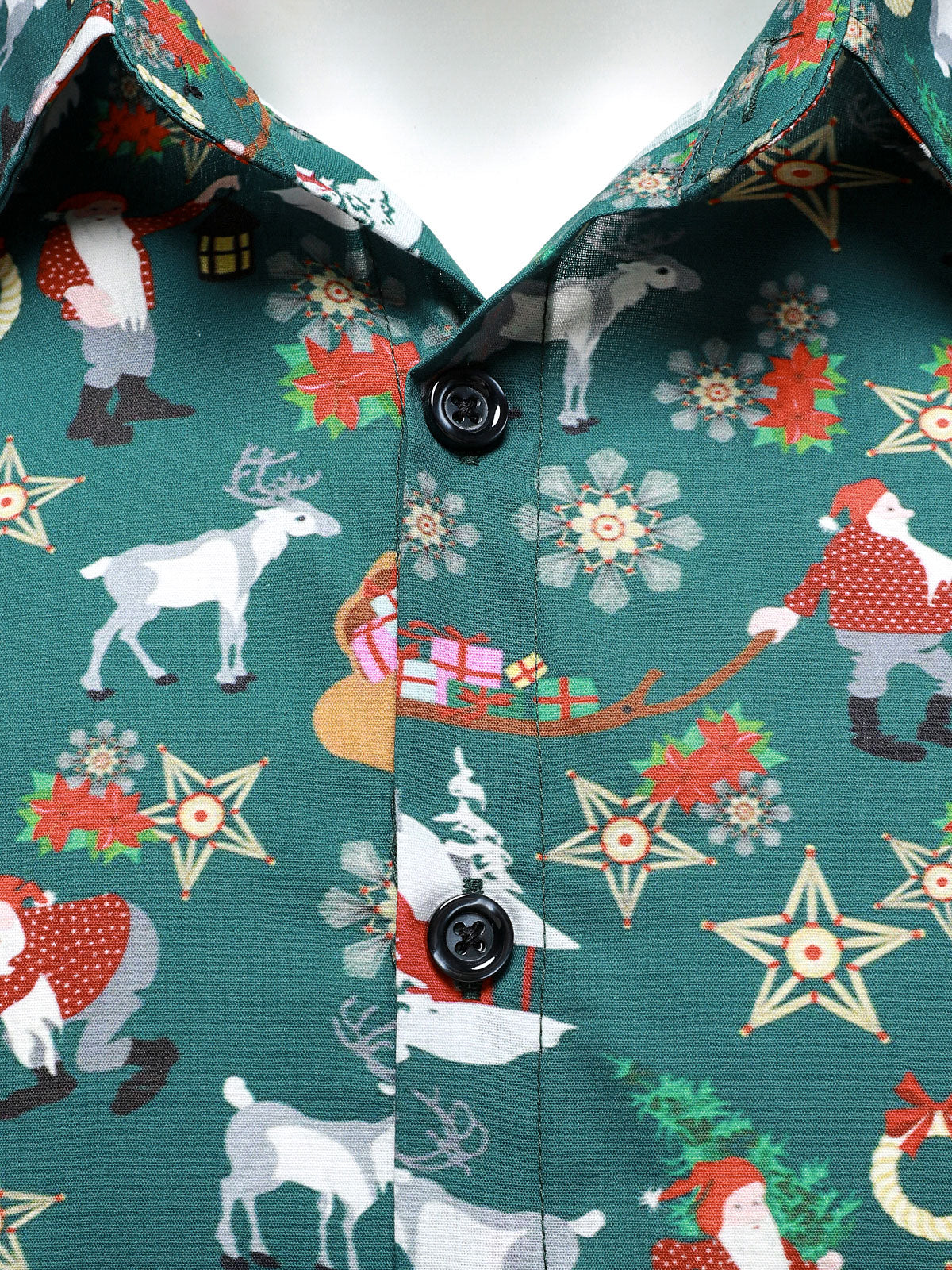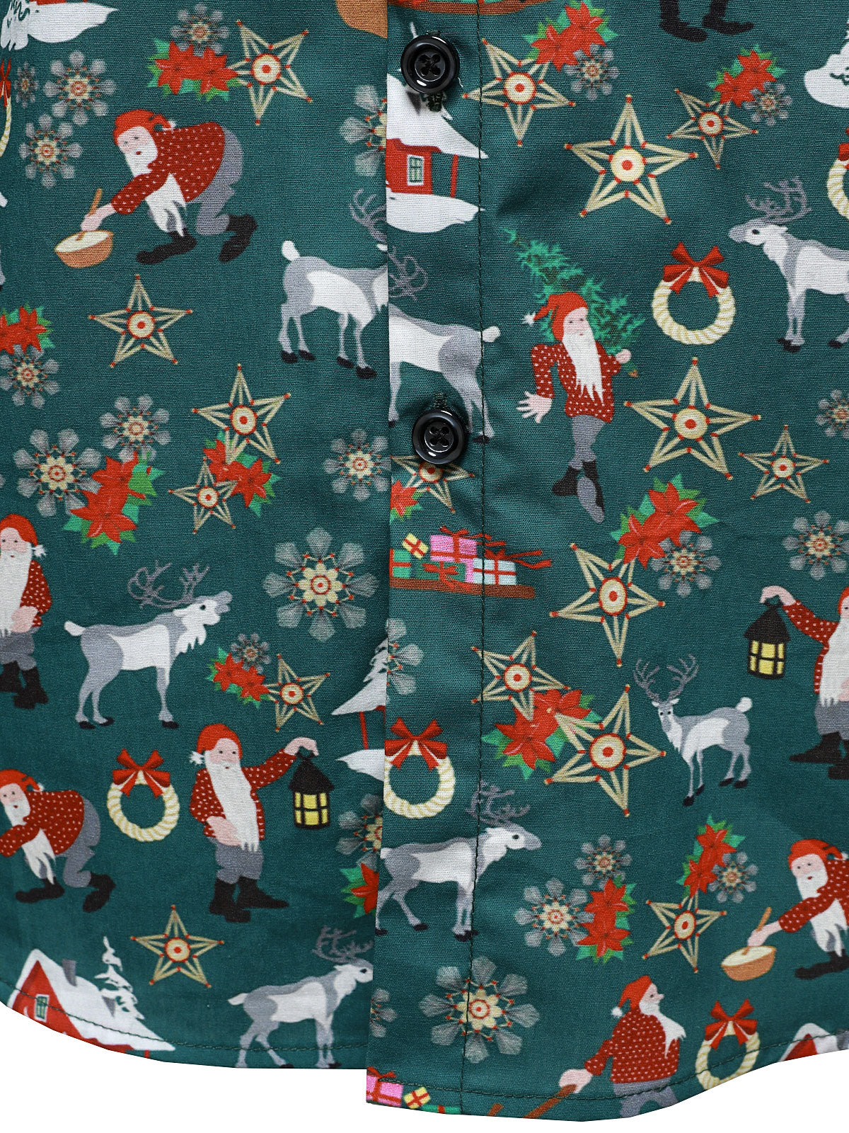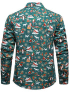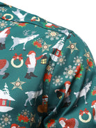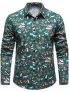 Men's Christmas Festive Santa & Reindeer Holiday Graphic Print Long Sleeve Button Down Shirt