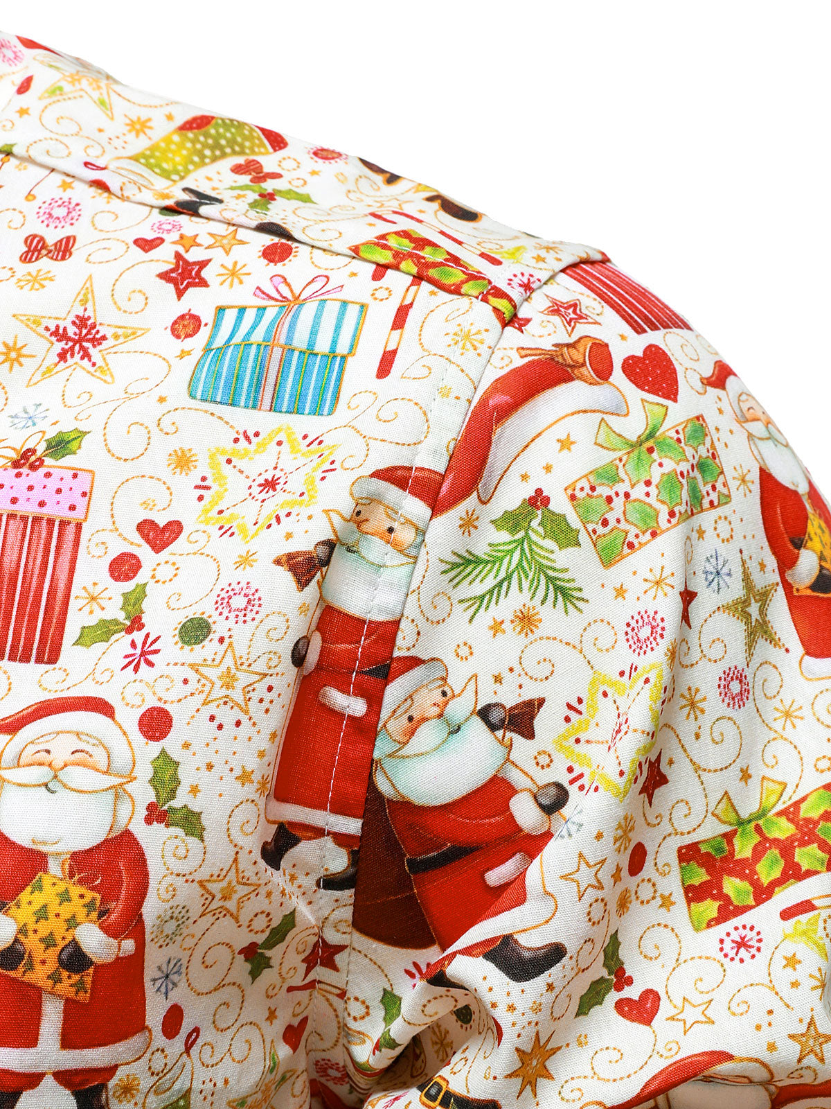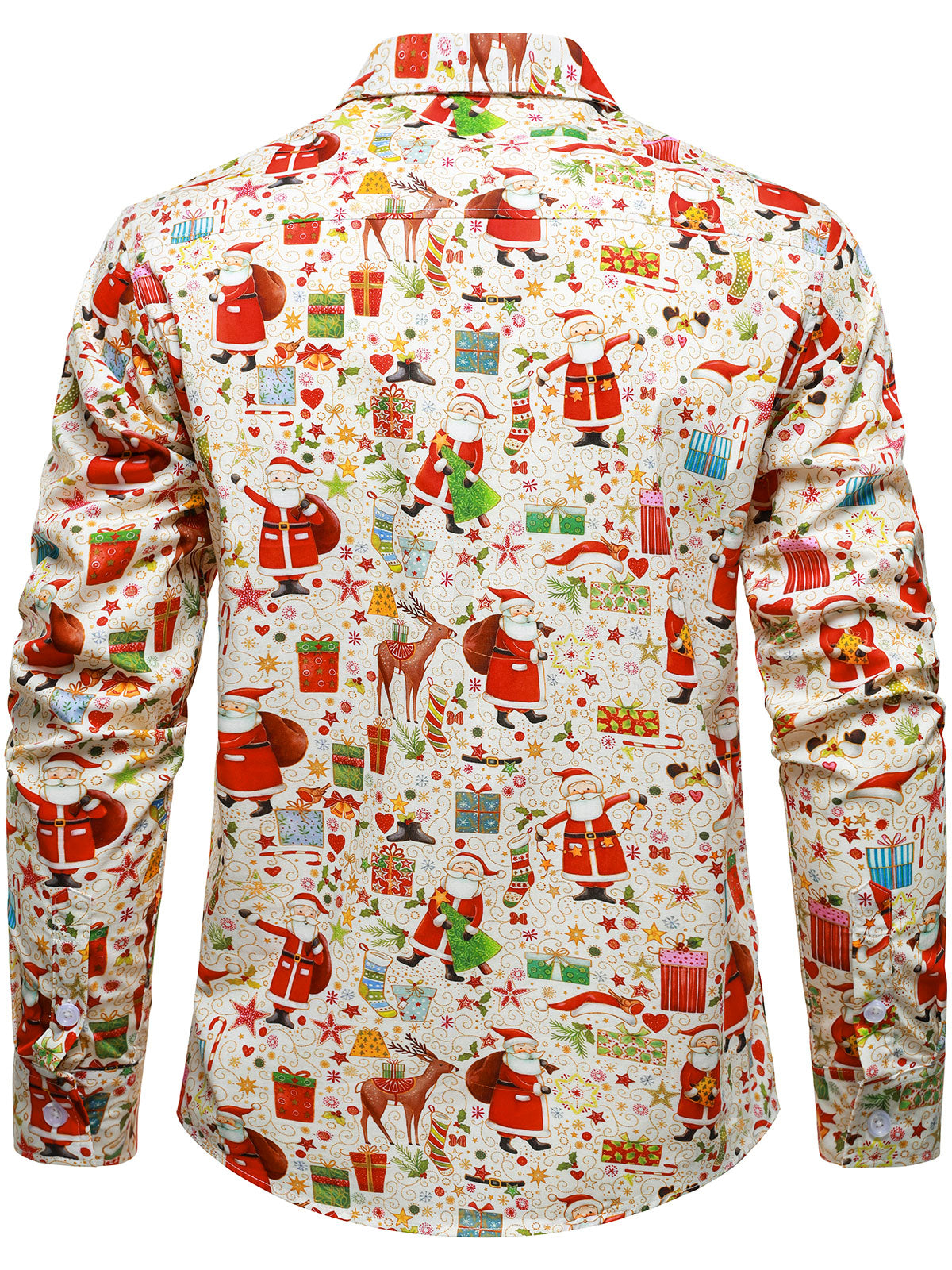 Men's Christmas Themed Funny Holiday Festive Print Beige Long Sleeve Button Down Shirt