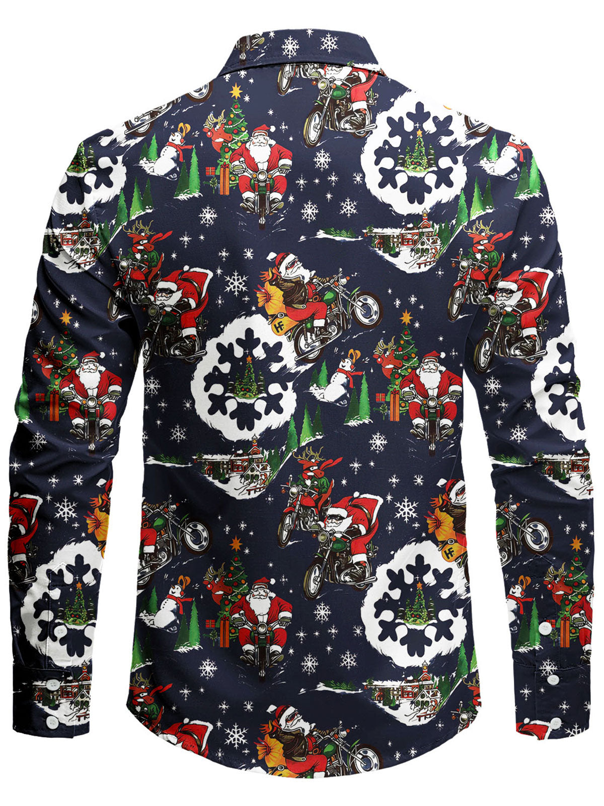 Men's Christmas Themed Funny Santa Claus Motorcycle Print Long Sleeve Shirt