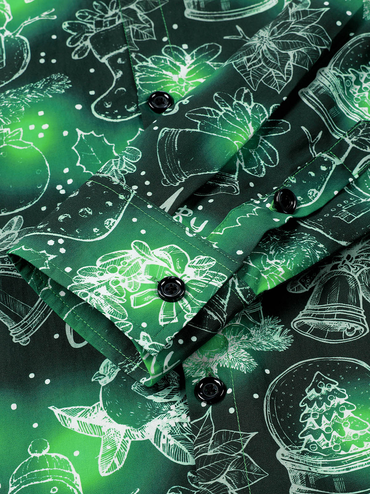 Men's Cotton Green Christmas Long Sleeve Shirt