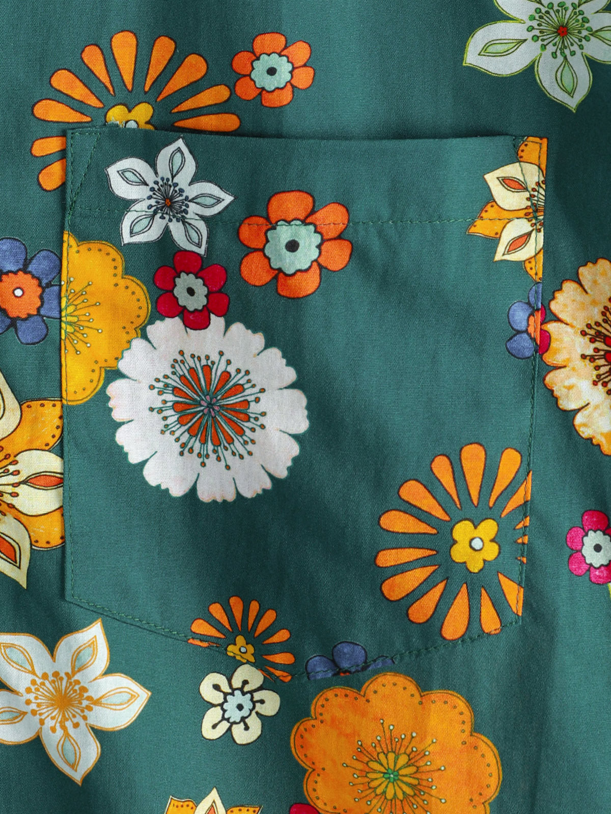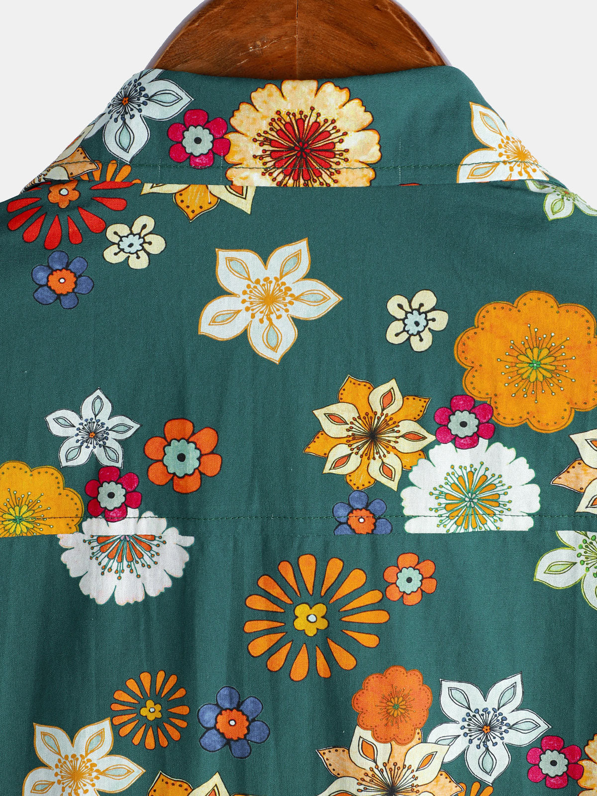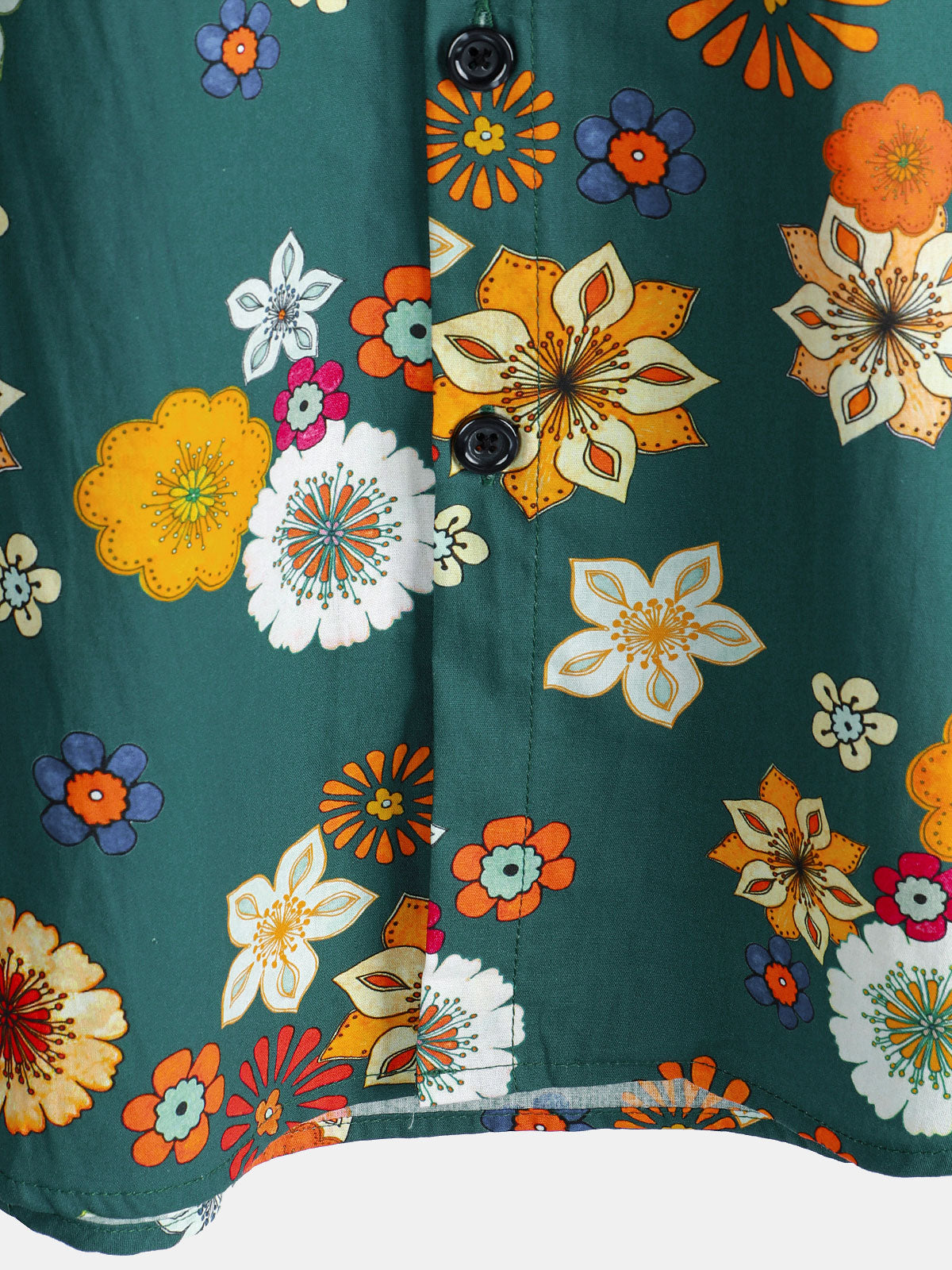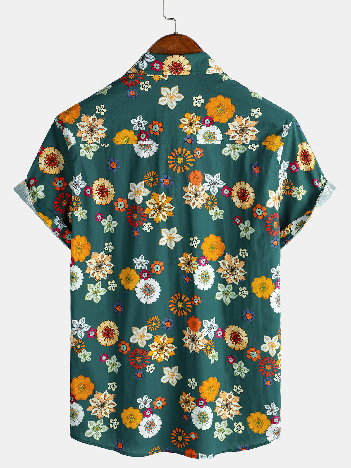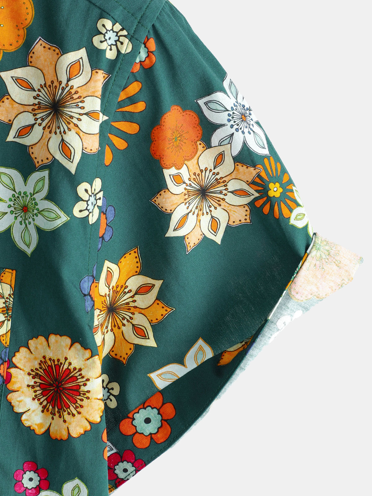 Men's Floral Print Green Hawaiian Aloha Short Sleeve Shirt