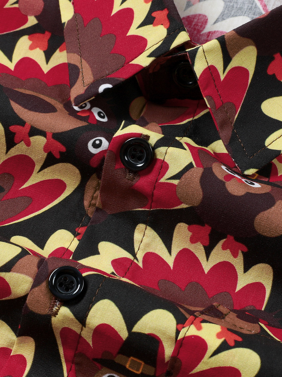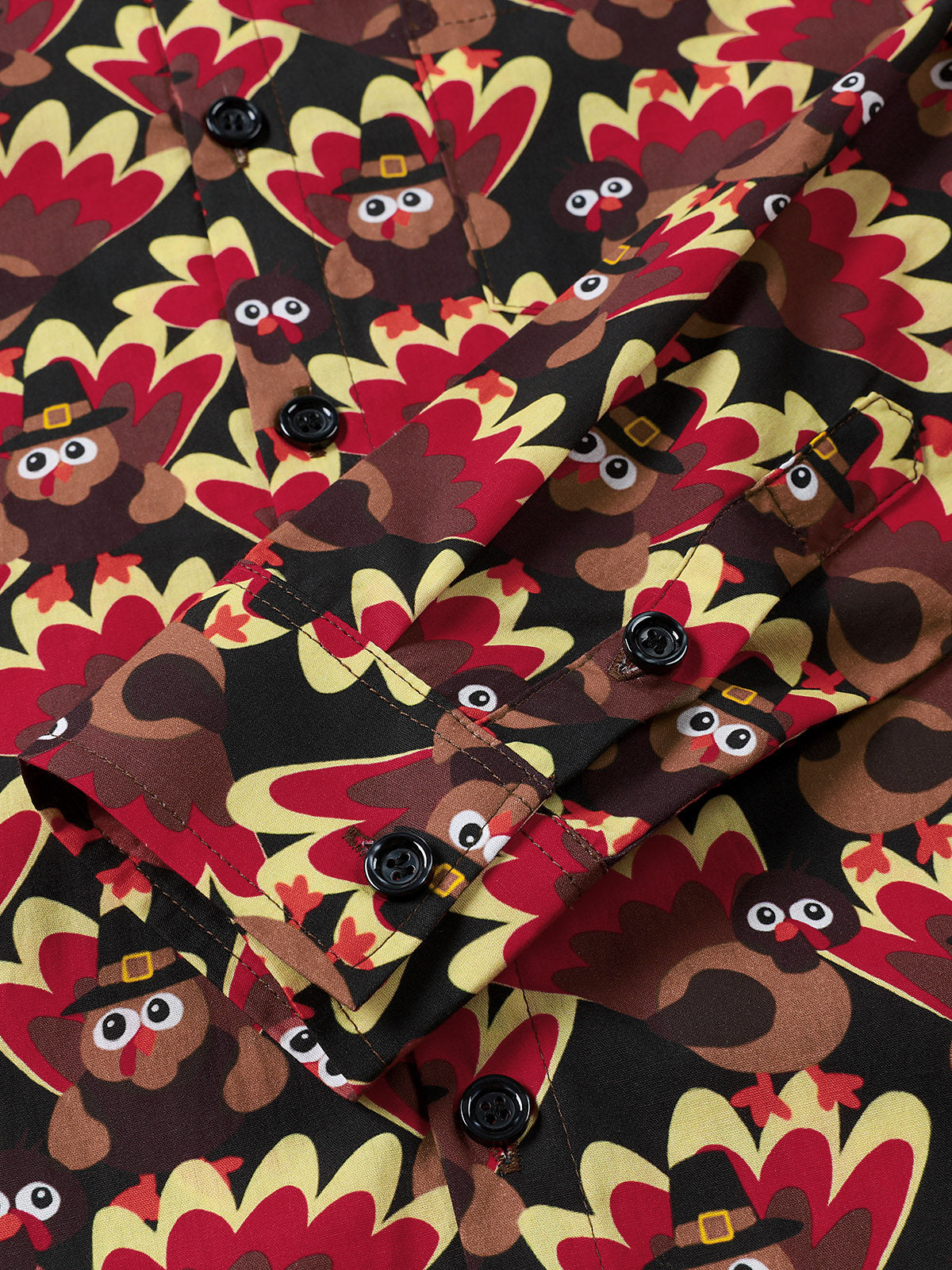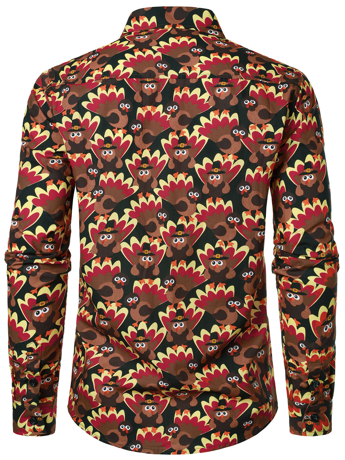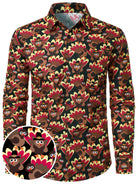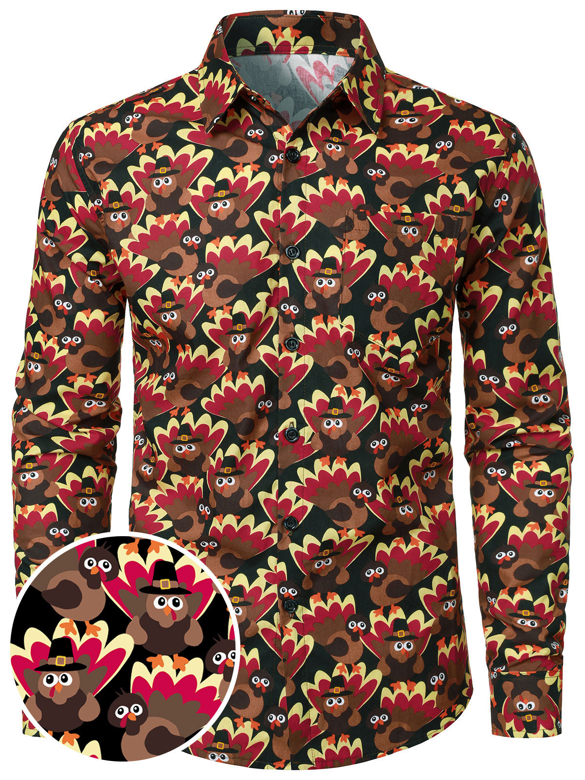 Mens Funny Cotton Thanksgiving Holiday Turkey Long Sleeve Shirt
