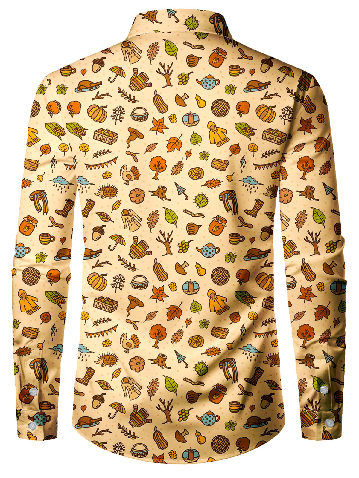 Men's Funny Thanksgiving Print Holiday Long Sleeve Shirt