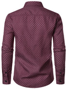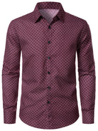 Men's Geometric Print Red Long Sleeve Dress Shirt