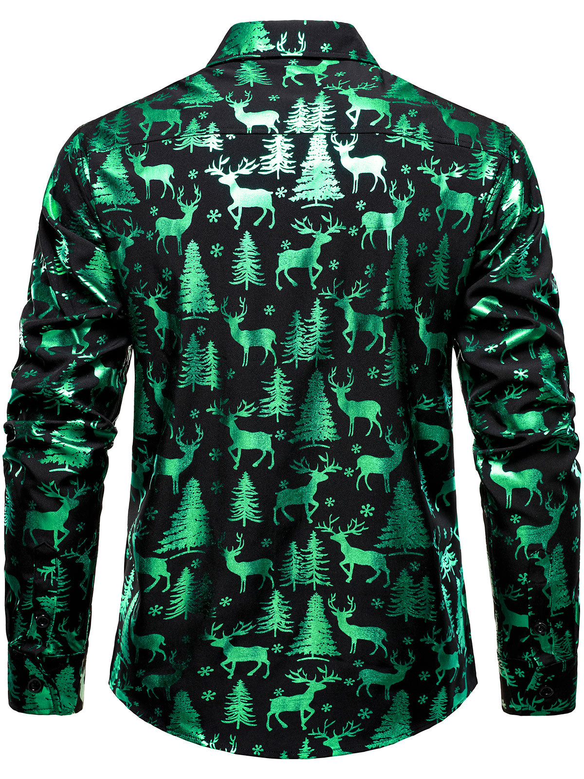 Men's Christmas Reindeer Print Cotton Holiday Long Sleeve Shirt
