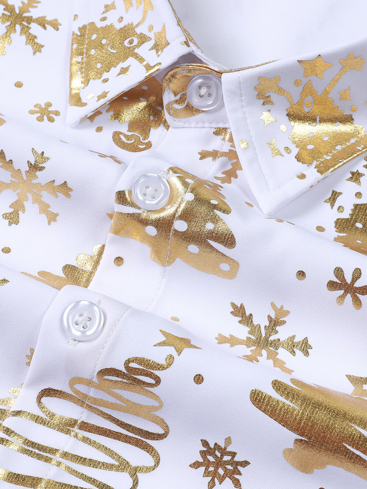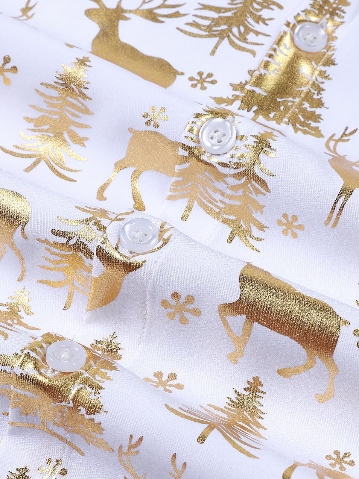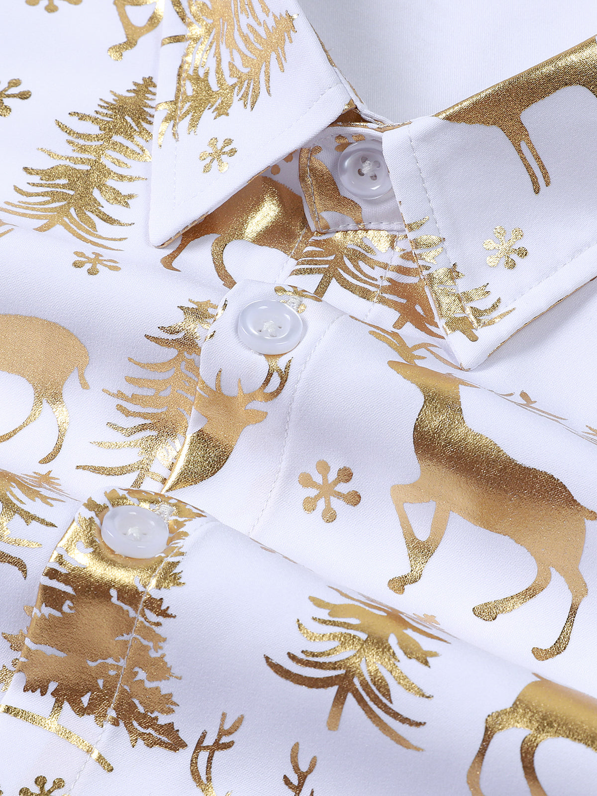 Men's Golden Christmas Reindeer Festive Print White Long Sleeve Shirt