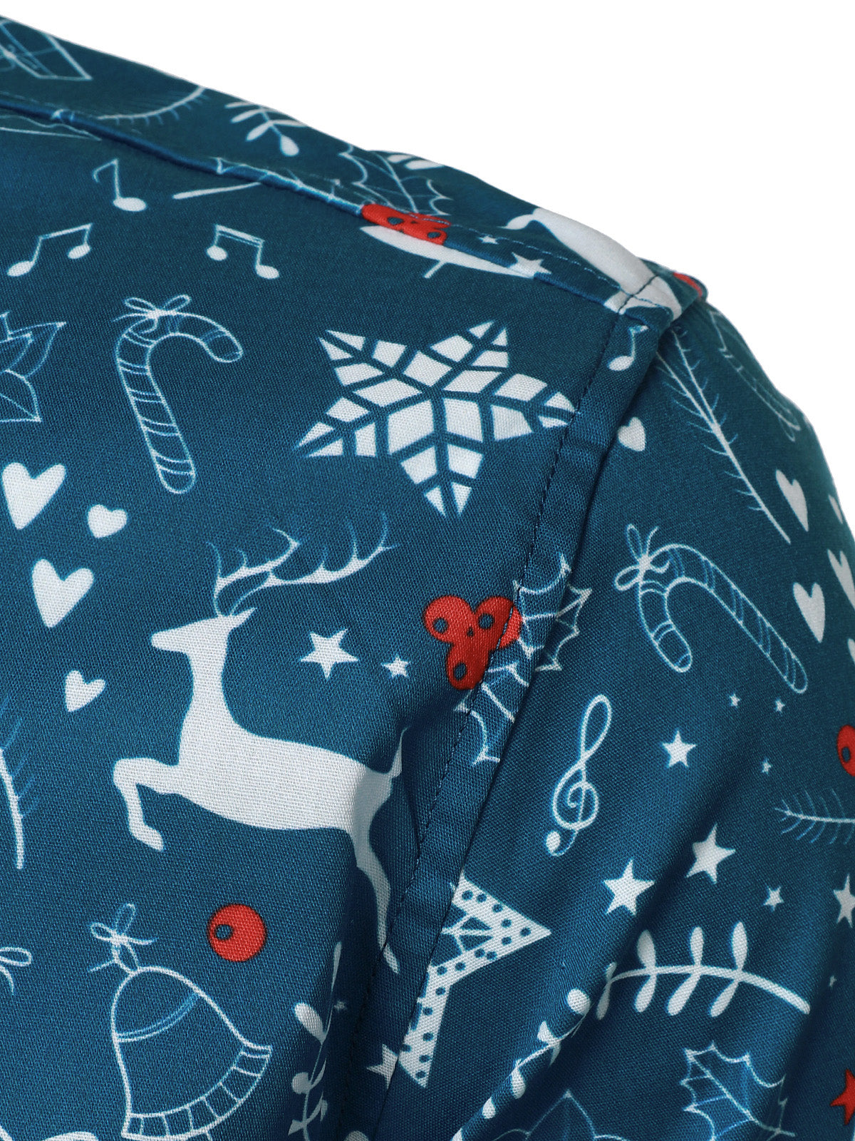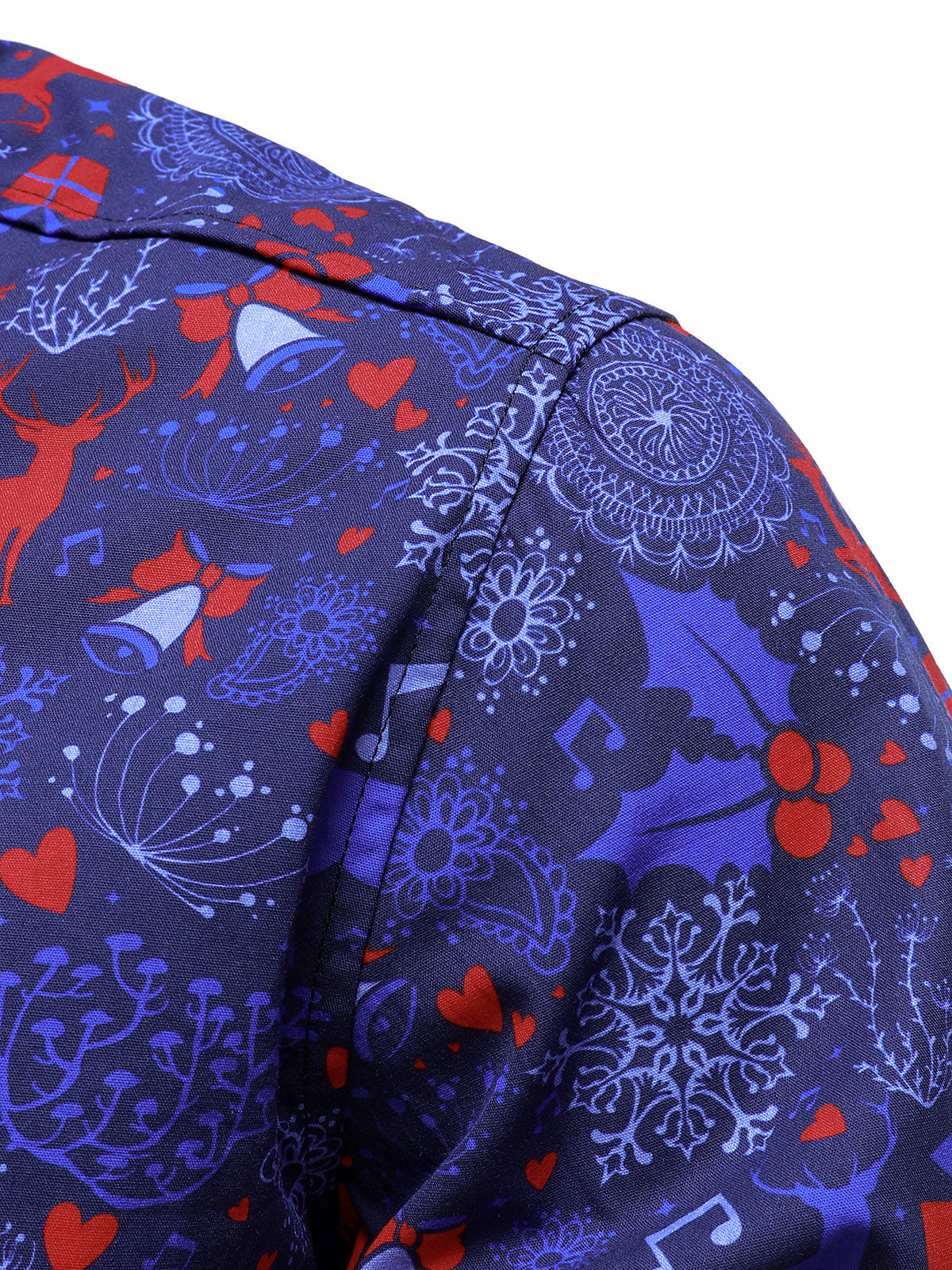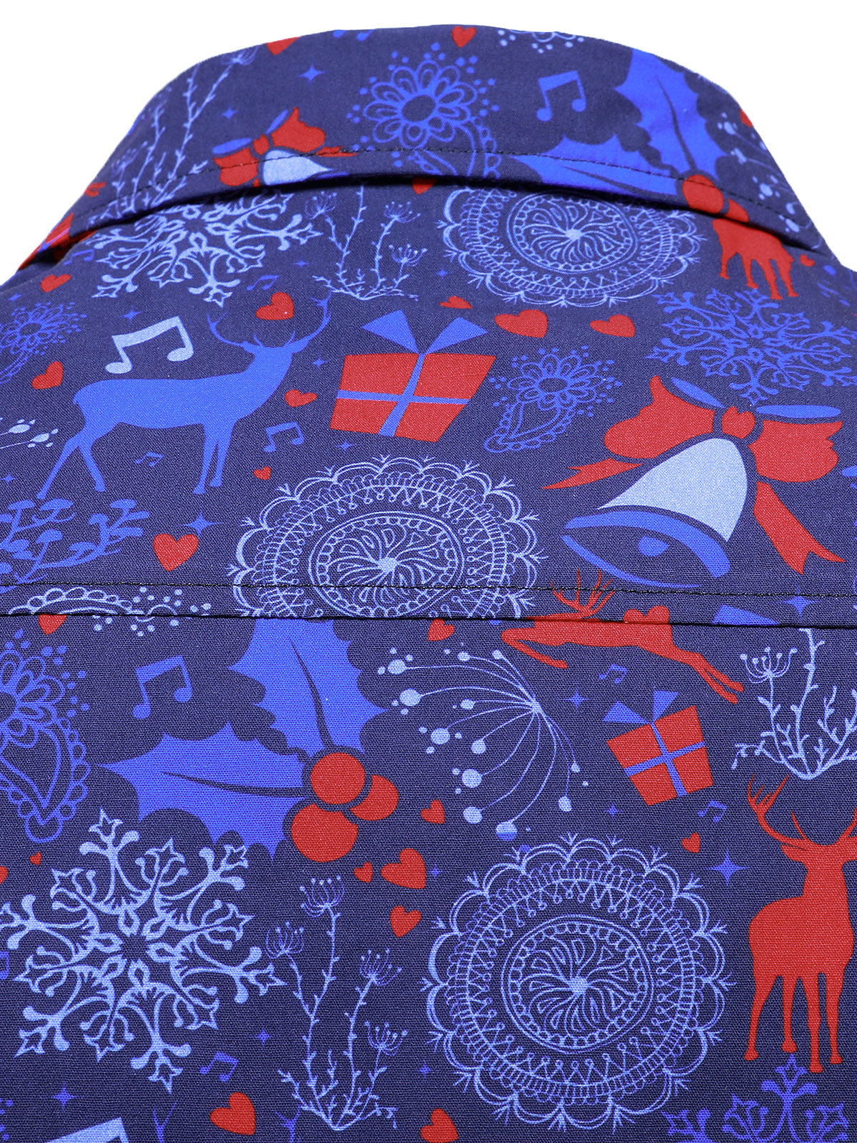 Men's Christmas Cotton Blue Long Sleeve Shirt