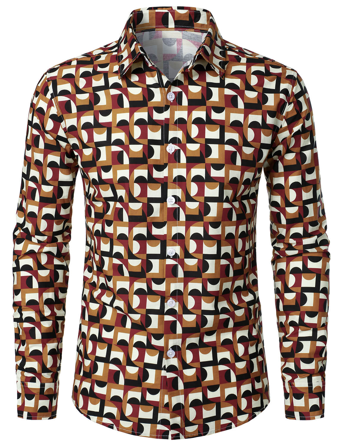 Men's Abstract Geometric Cotton Button Up Casual Long Sleeve Shirt