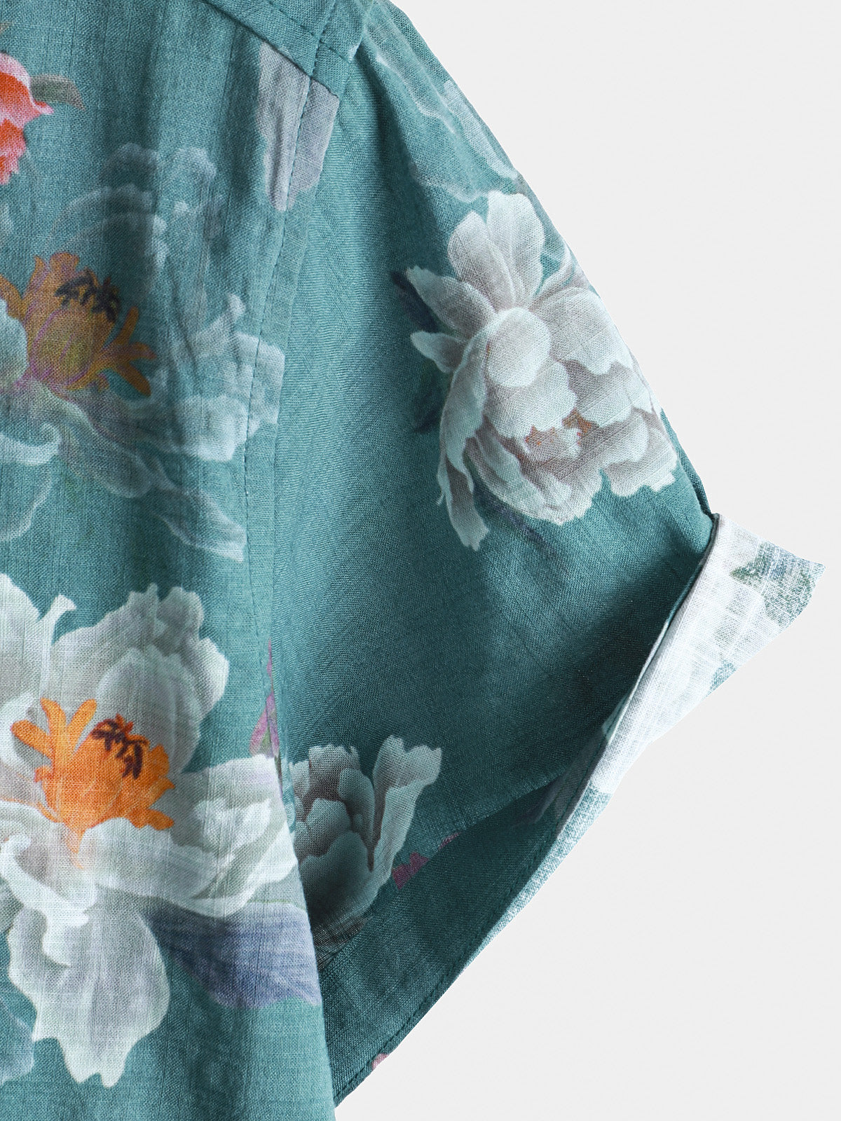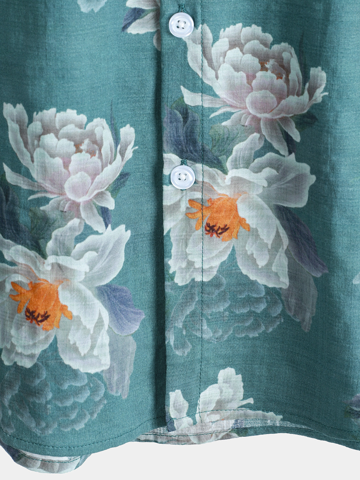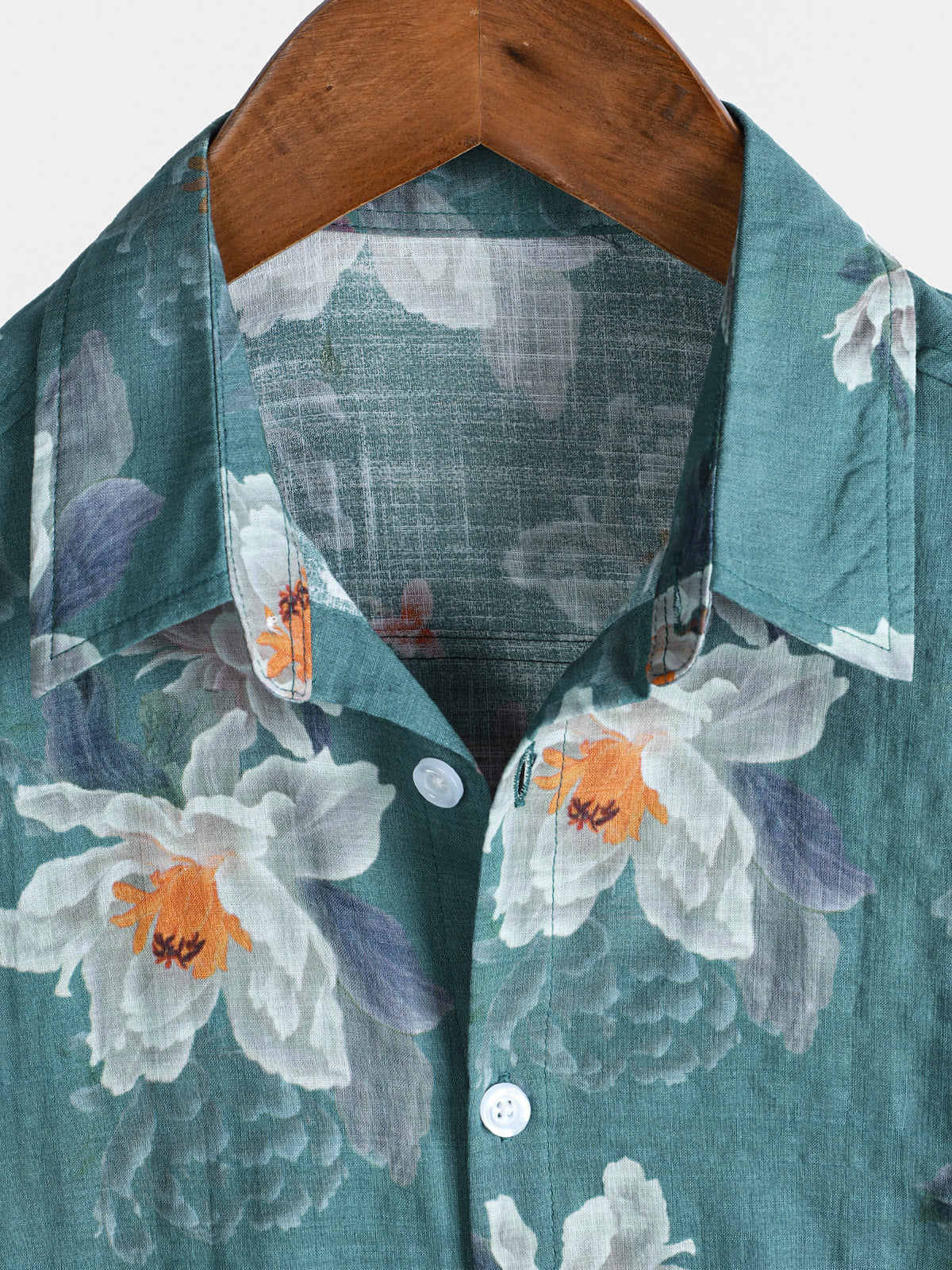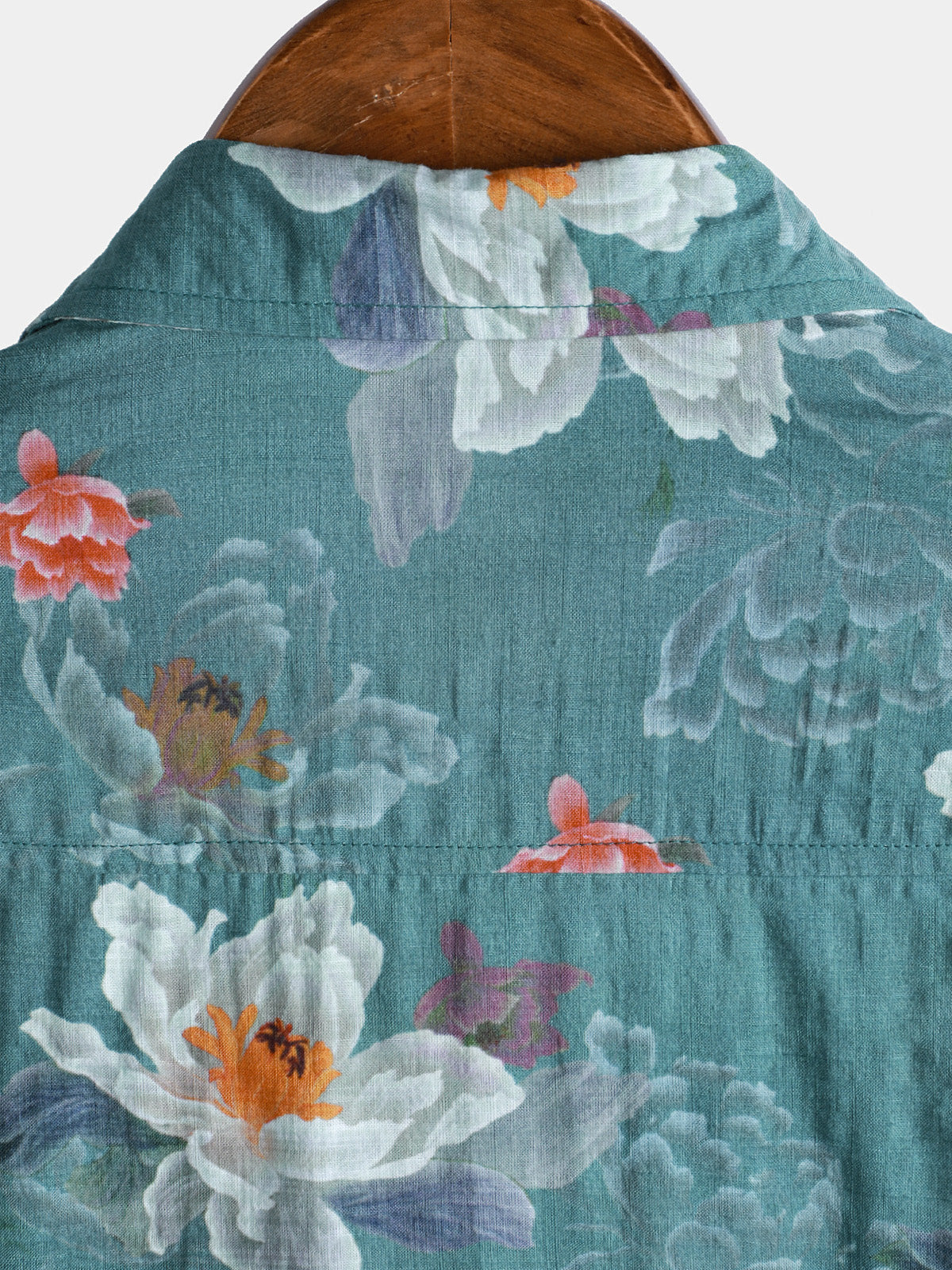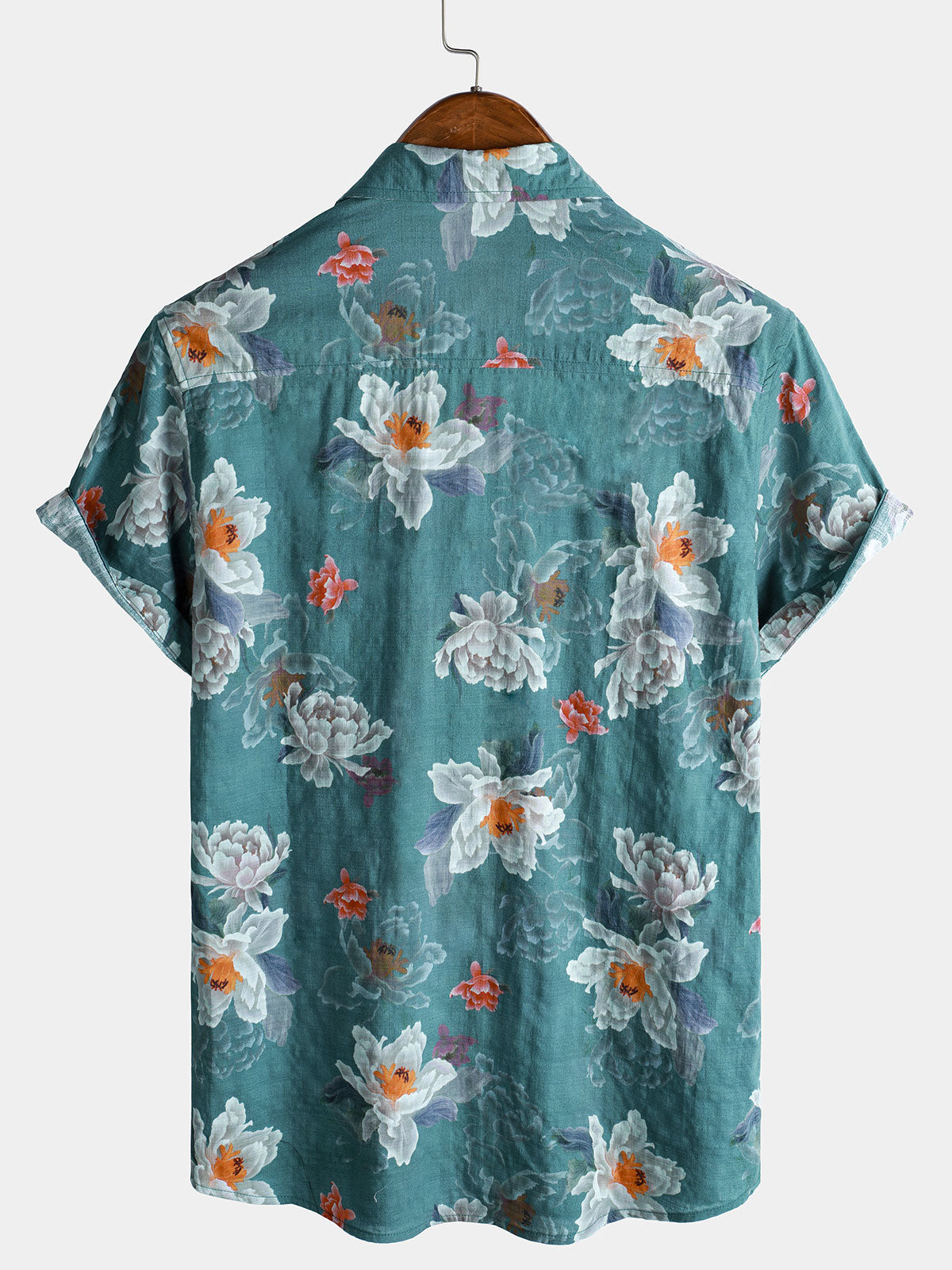Men's Blue Floral Print Summer Short Sleeve Shirt