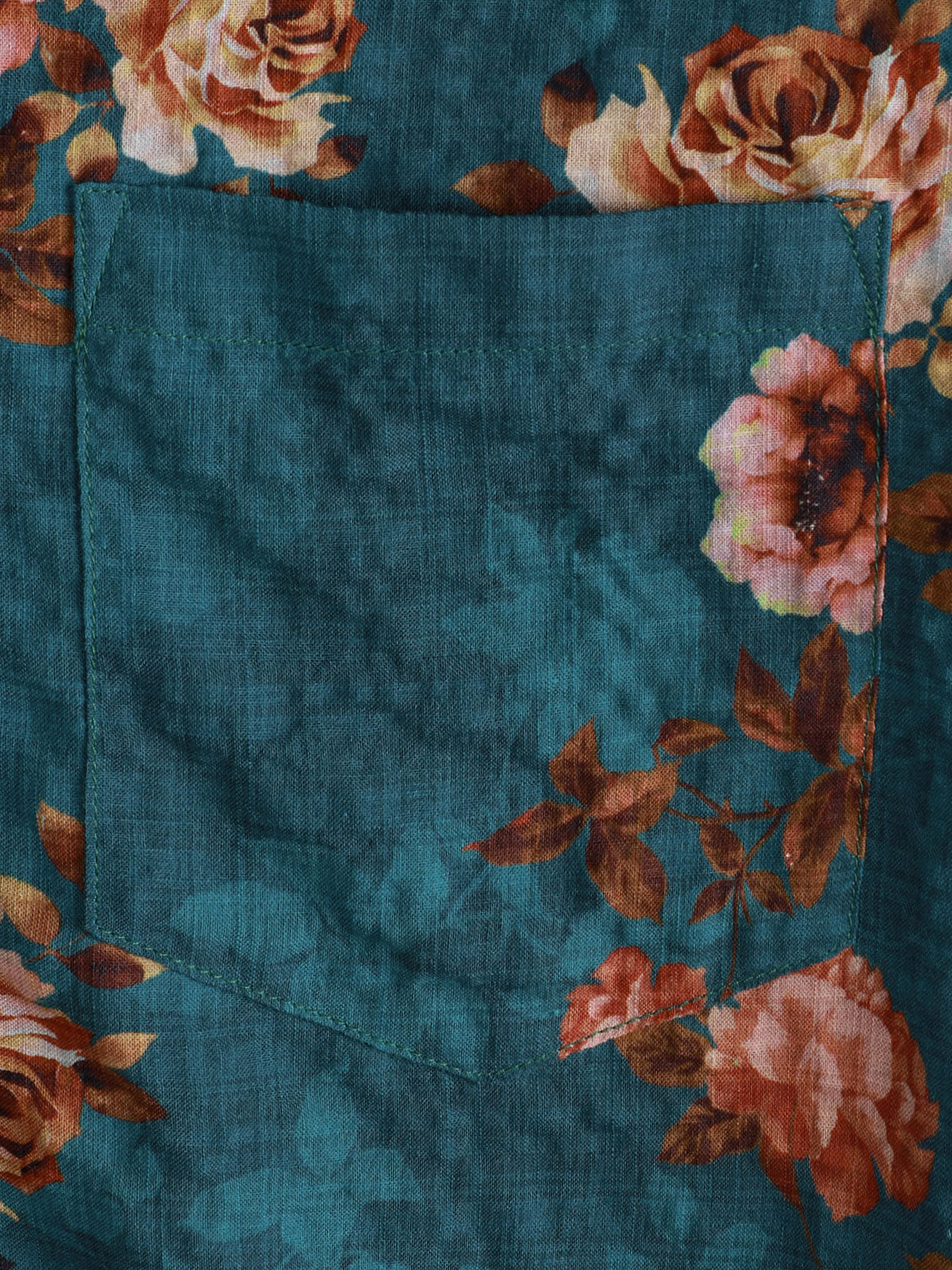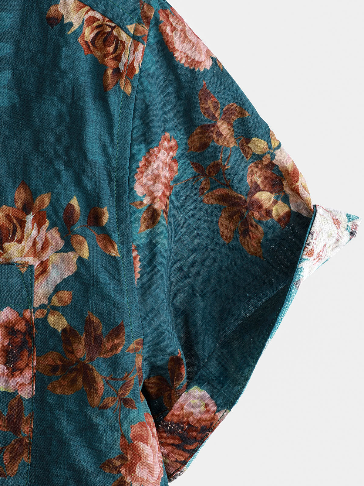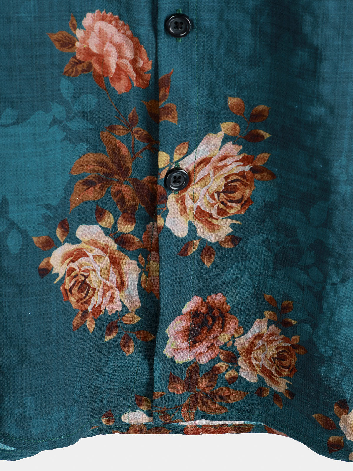Men's Blue Floral Summer Short Sleeve Breathable Button Up Shirt