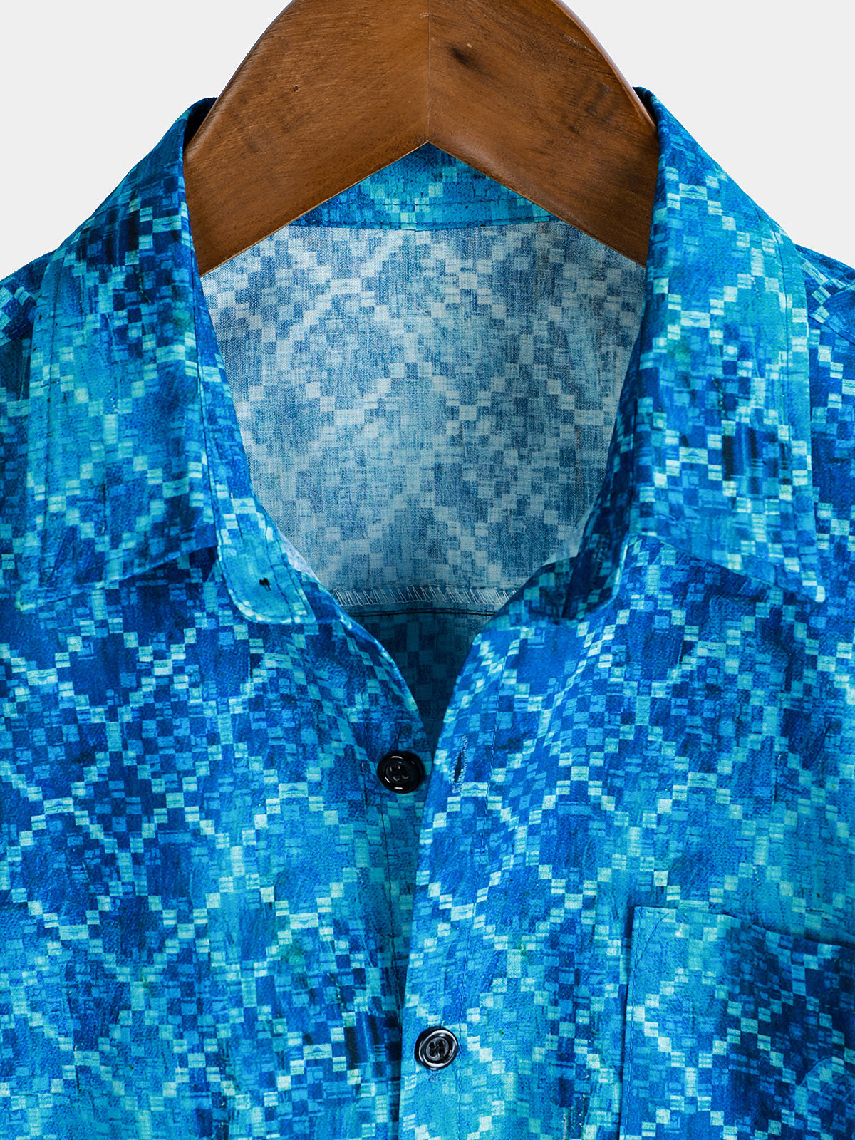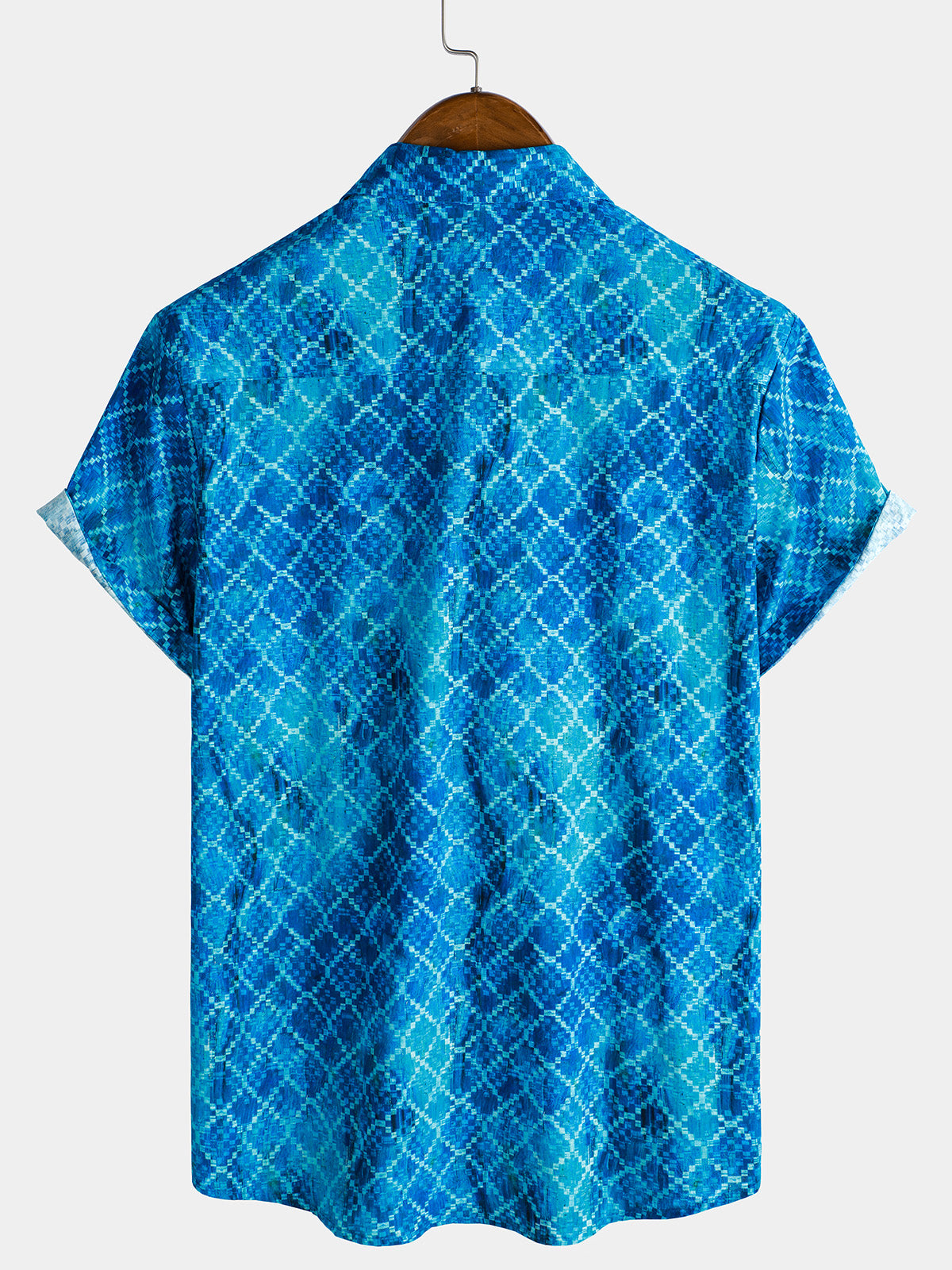 Men's Blue Hawaiian Summer Short Sleeve Shirt